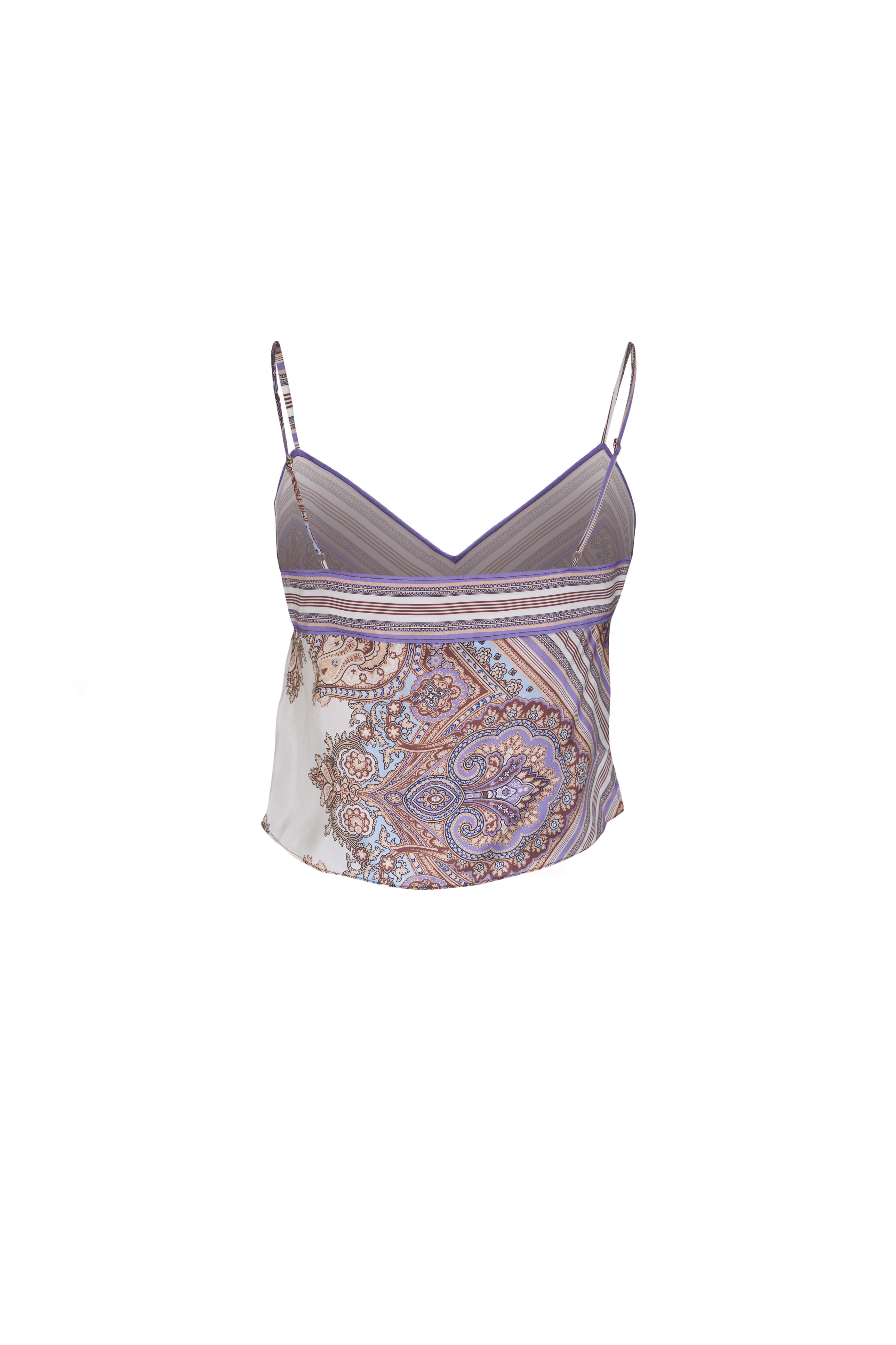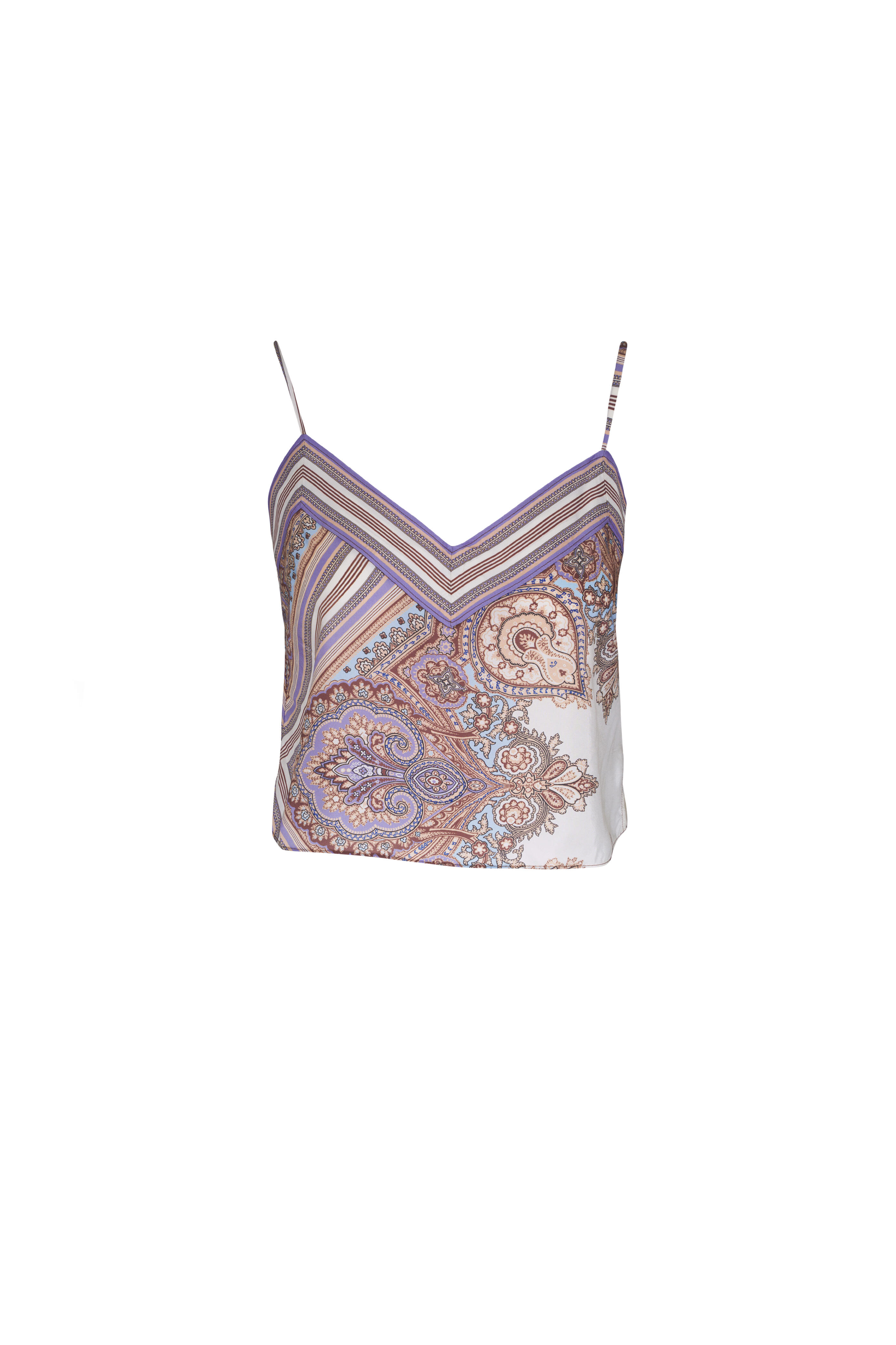 V-neckline. Adjustable straps. Vented hem. Imported. Approximately 19" shoulder to hem (measurements taken from size 2). 100% silk. Dry clean.