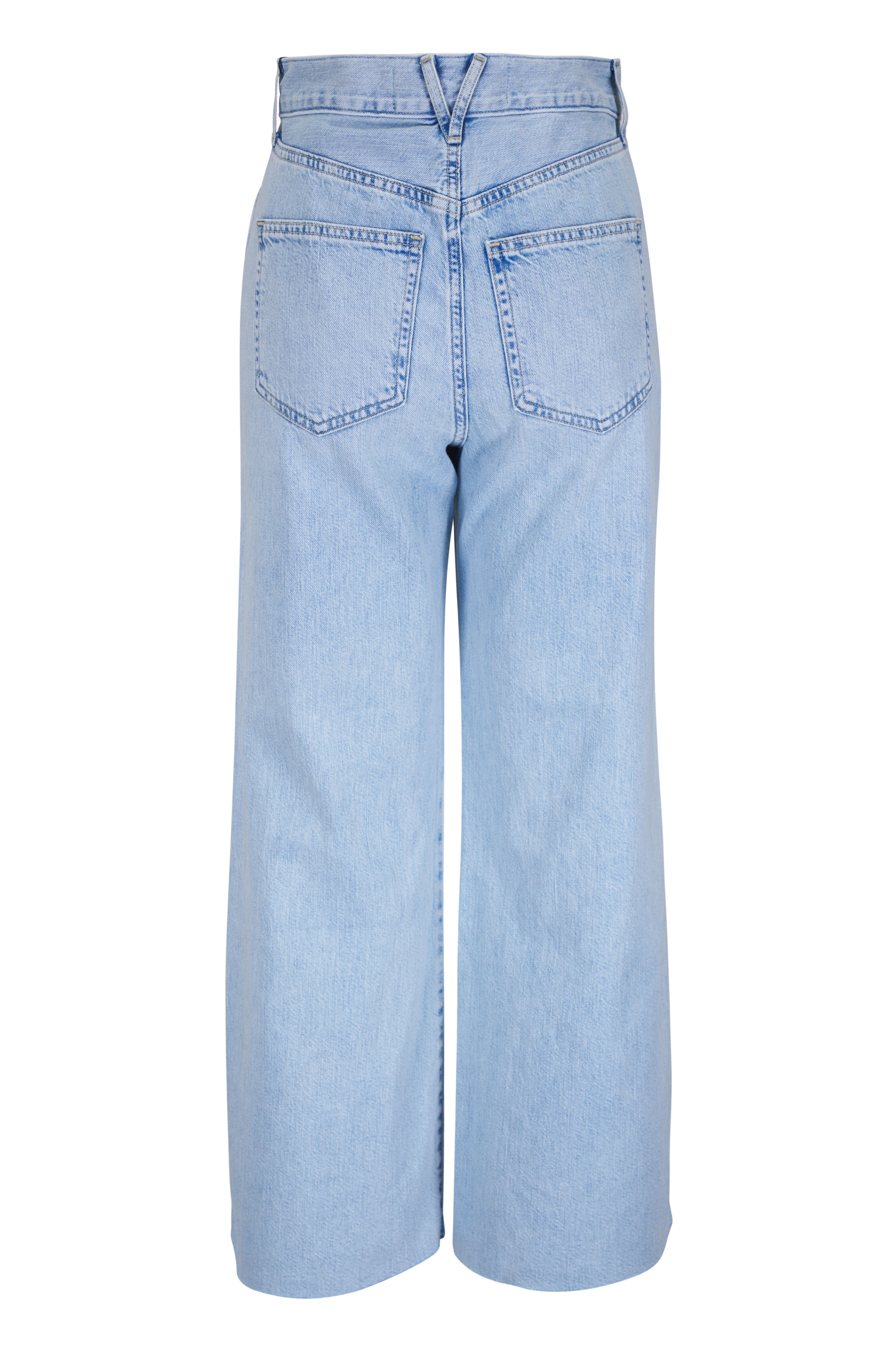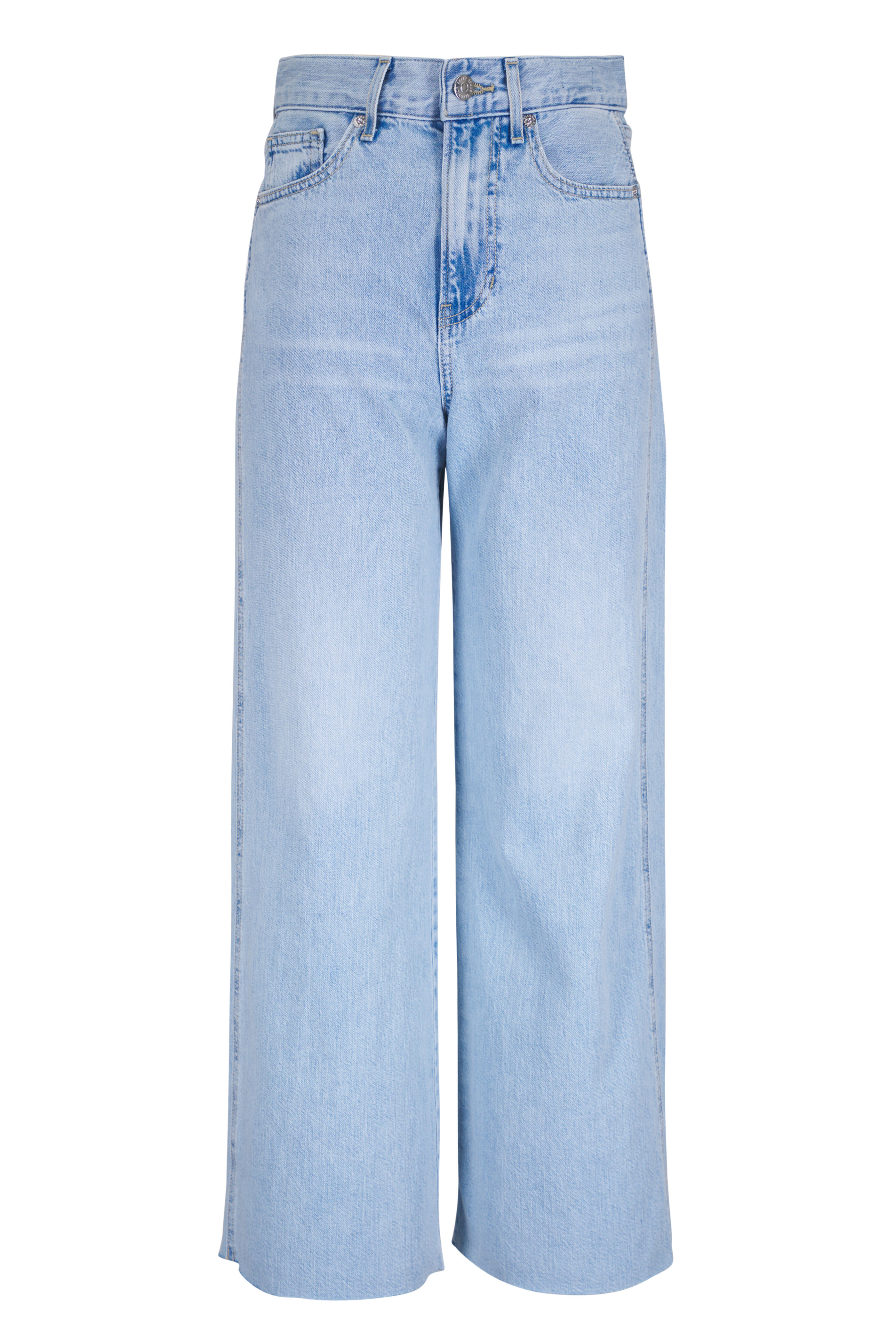 Zip fly; button closure. Banded waist; belt loops. Five pocket styling. Raw-edged hem. Made in the USA. 28" Inseam ( size 25). 100% cotton. Machine wash.