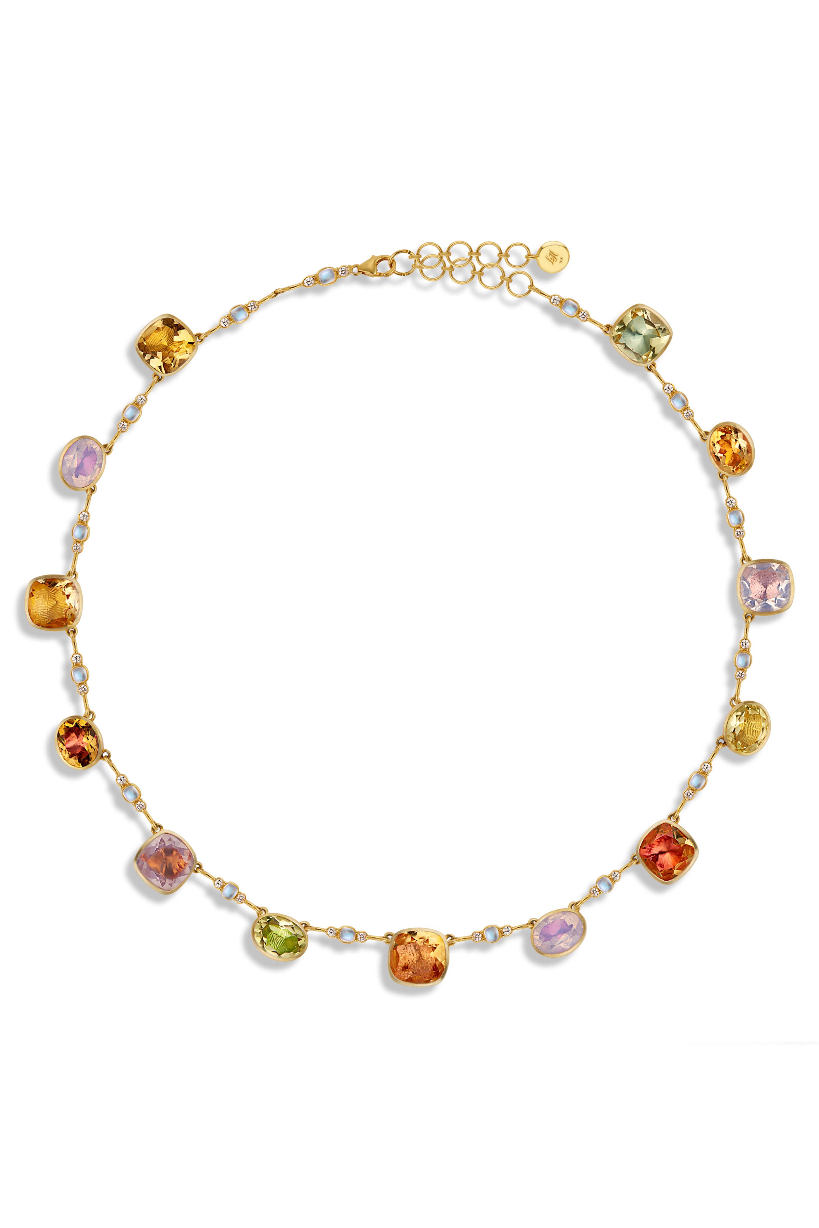 14k yellow gold. Lavender moon; lemon quartz. Citrine. Rainbow moonstone. Diamond.