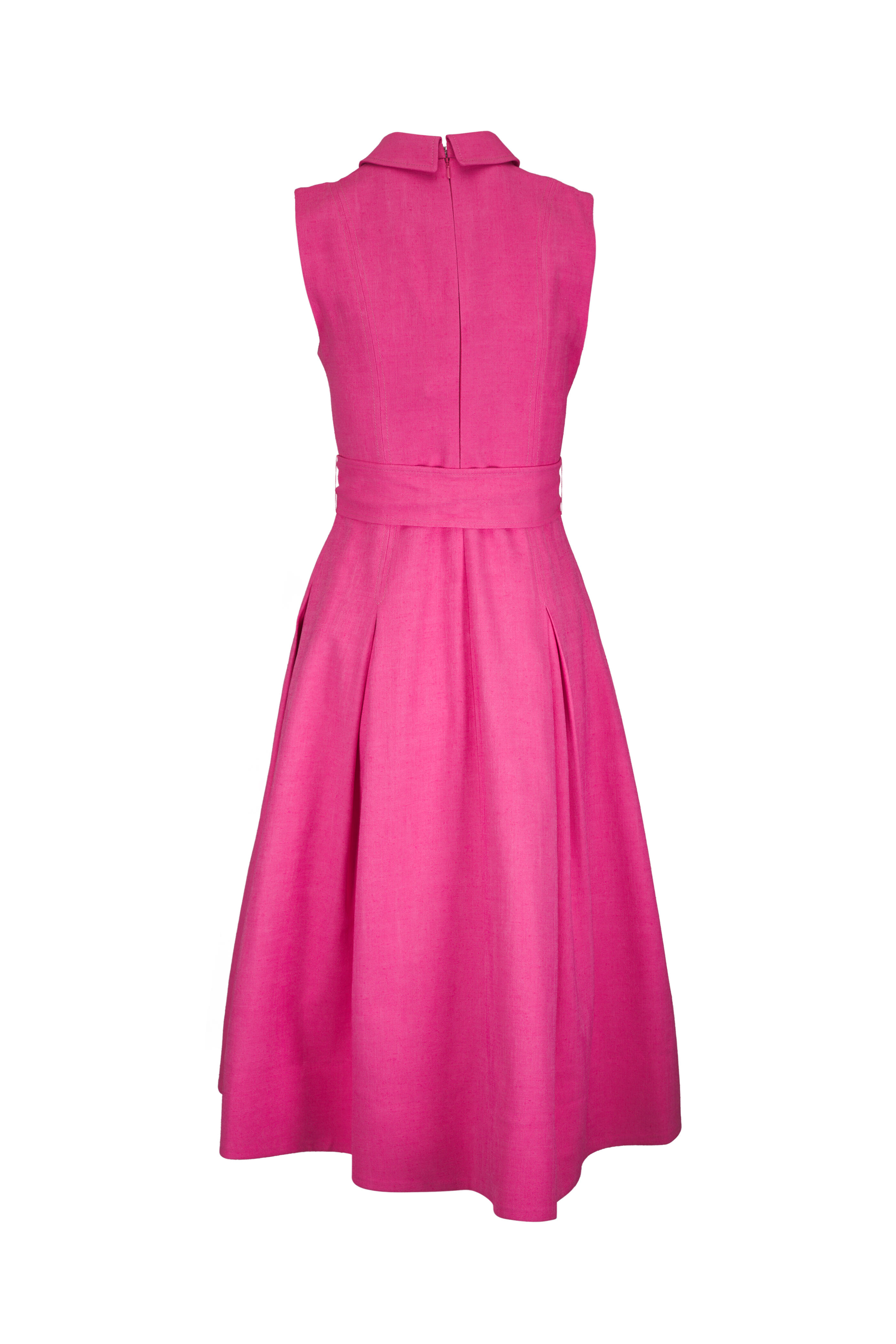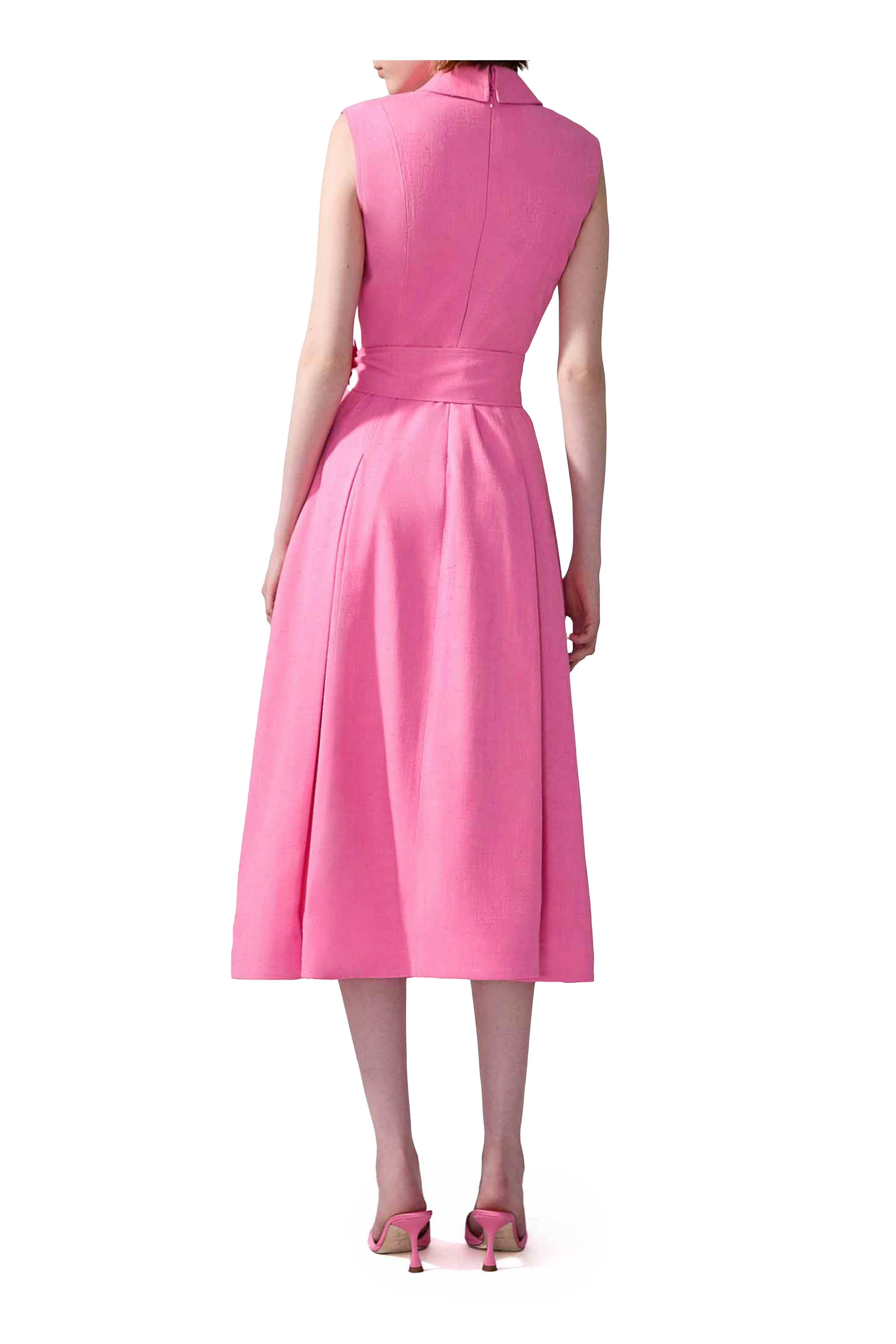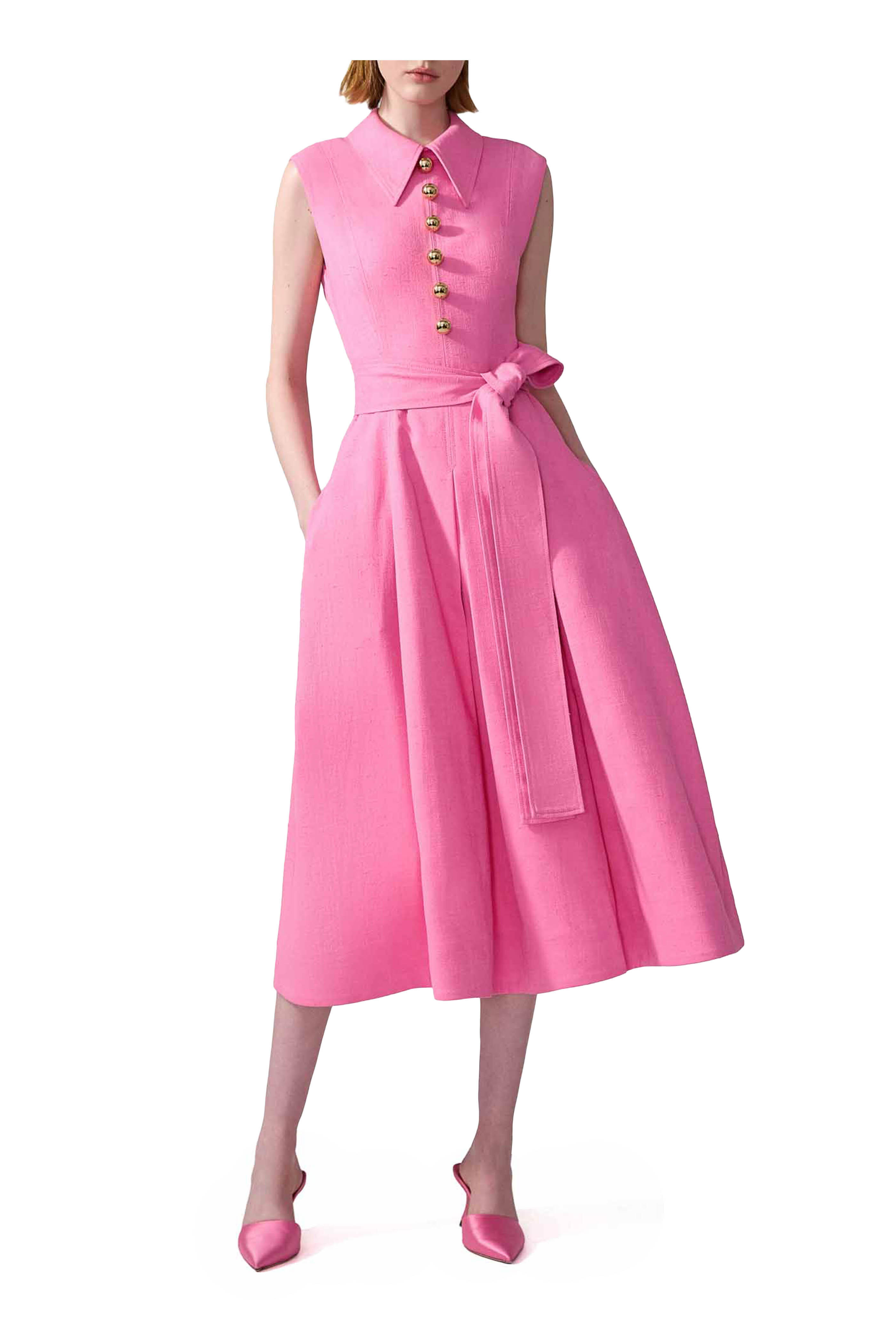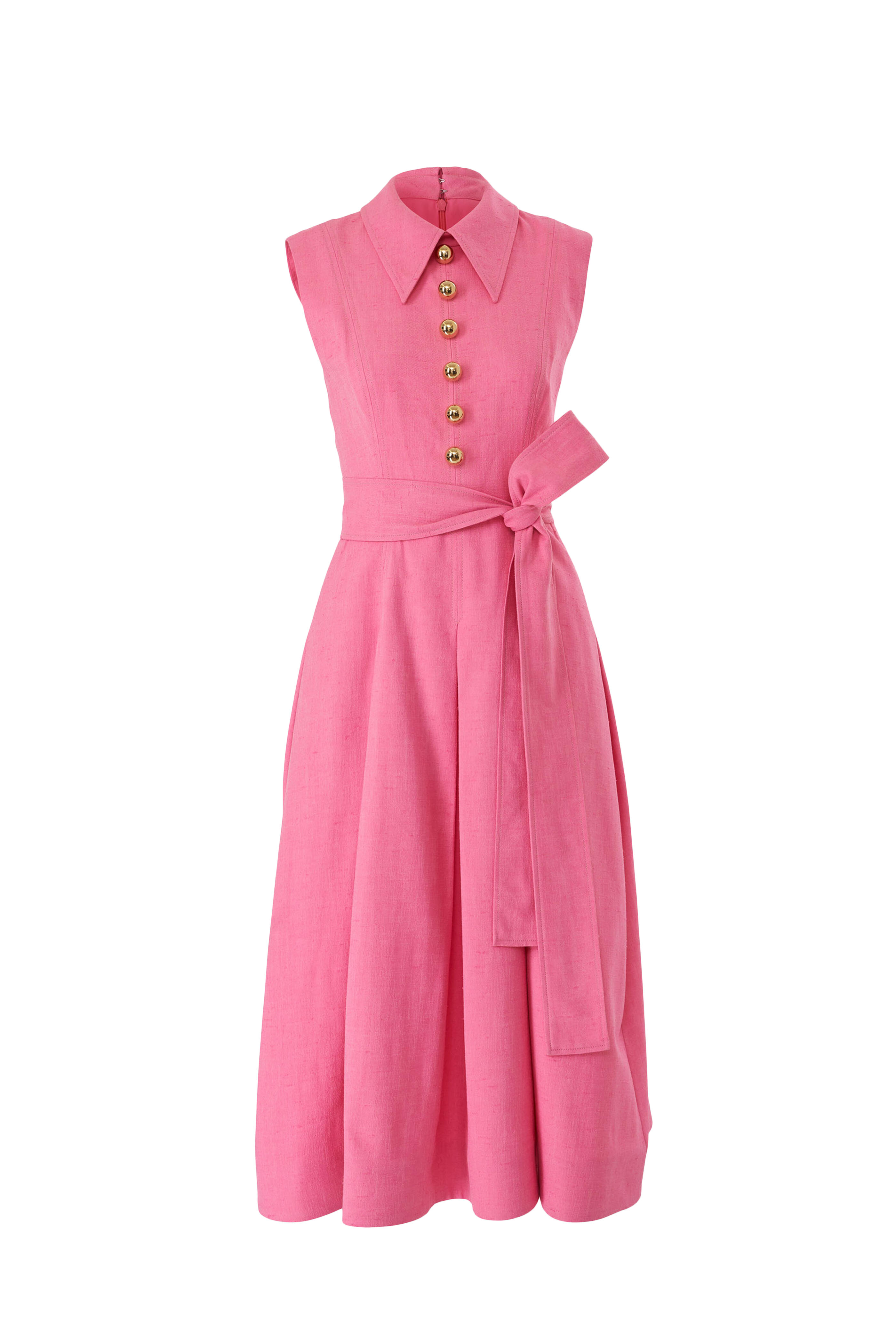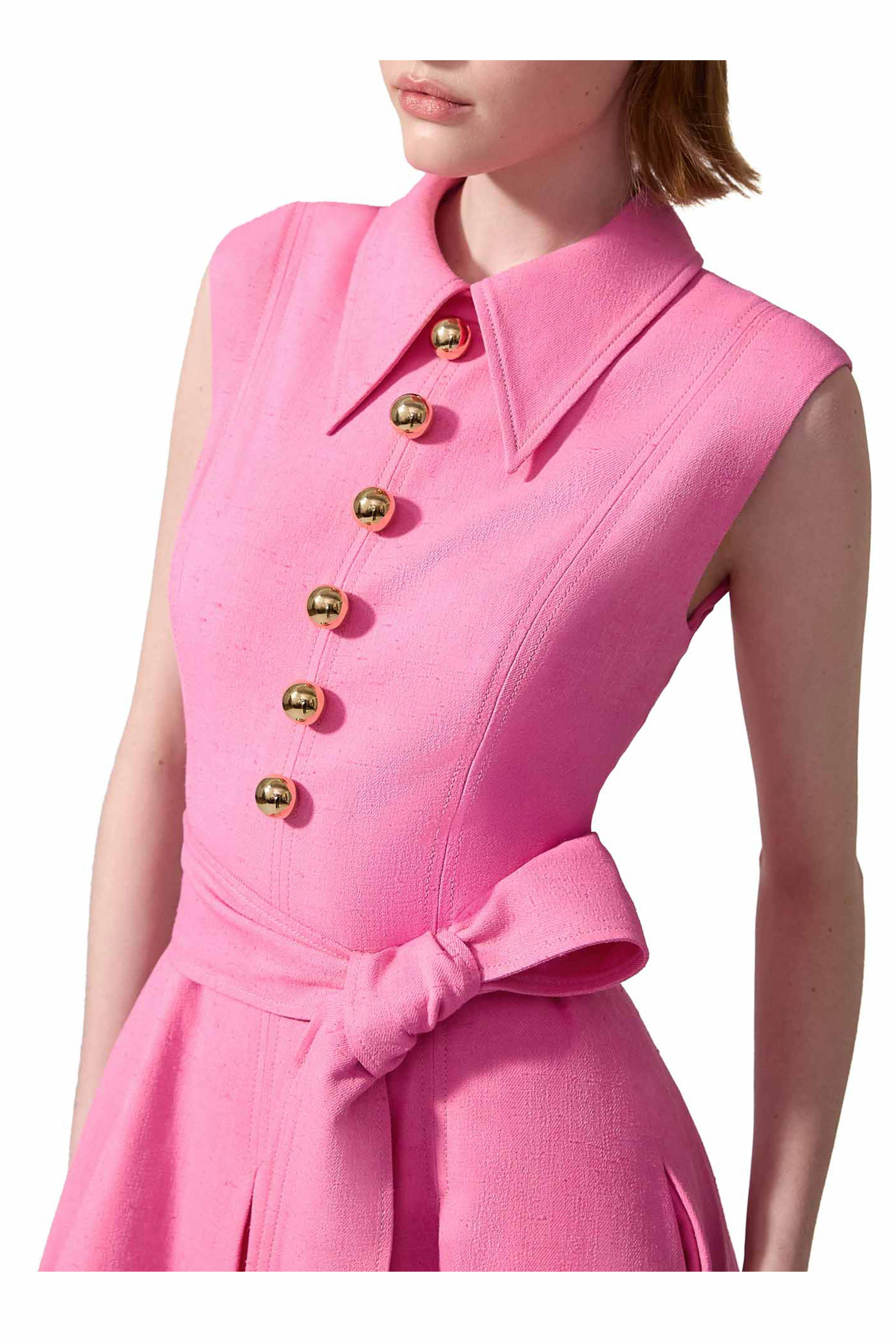 Point collar. Concealed back zip. Removable self-tie belt. Side slip pockets. Decorative gold-tone ball buttons. Made in Italy. Approximately 44 ½" shoulder to hem (measurements taken from size 4). 59% viscose, 41% cotton; lined. Dry clean.