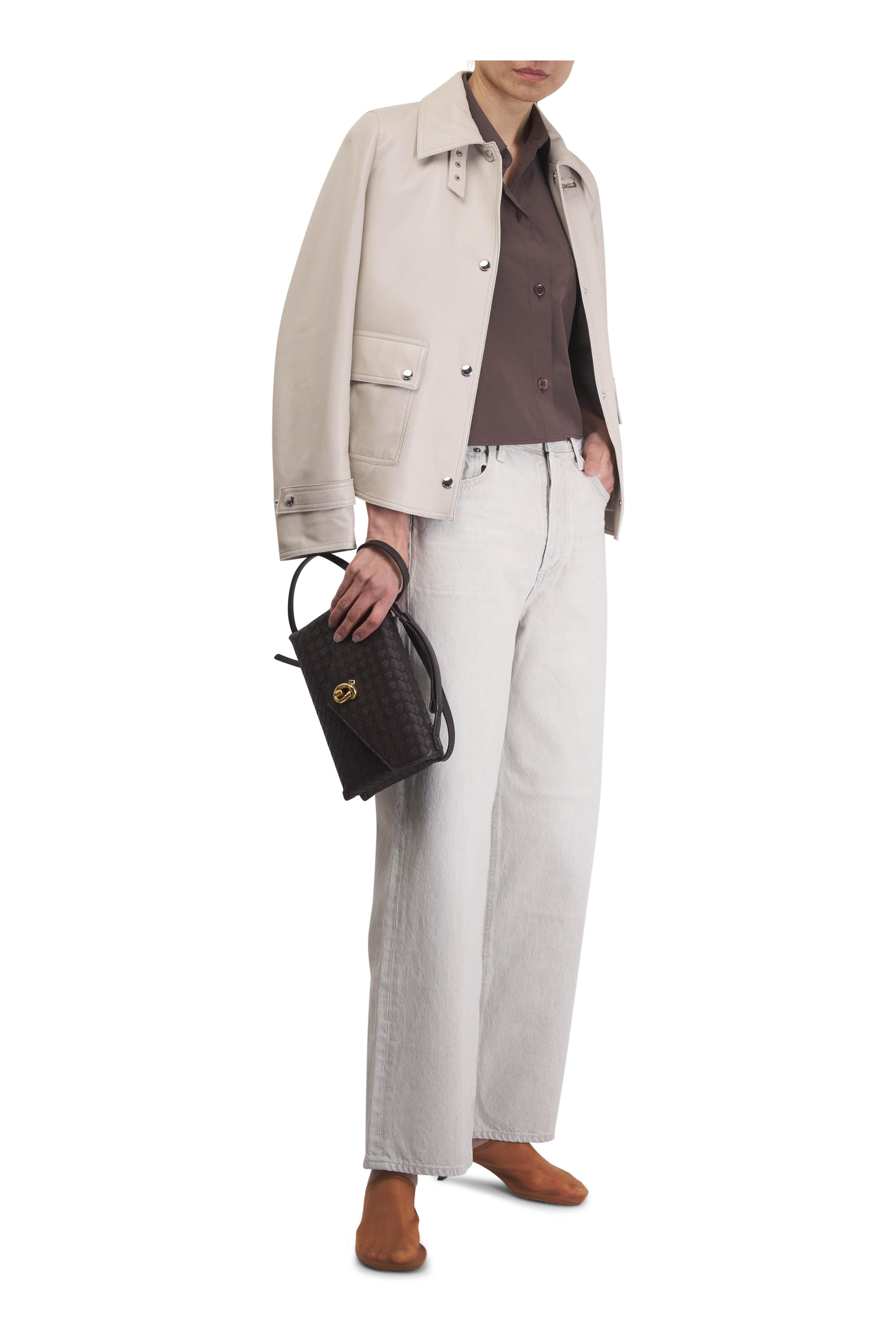 Spread collar. Front button placket. Single button squared cuffs. Chest patch pocket. Imported. Shoulder to hem 21" (size xs). 100% cotton. Dry clean.
