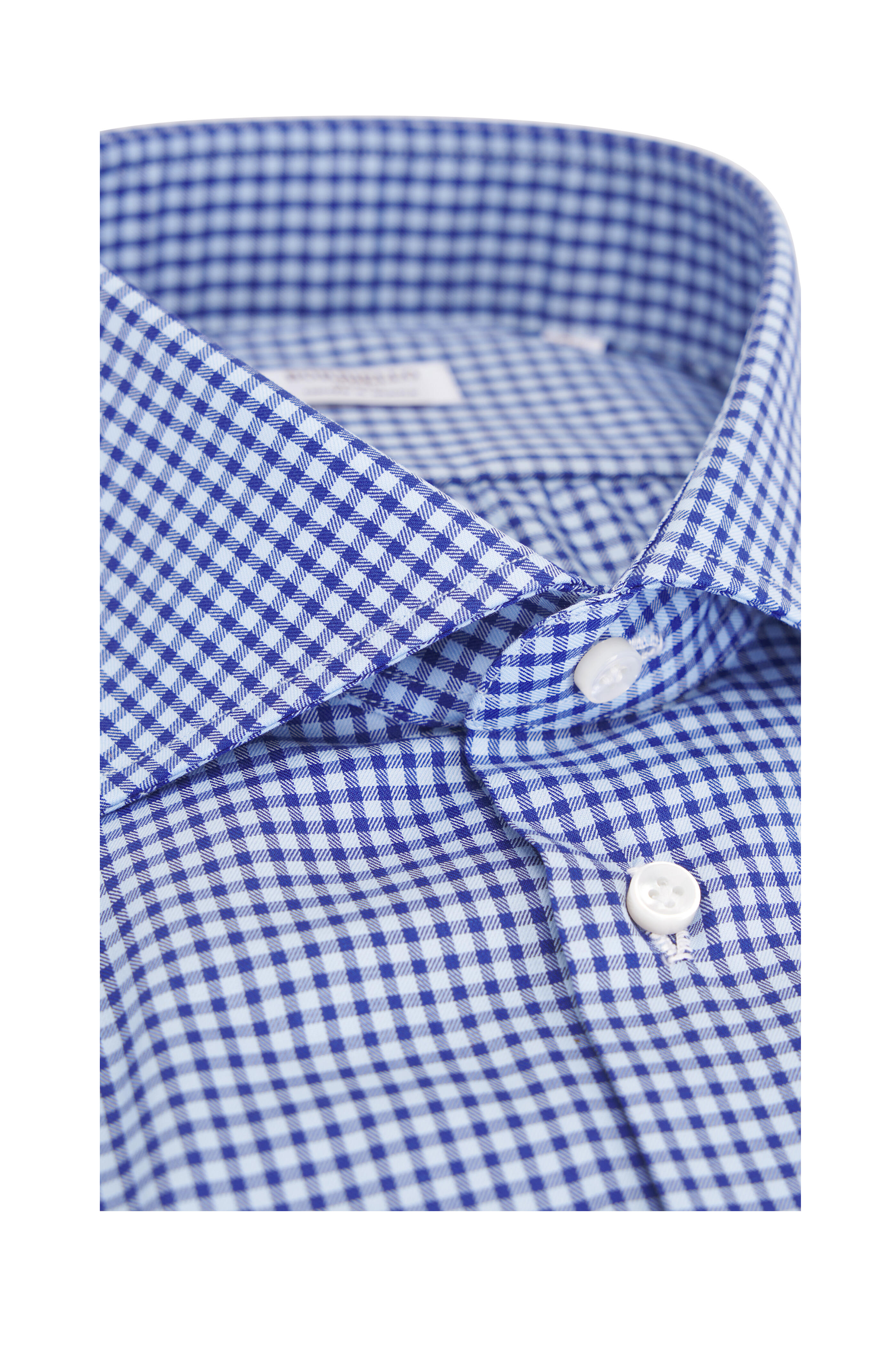 Spread collar. French placket. Single button barrel cuffs. Made in Italy. 100% cotton. Dry clean.