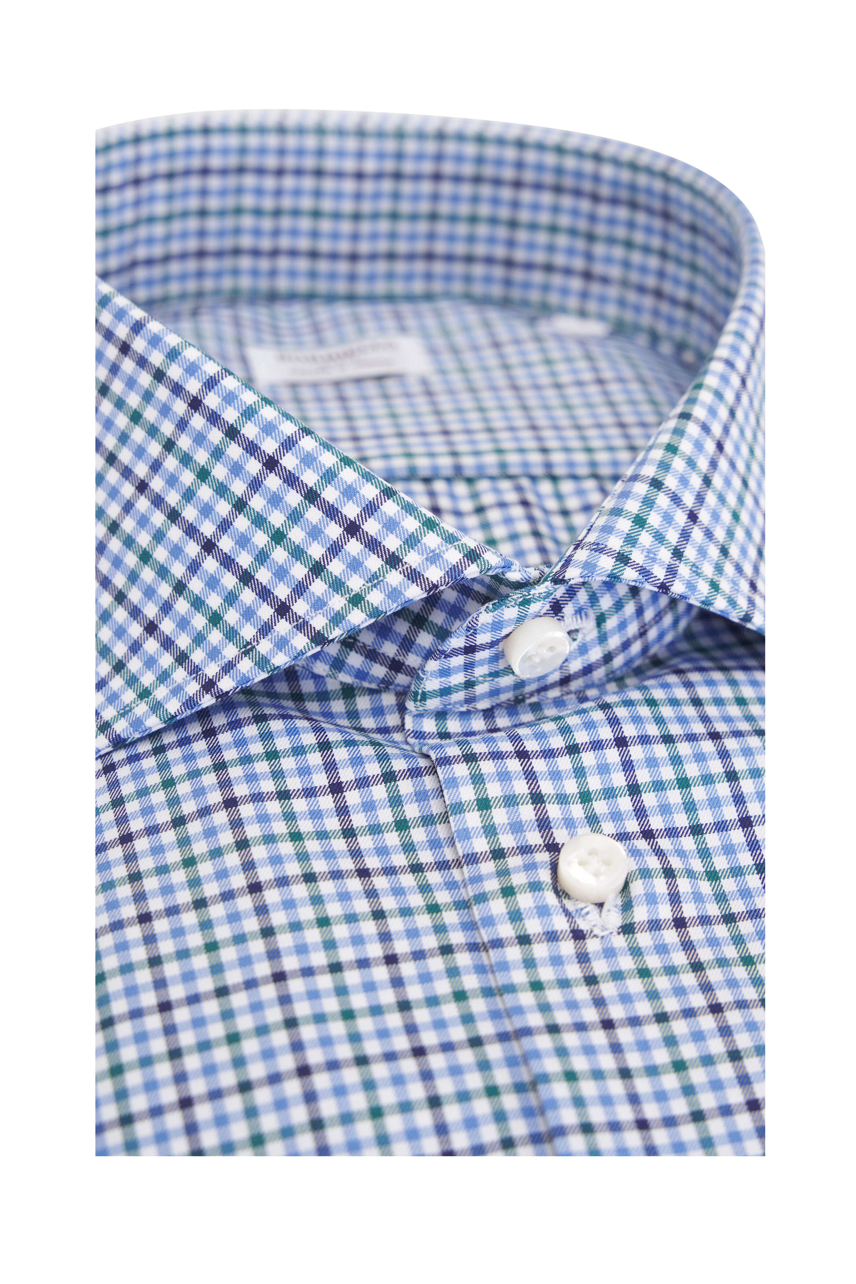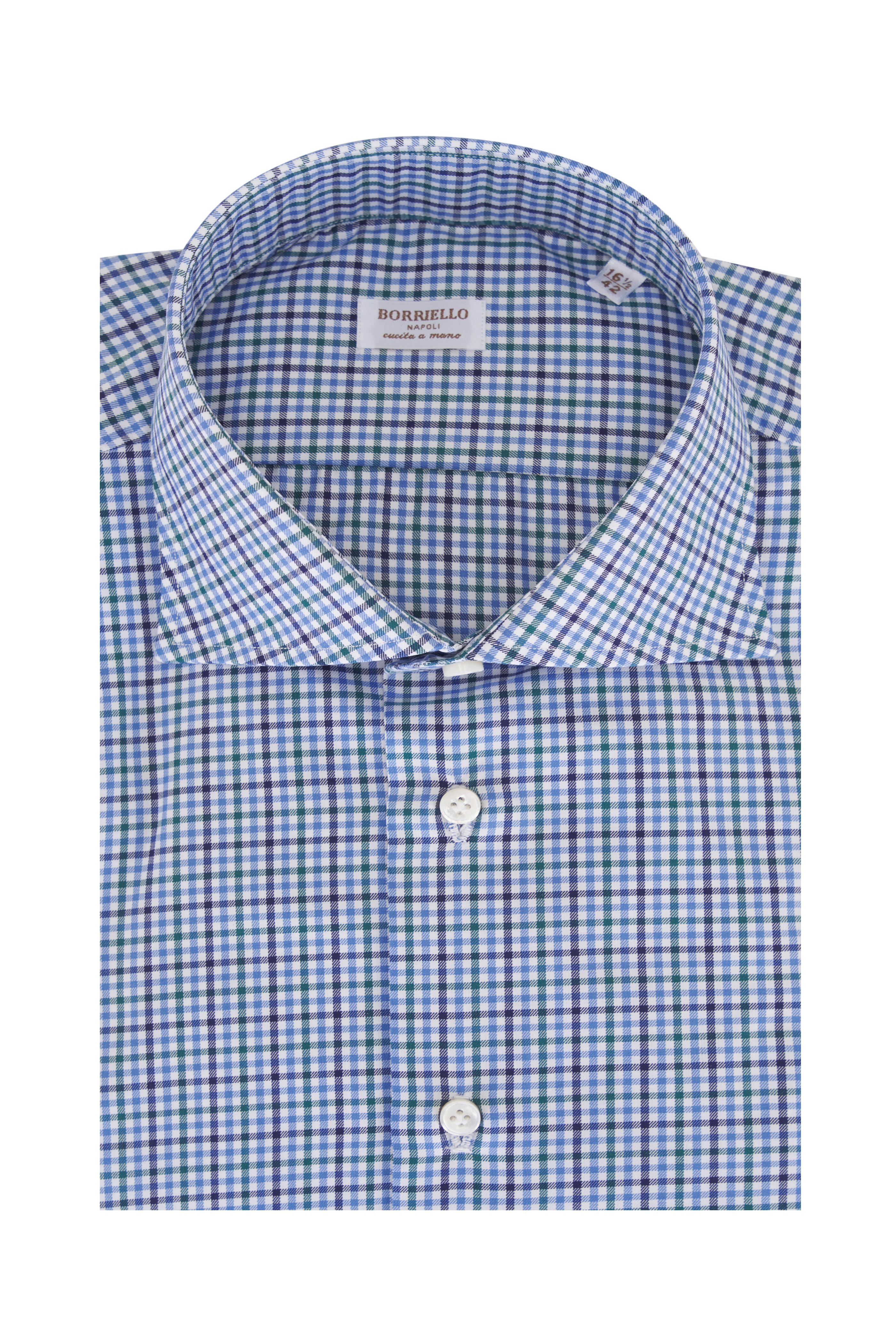 Spread collar. French placket. Single button barrel cuffs. Made in Italy. 100% cotton. Dry clean.