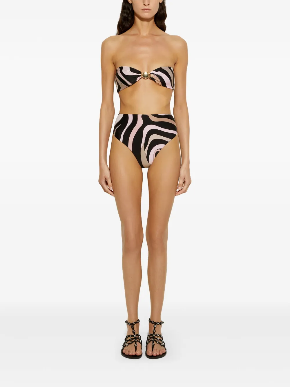 High waist; elasticized band. Pull on style. Stretchy Lycra with anti-UV treatment. Made in Italy. **Returns only honored if in original, unworn condition with tags and hygiene strip still attached**. 80% polyamide, 20% elastane; lined. Hand wash.