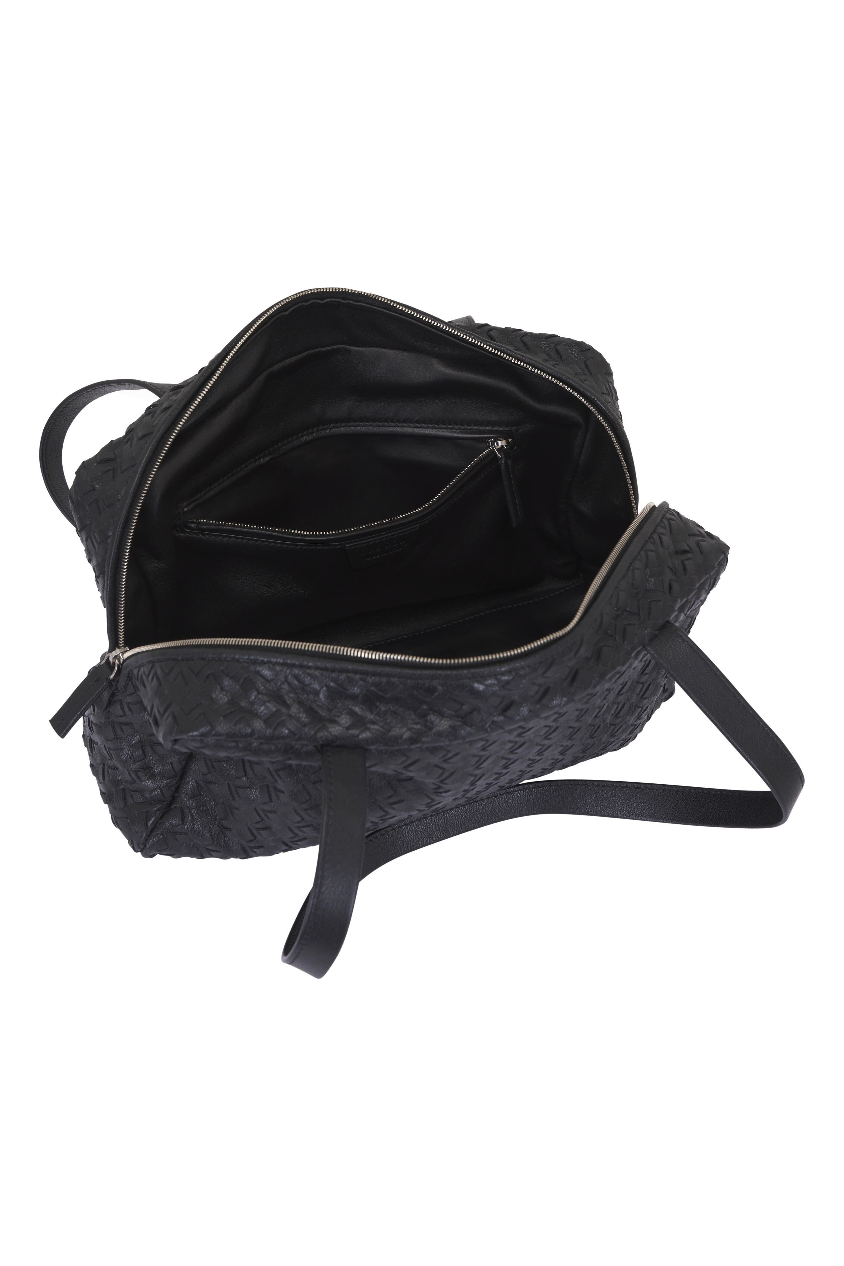 Woven goat leather. Dual top handles. Two way zip closure. Interior zip pocket. Unlined. Made in Italy. Depth: 11cm / 4.3in. Handle Length: 26cm / 10.2in. Height: 19cm / 7.5in. Width: 31cm / 12.2in.