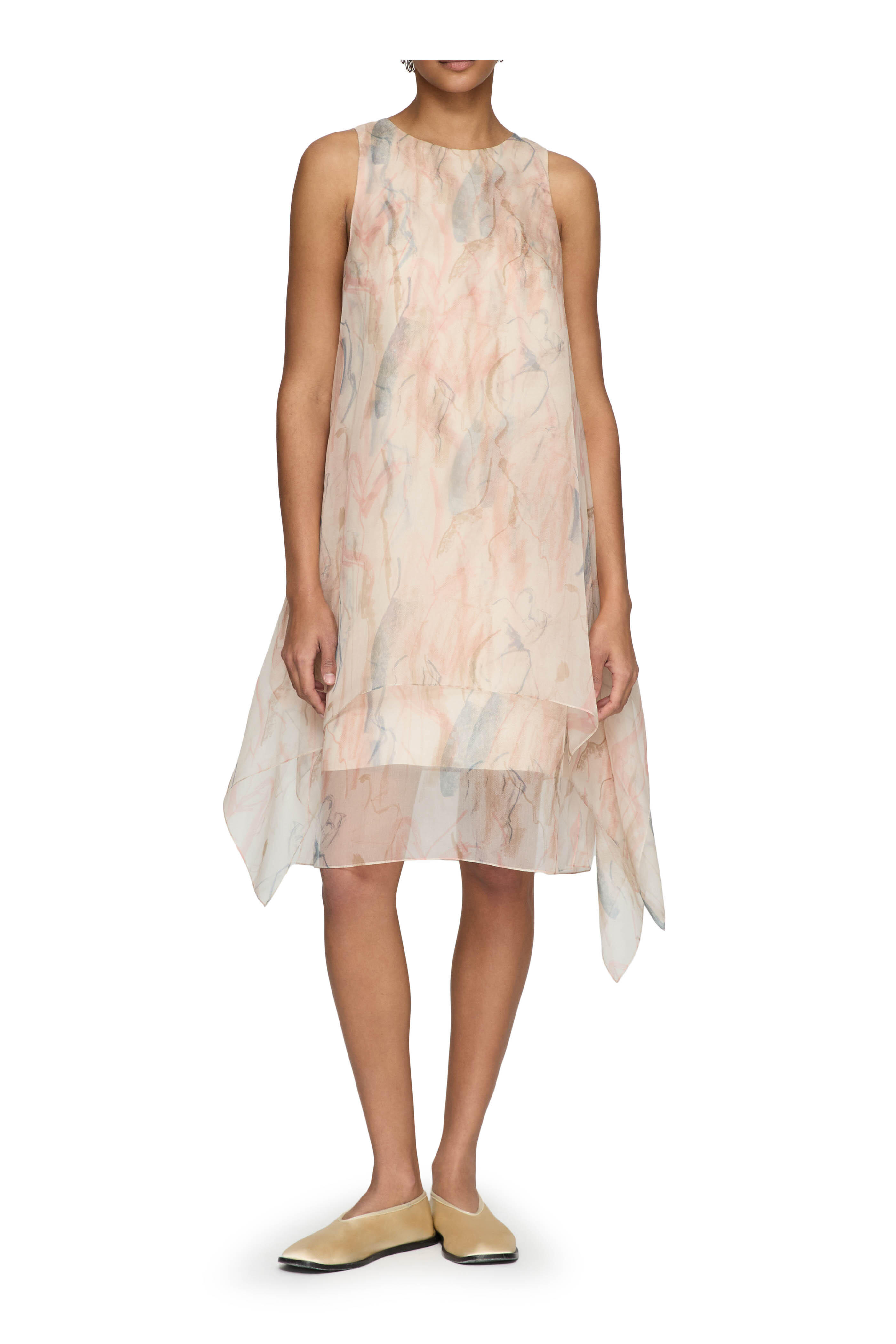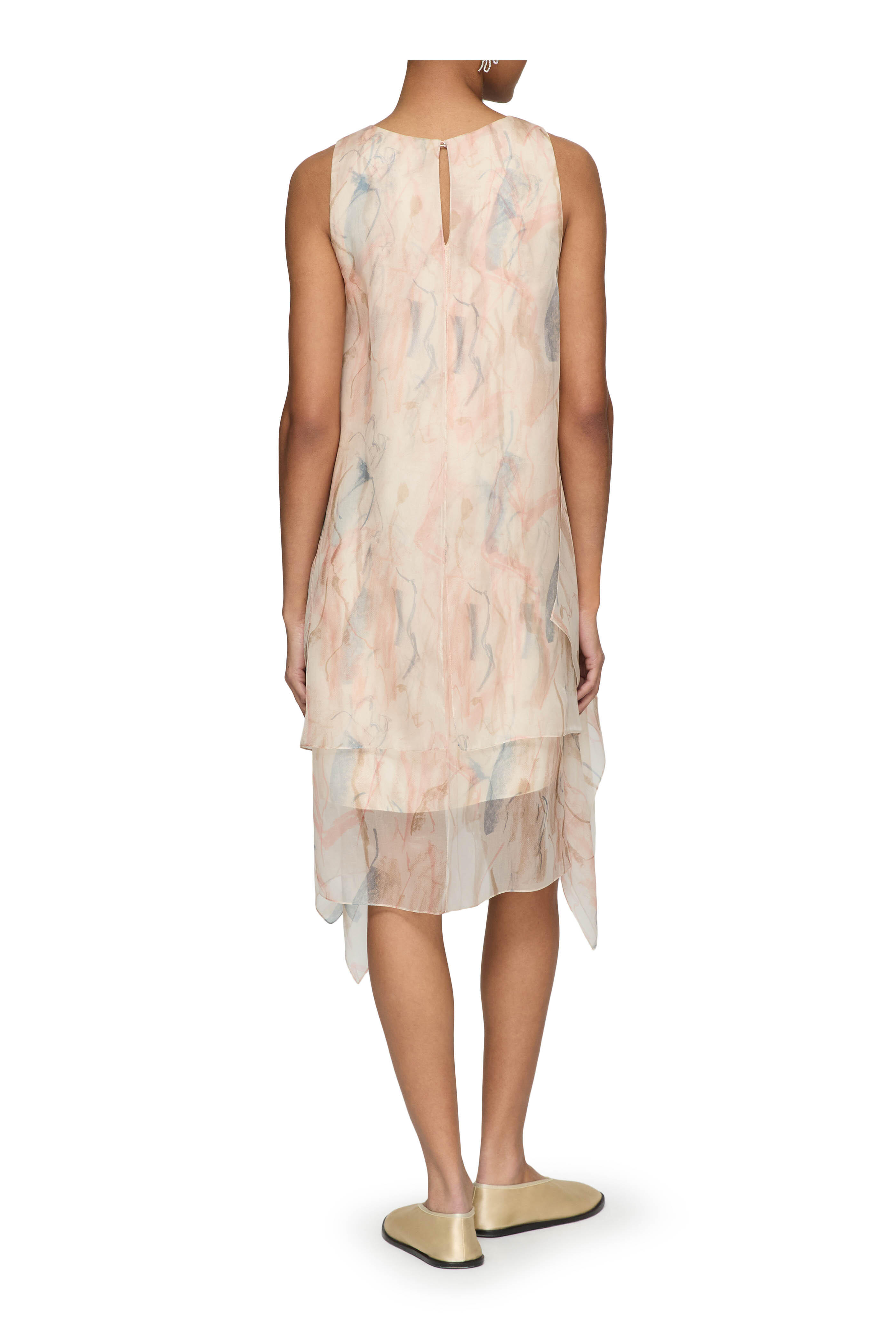 Multi-Color Layered Handkerchief Silk Midi Dress