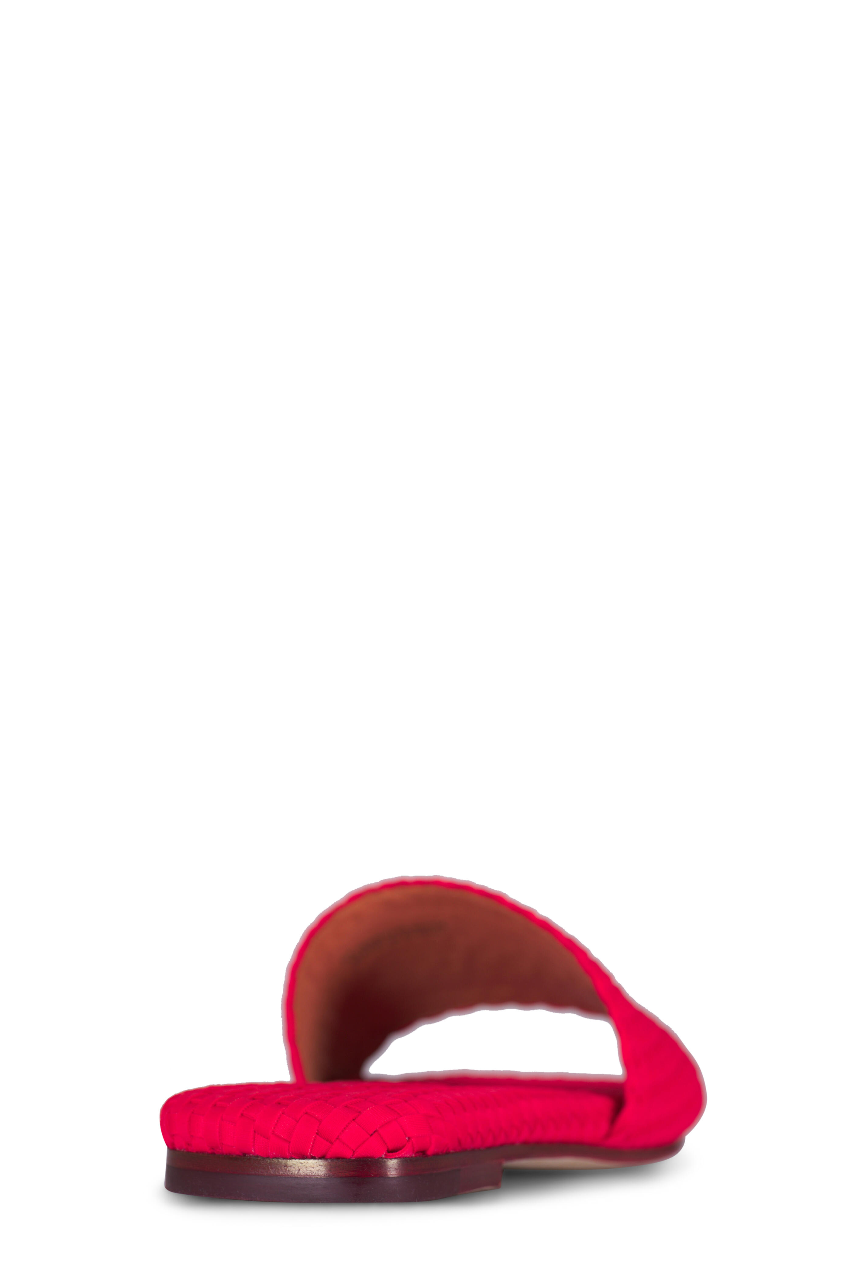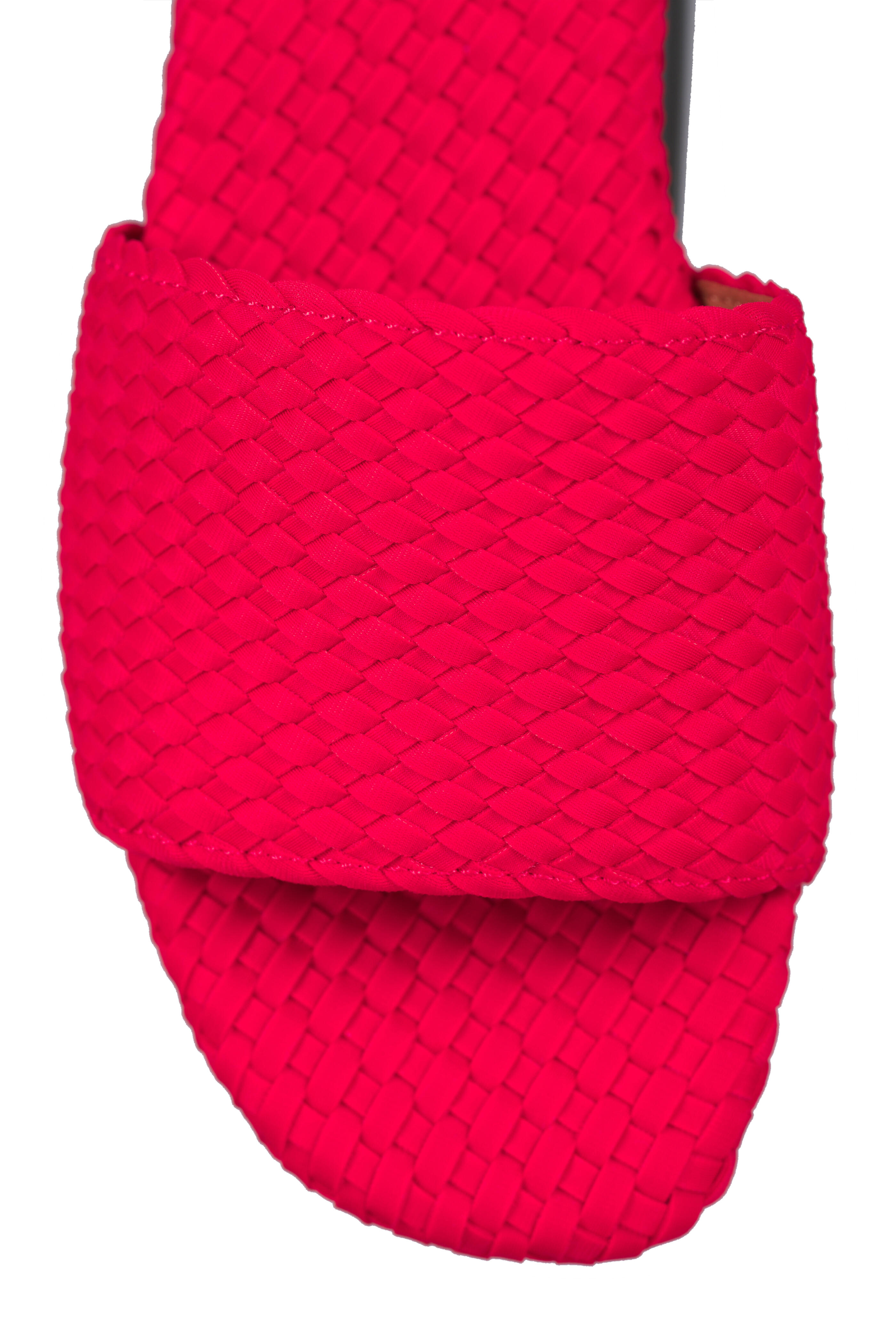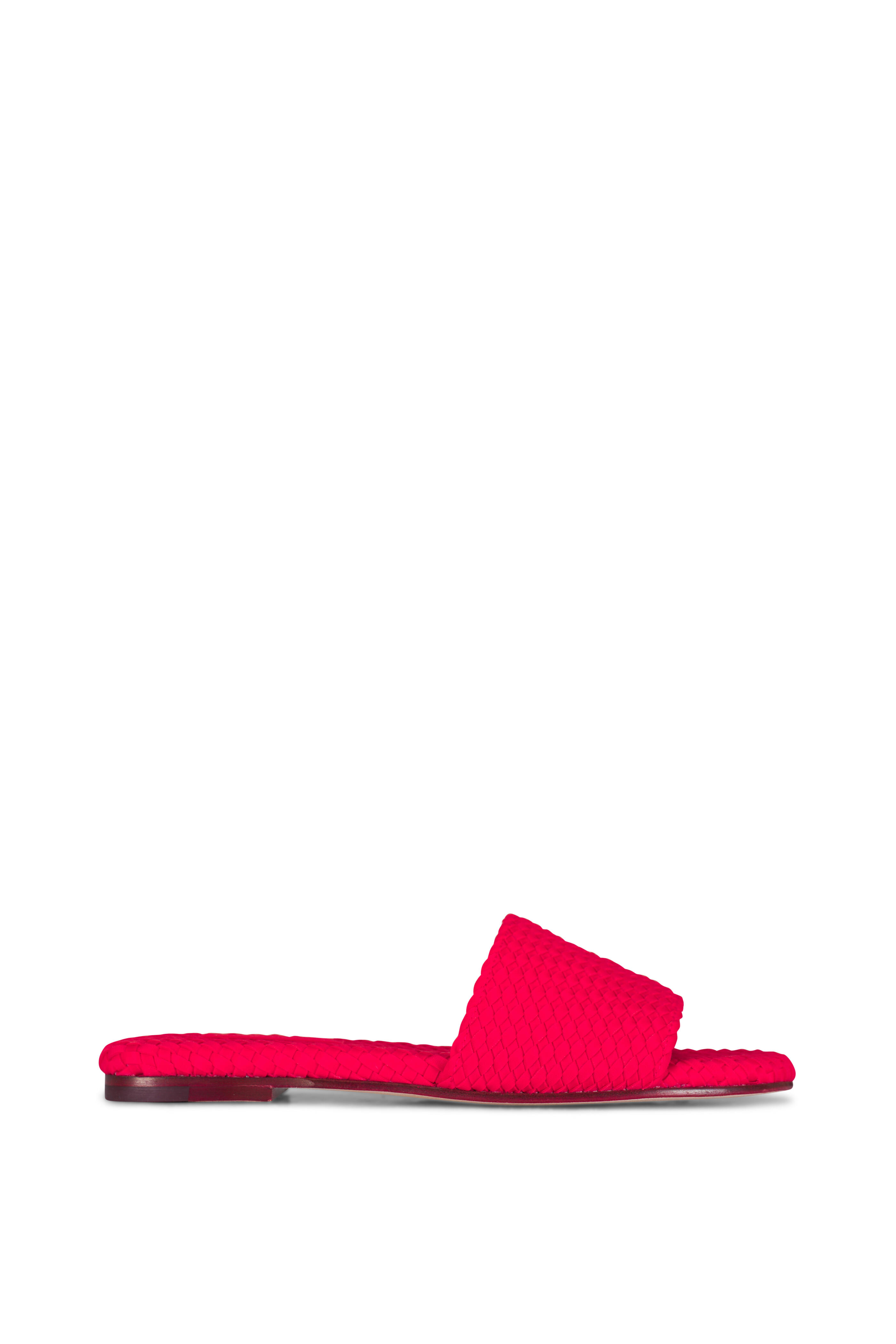 Woven neoprene. Open toe. Slip on style. Leather lining; woven insole. Leather sole. Imported.