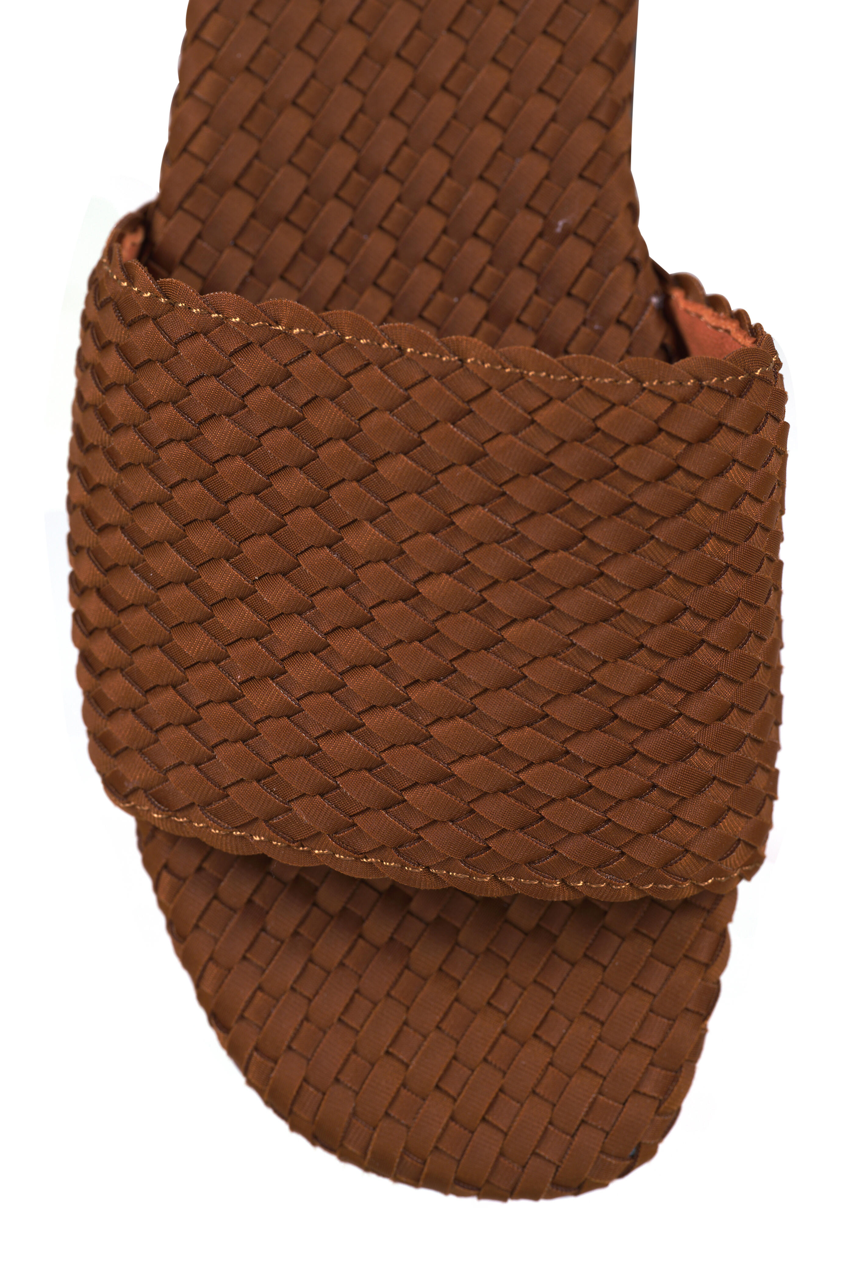 Woven neoprene. Open toe. Slip on style. Leather lining; woven insole. Leather sole. Imported.