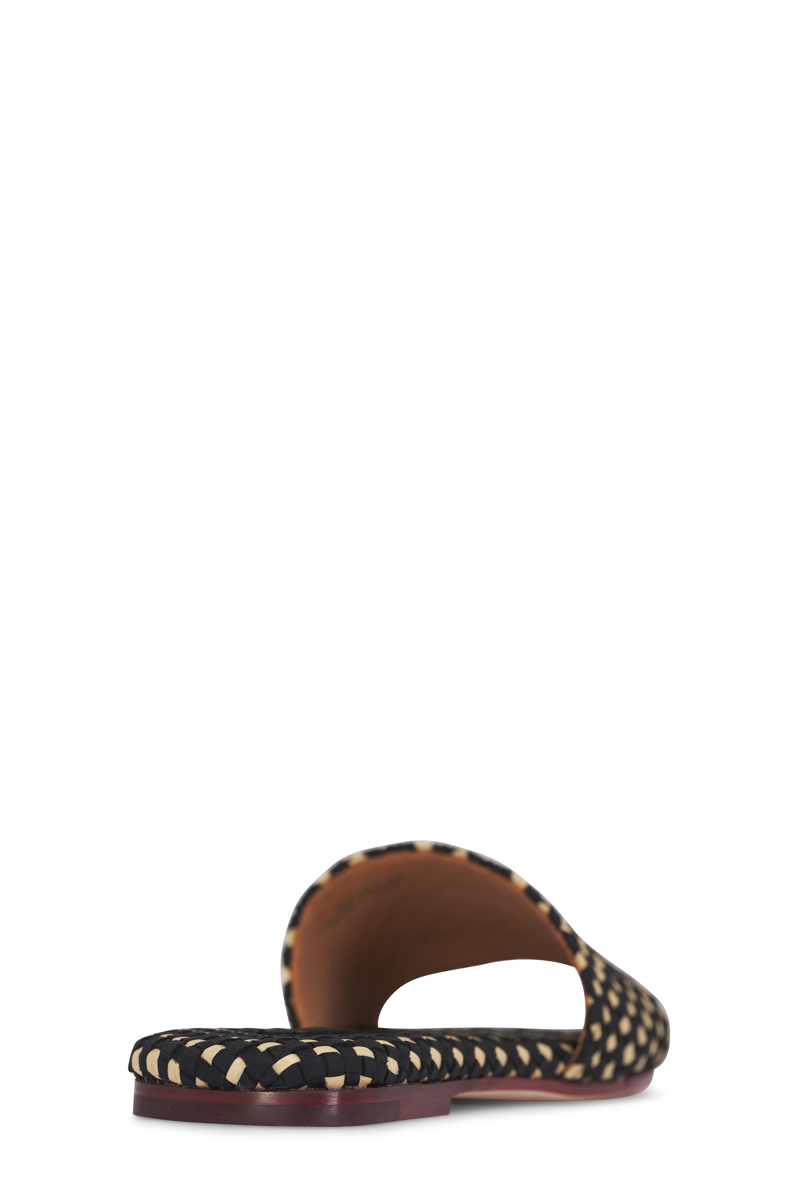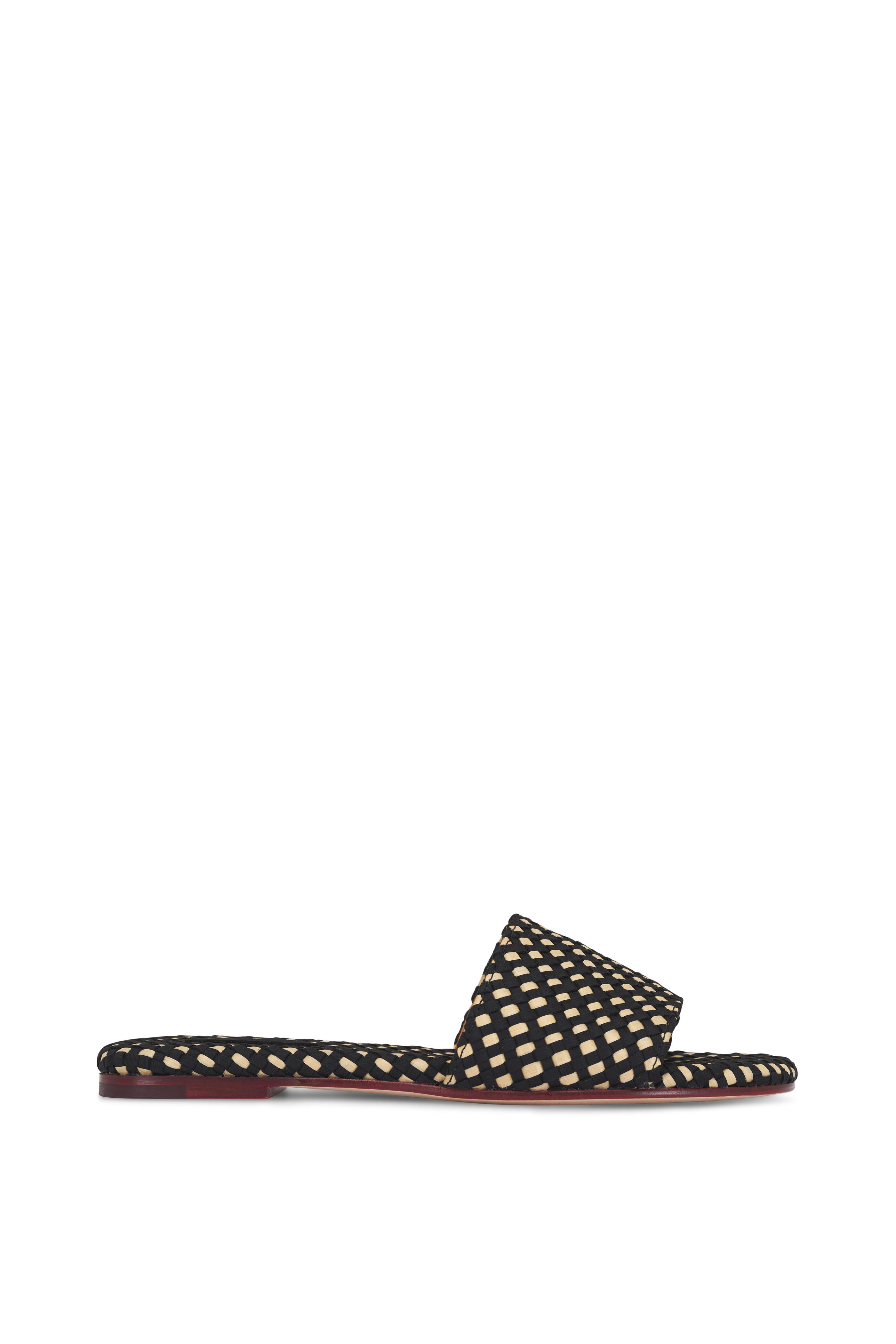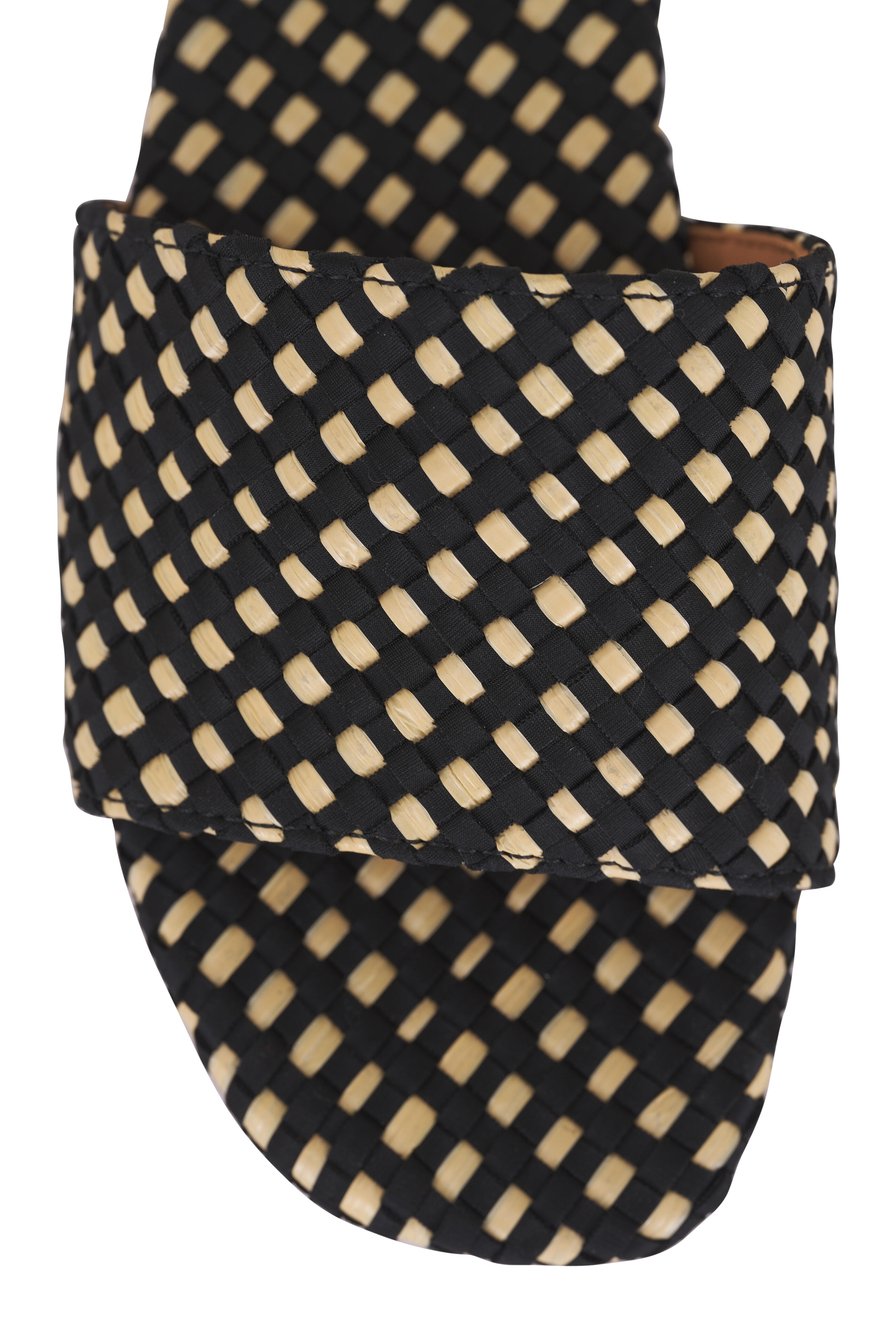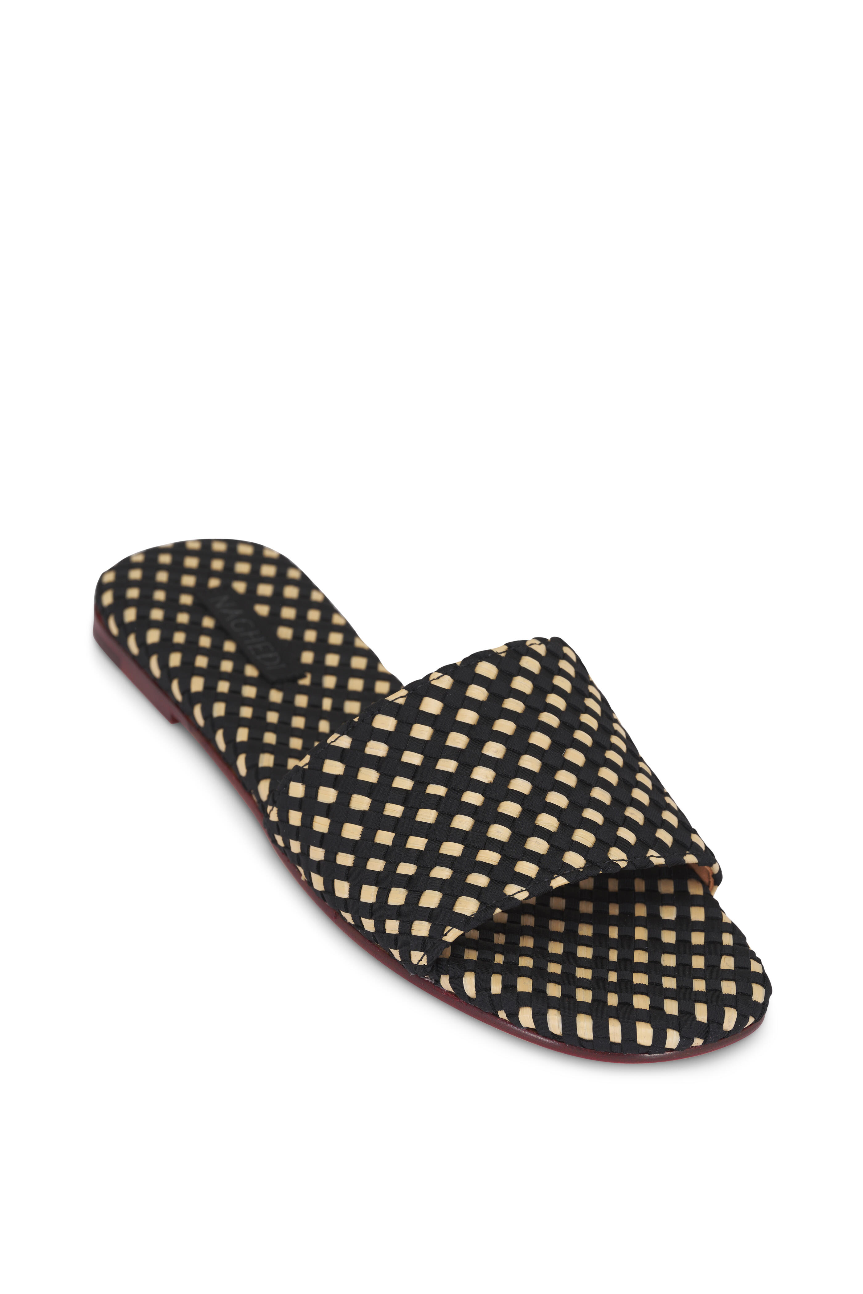 Woven neoprene. Open toe. Slip on style. Leather lining; woven insole. Leather sole. Imported.