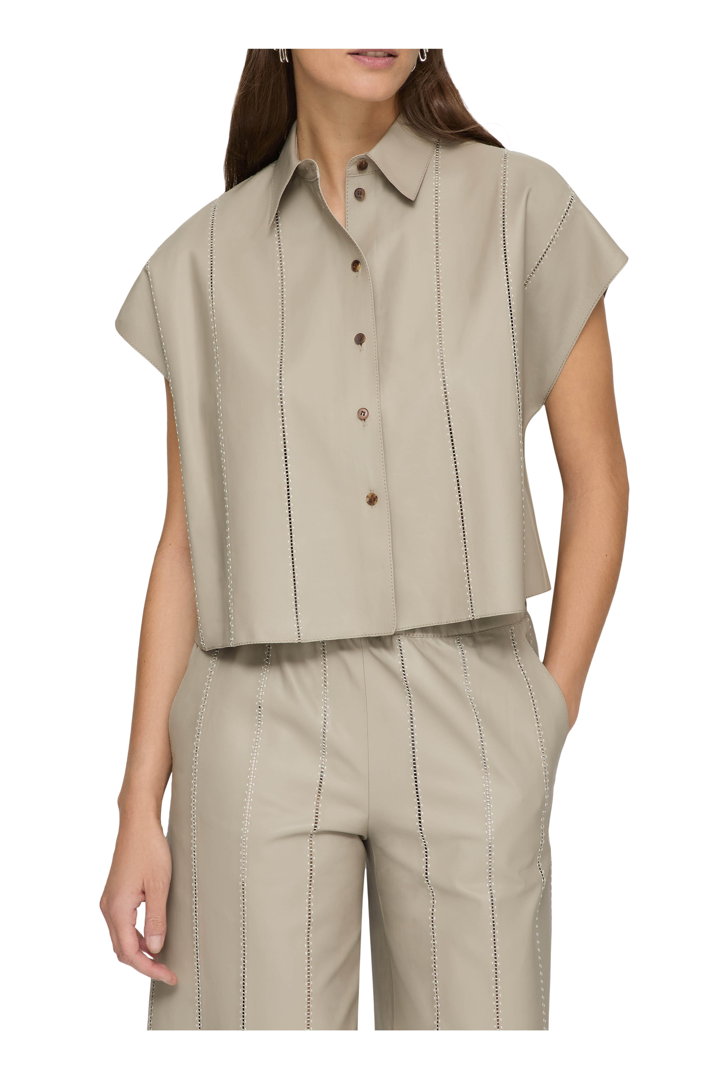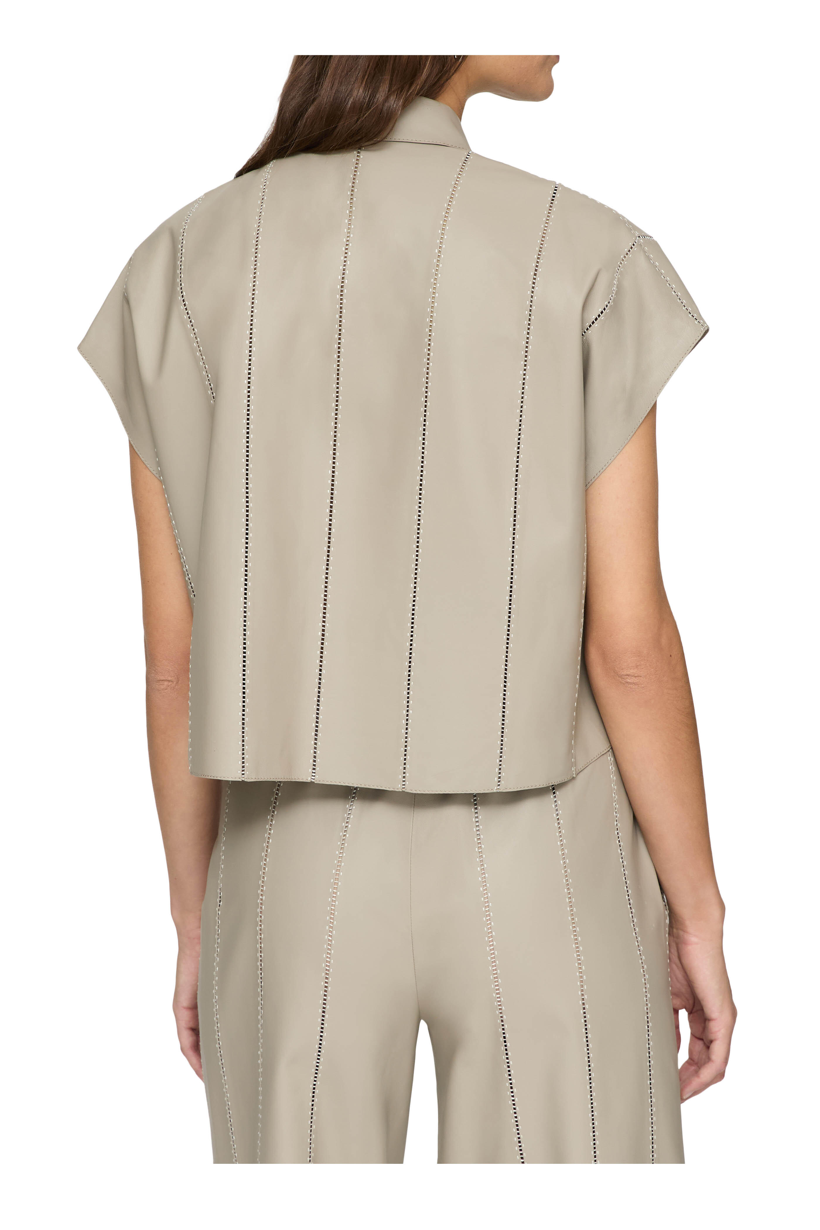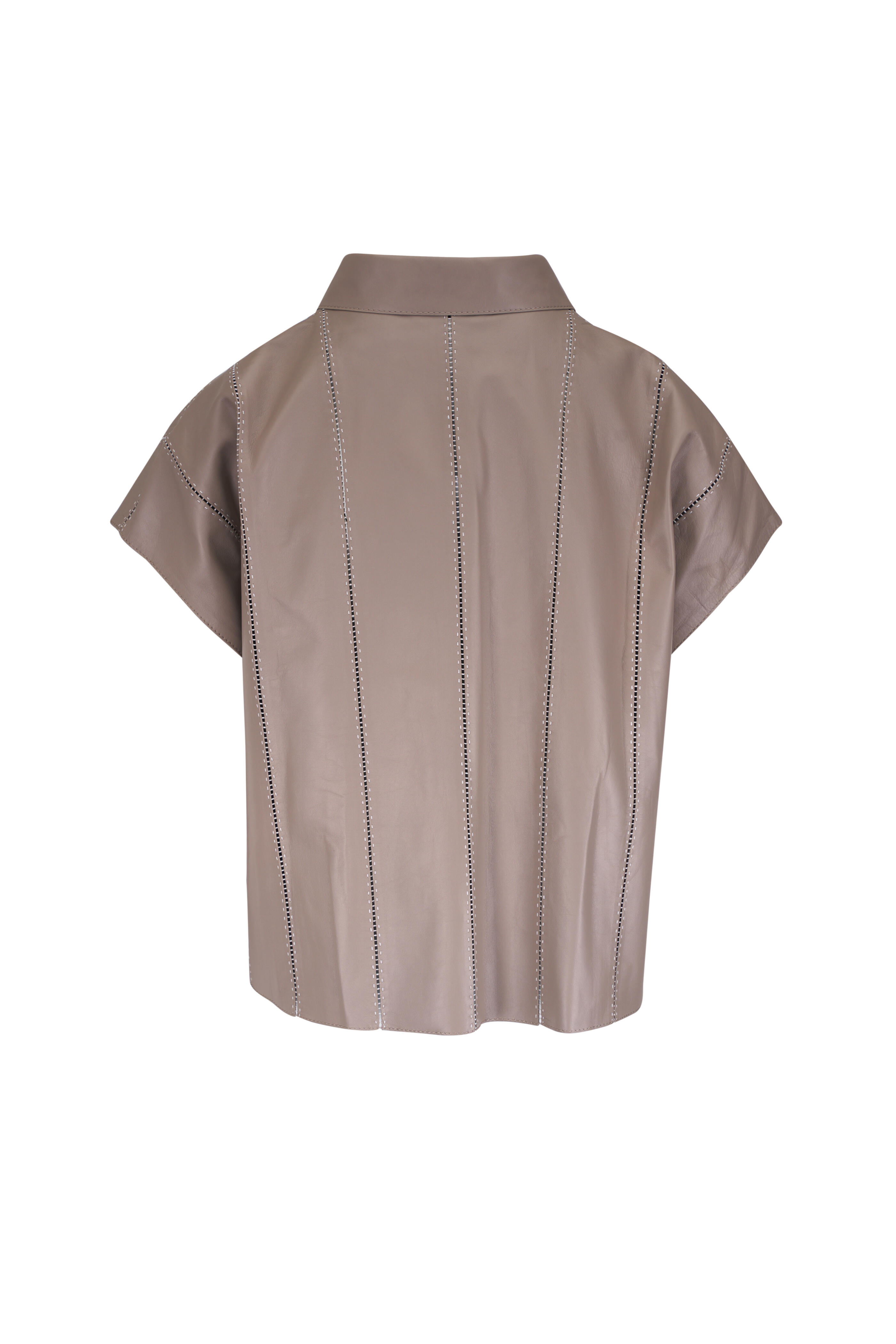 Taupe Ladder Stitch Oversized Leather Crop Shirt
