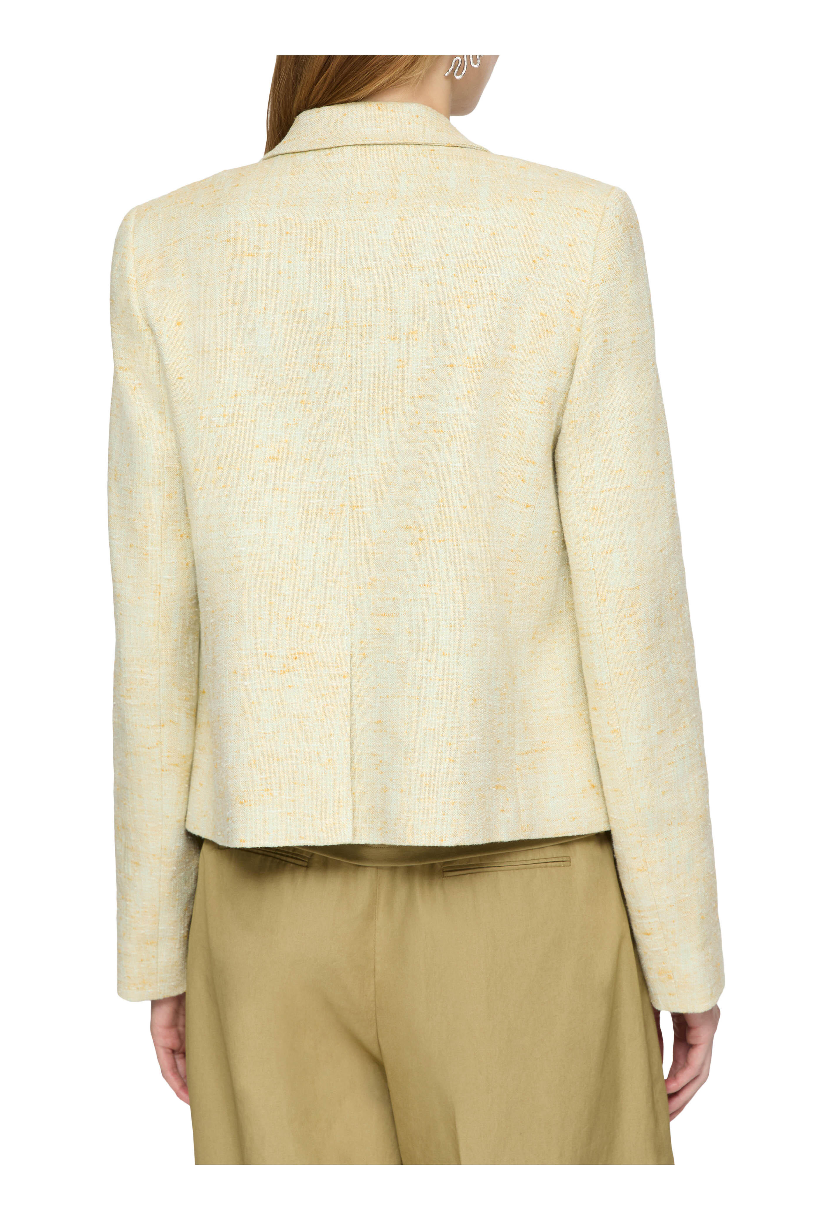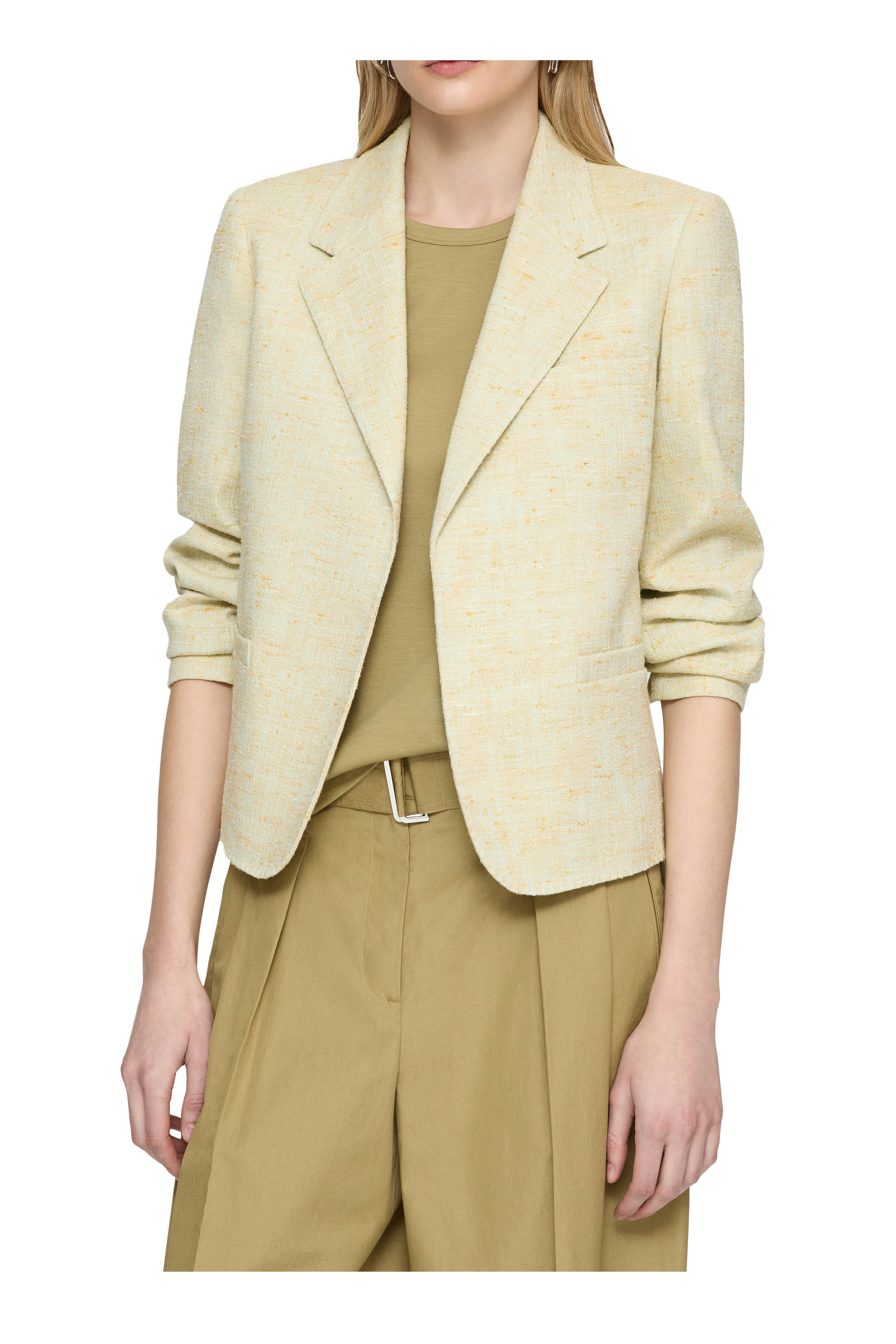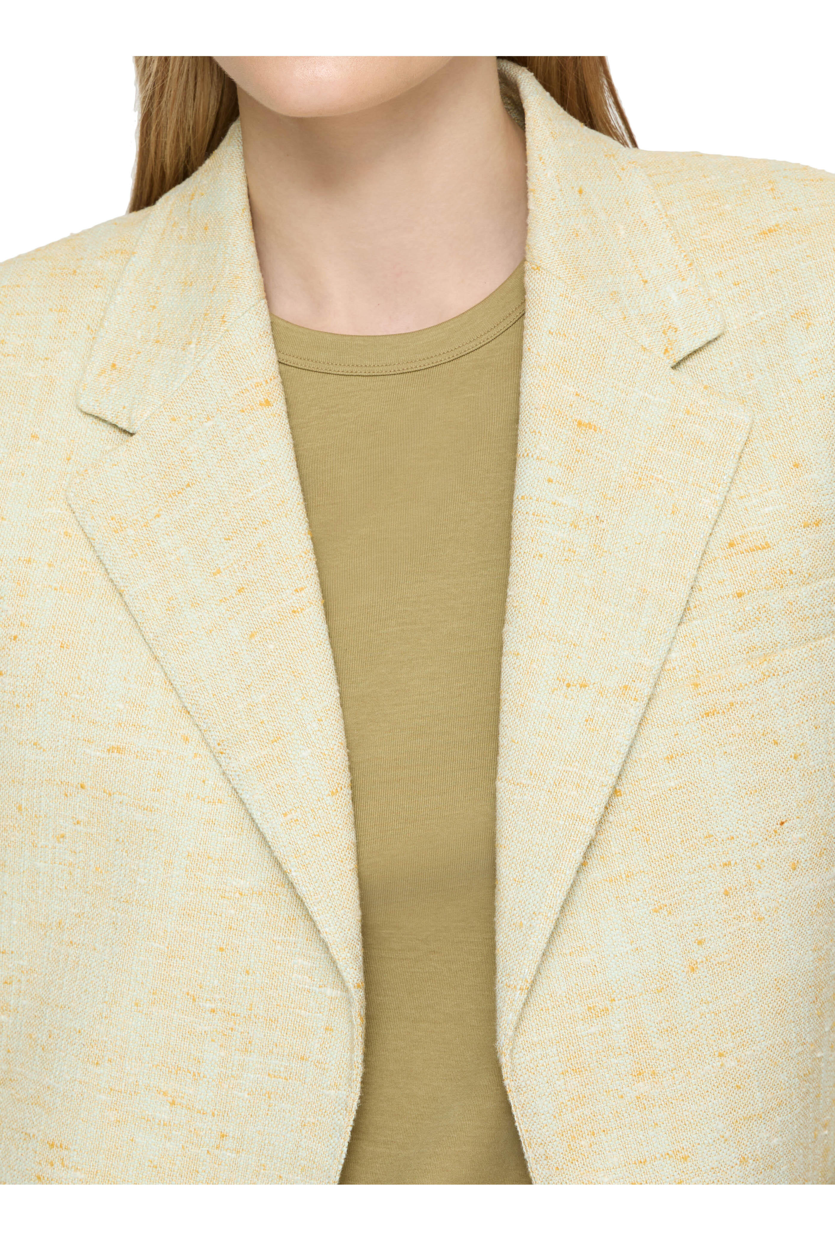 Notched lapel. Open front. Lower welt pockets. Back vent. Imported. Approximately 22" shoulder to hem (measurements from size S). 43% cotton, 37% silk, 20% hemp; lined. Dry clean.