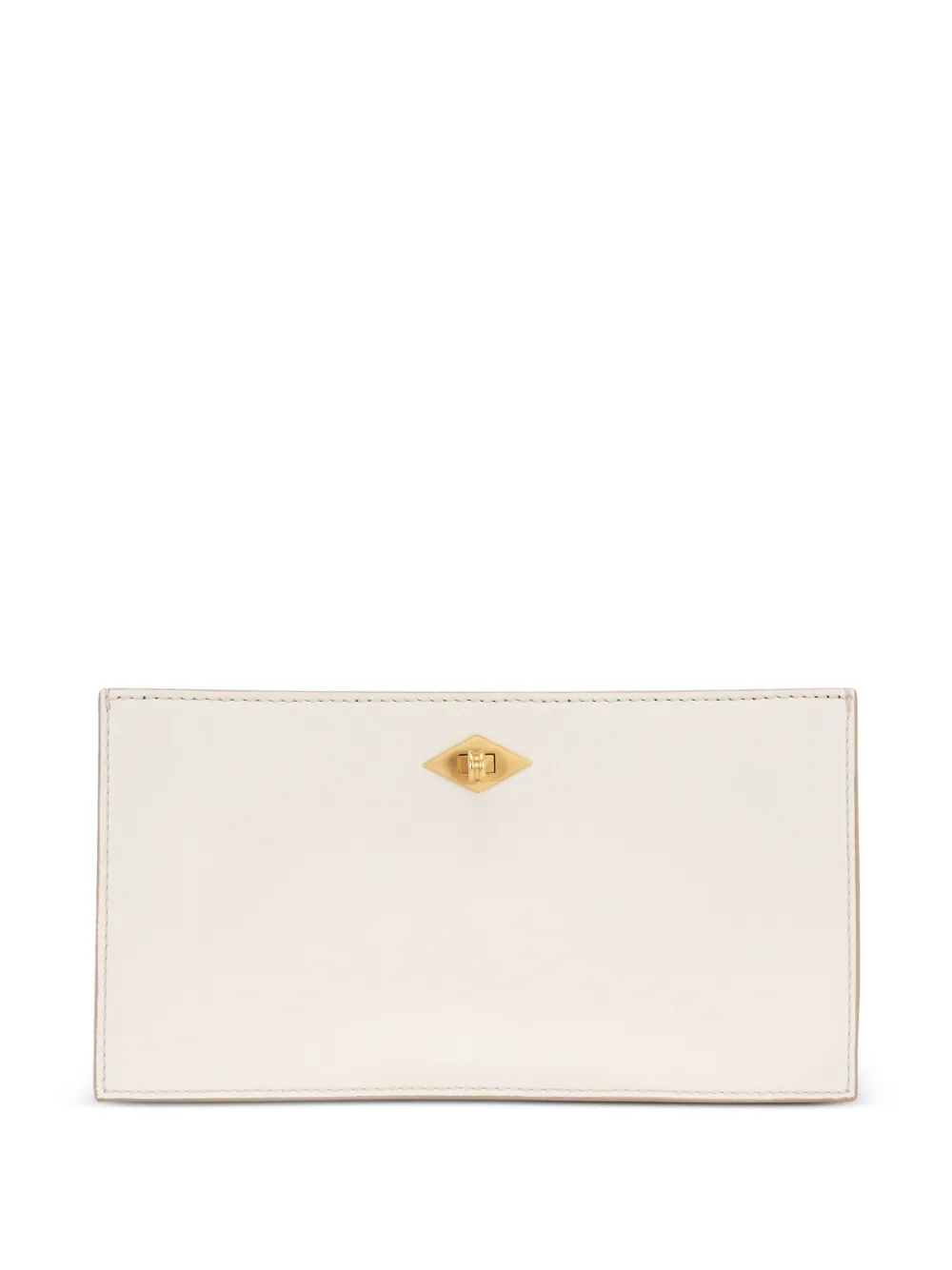 Elvis leather. Removable and adjustable crossbody strap. Signature diamond-shaped turn-lock closure. Interior zip pocket. Exterior slip pocket. Made in Italy. Width at Base: 9.1”. Width at Top: 9.1”. Depth: 2.0”. Height: 4.9”. Weight: 0.59lbs.