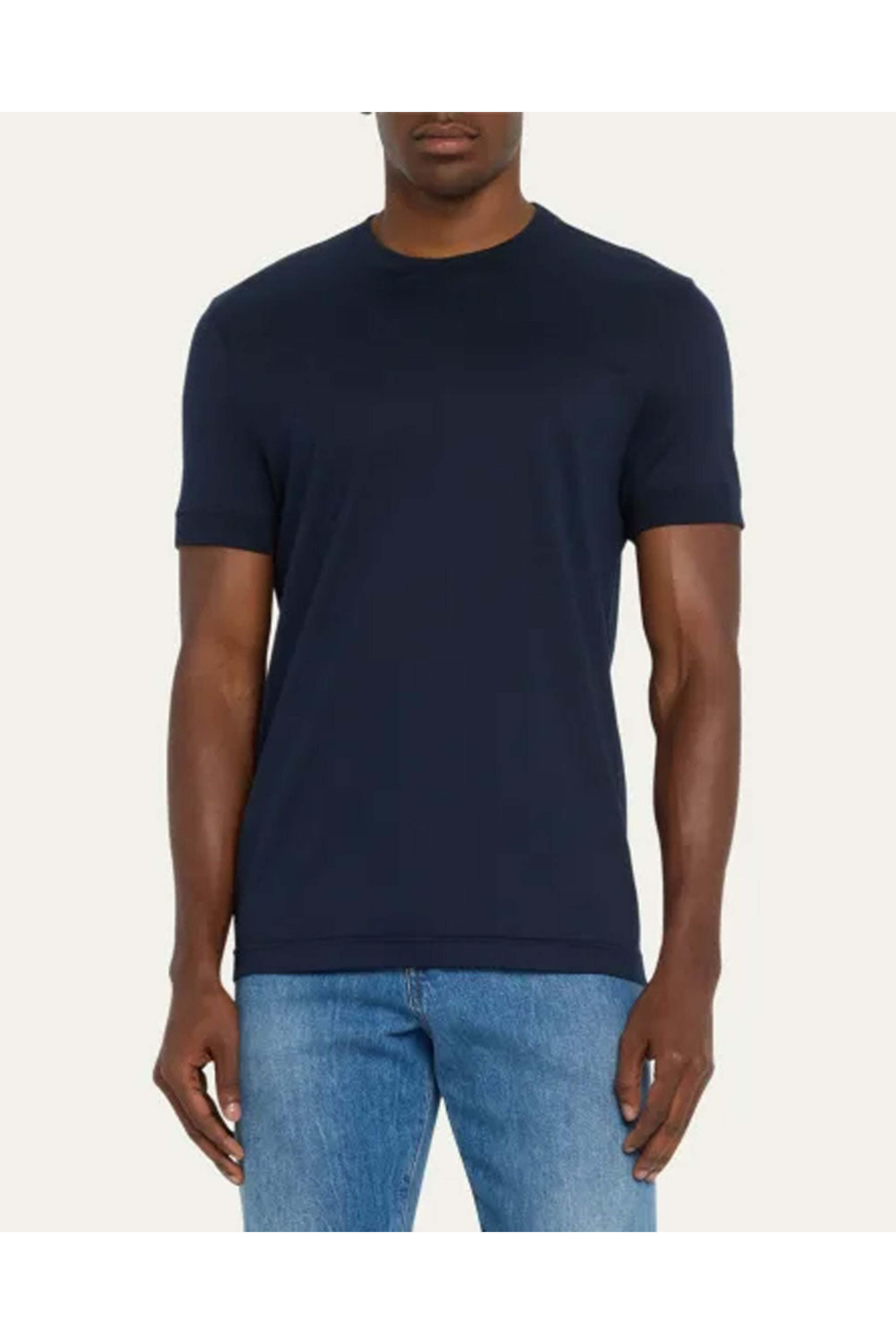 KNT Navy Crewneck Tee. Crewneck collar. Short sleeves. Pullover style . Made in Italy . 100% Cotton.