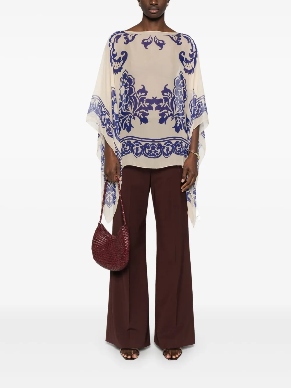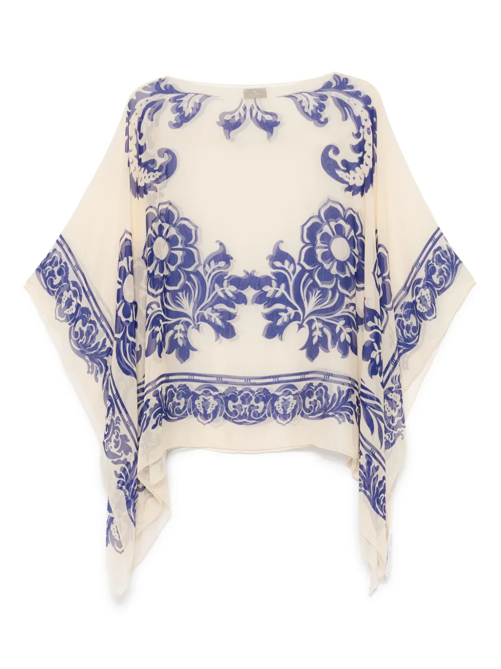 • Etro - Ivory & Blue Simmetrico Print Poncho