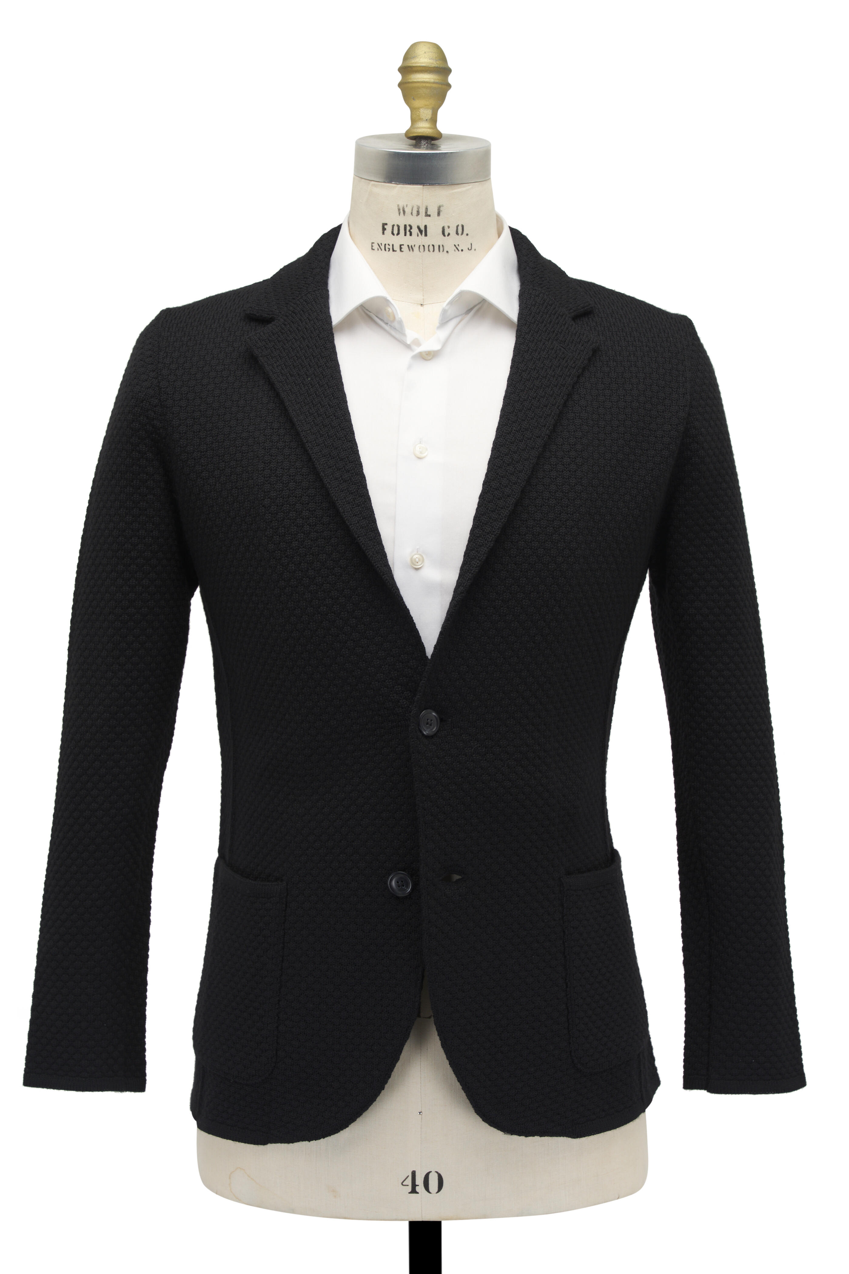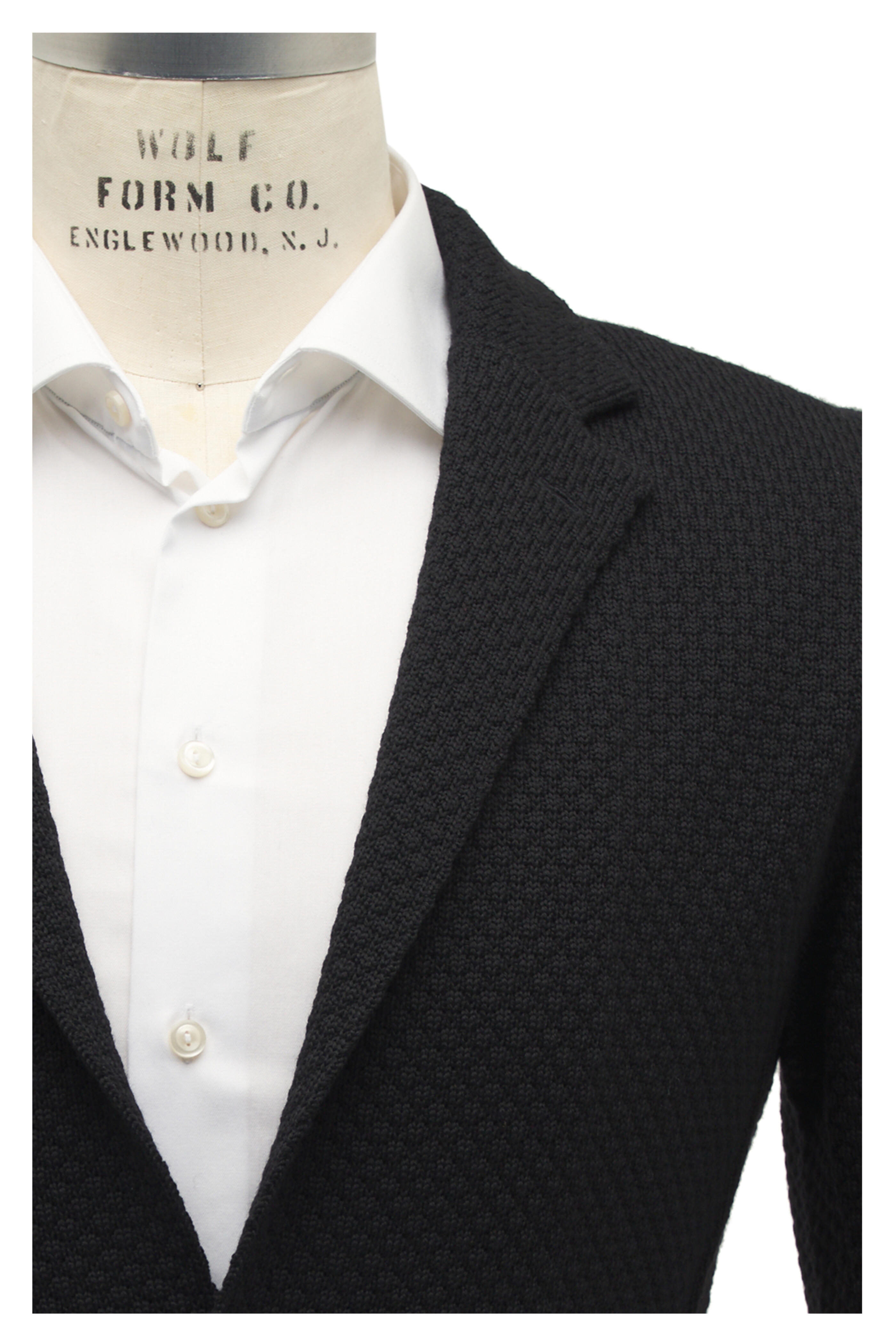 Black Popcorn Stitch Merino Wool Knit Blazer