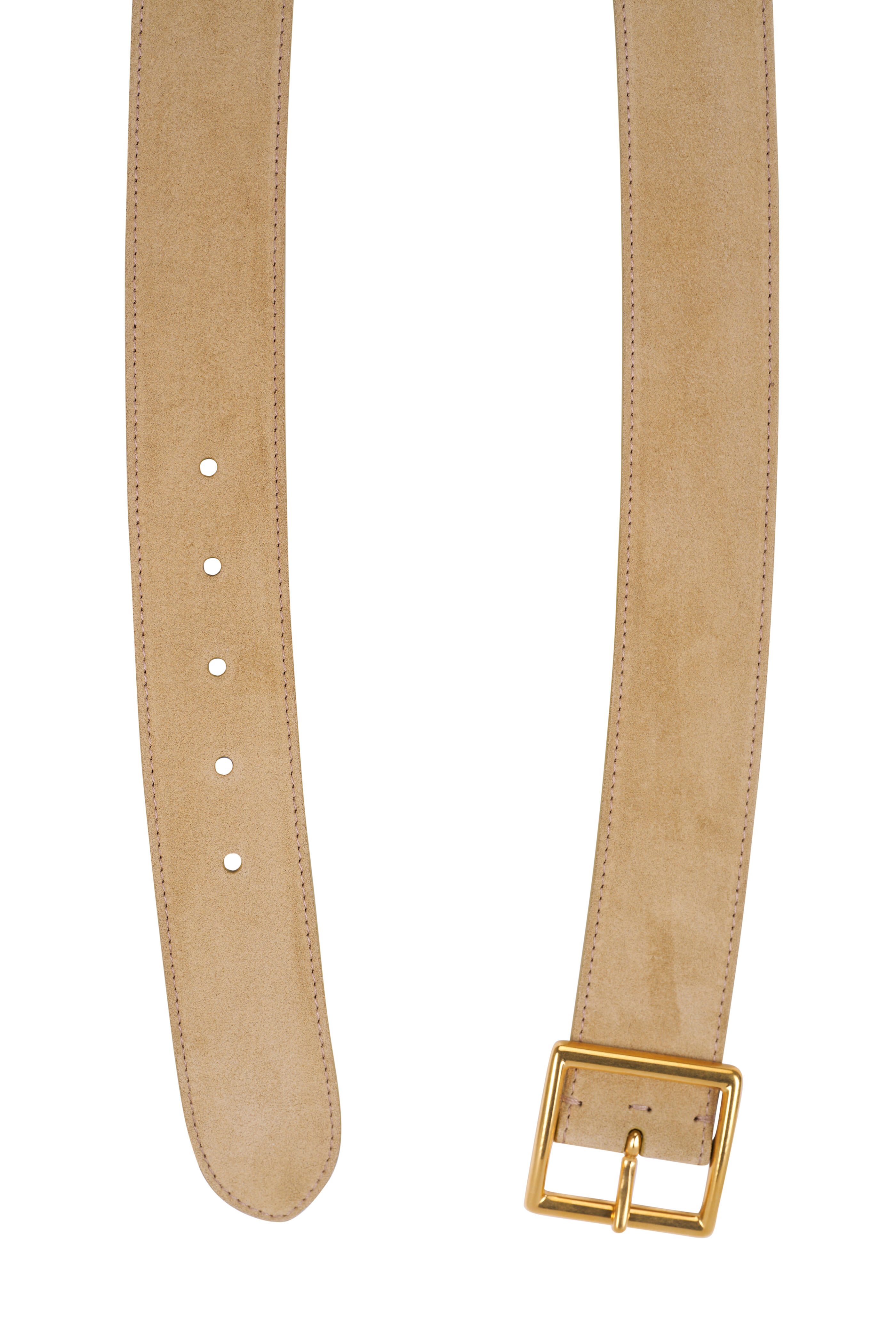 Calfskin leather. Gold square buckle. Tapered tip. Made in Italy. Width: 38mm.