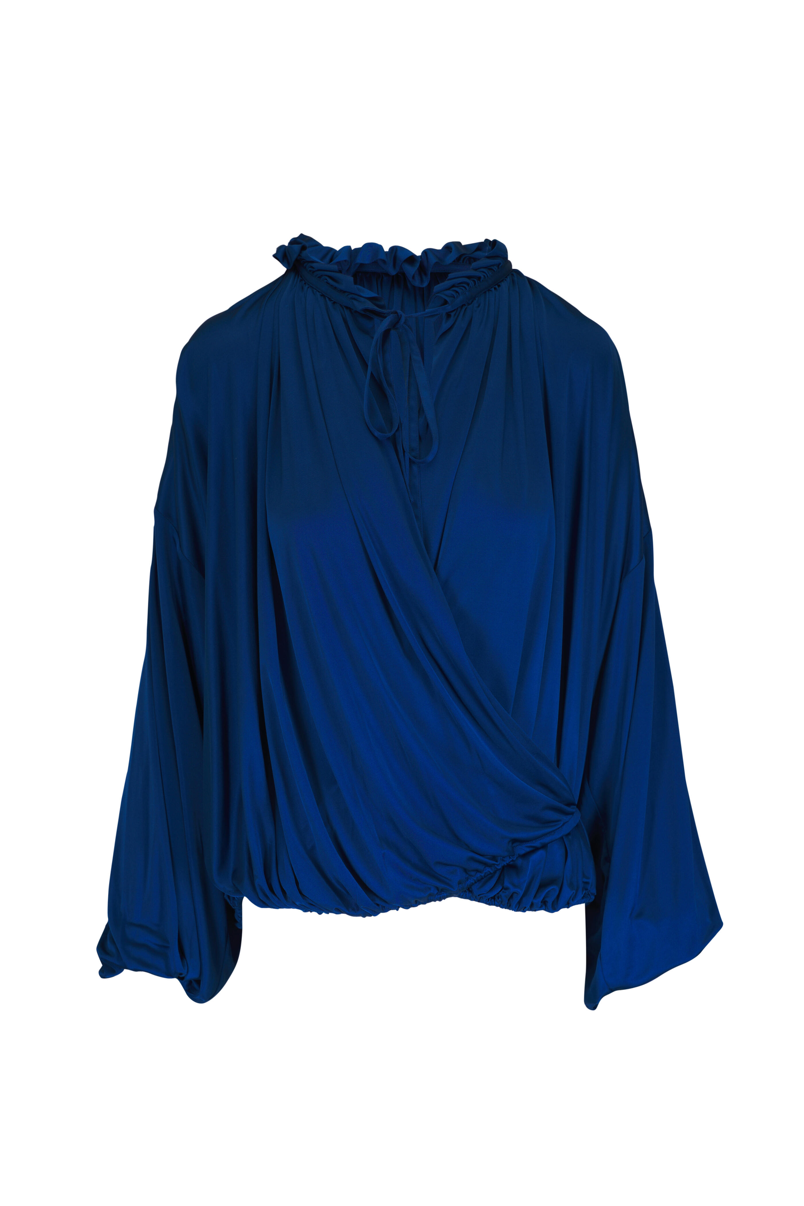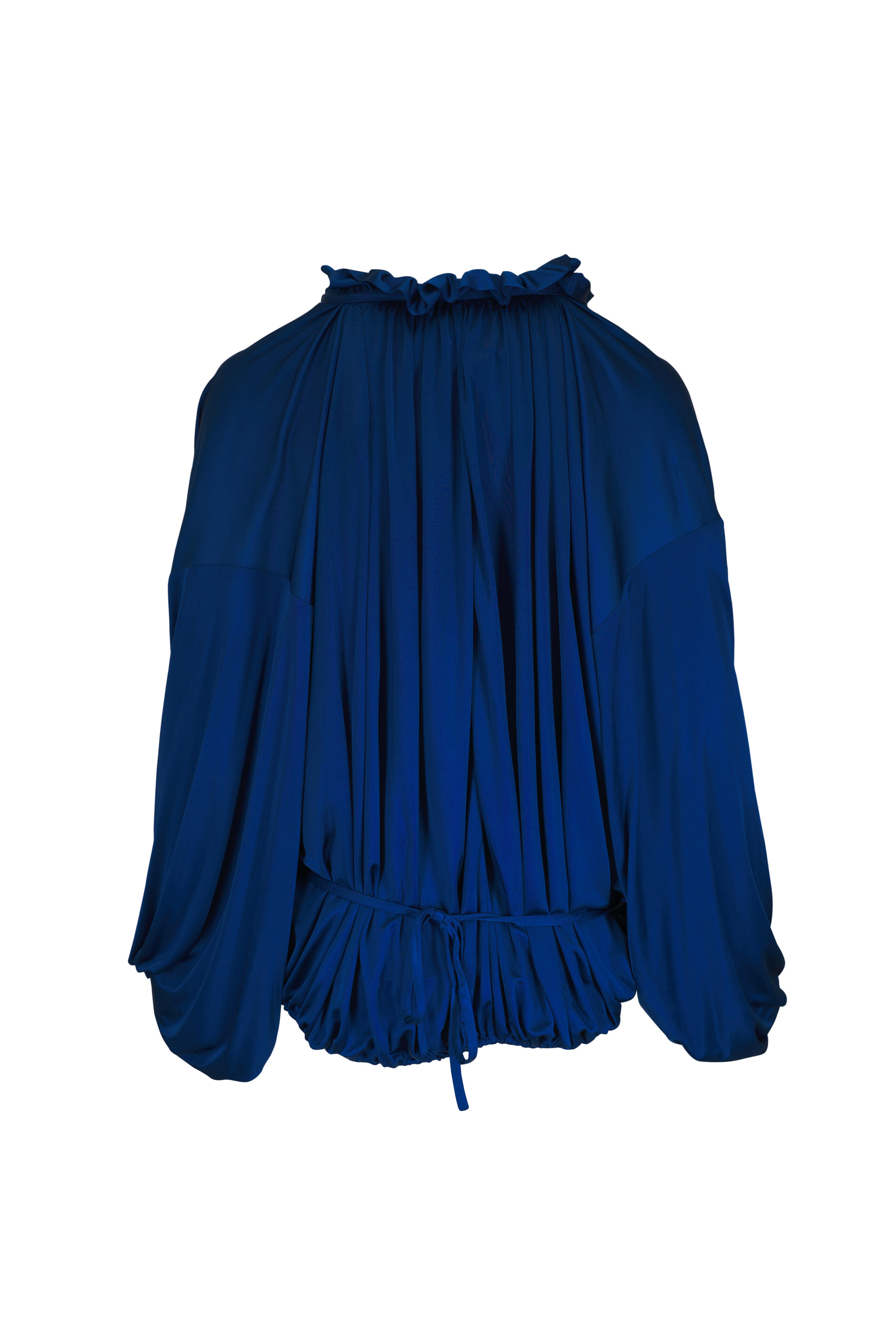 Ruffled Shimmering Petrol Satin Jersey Blouse