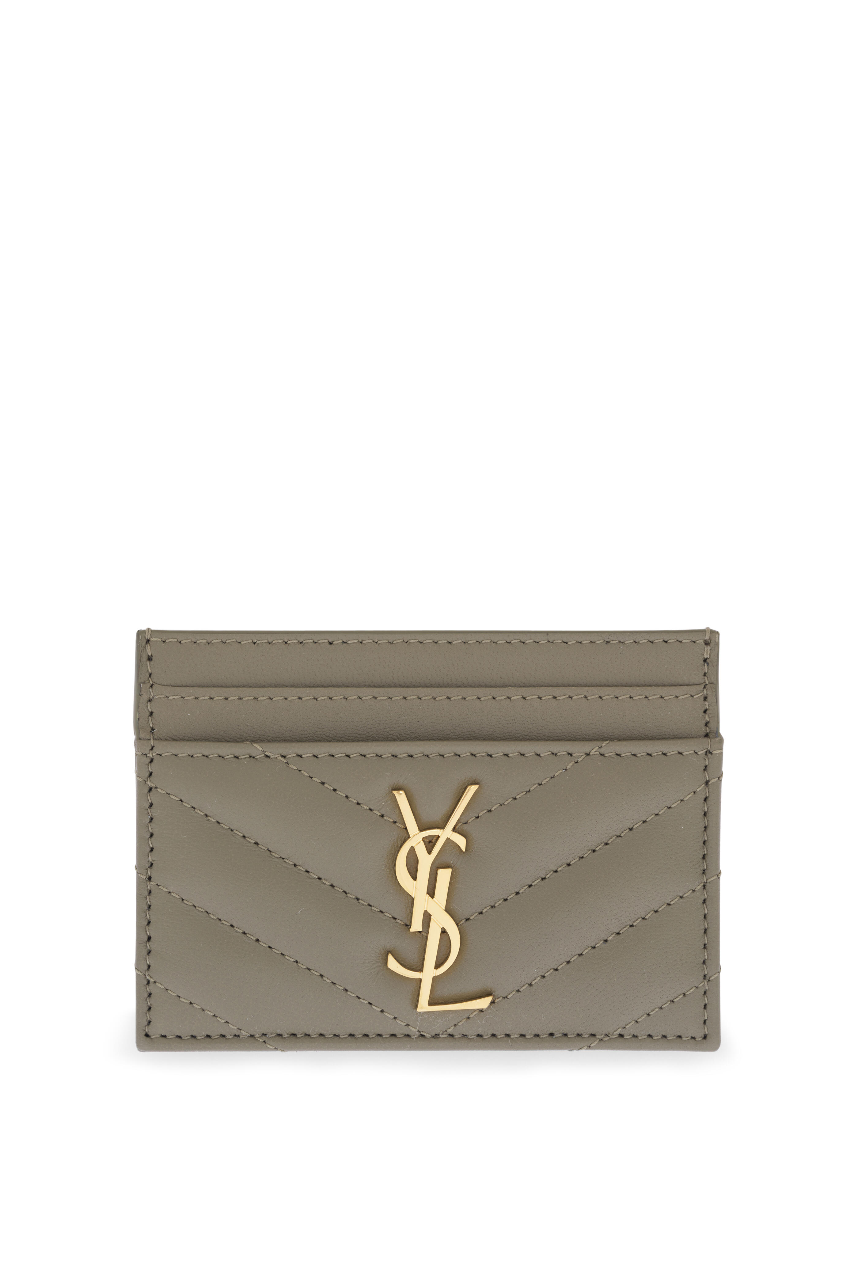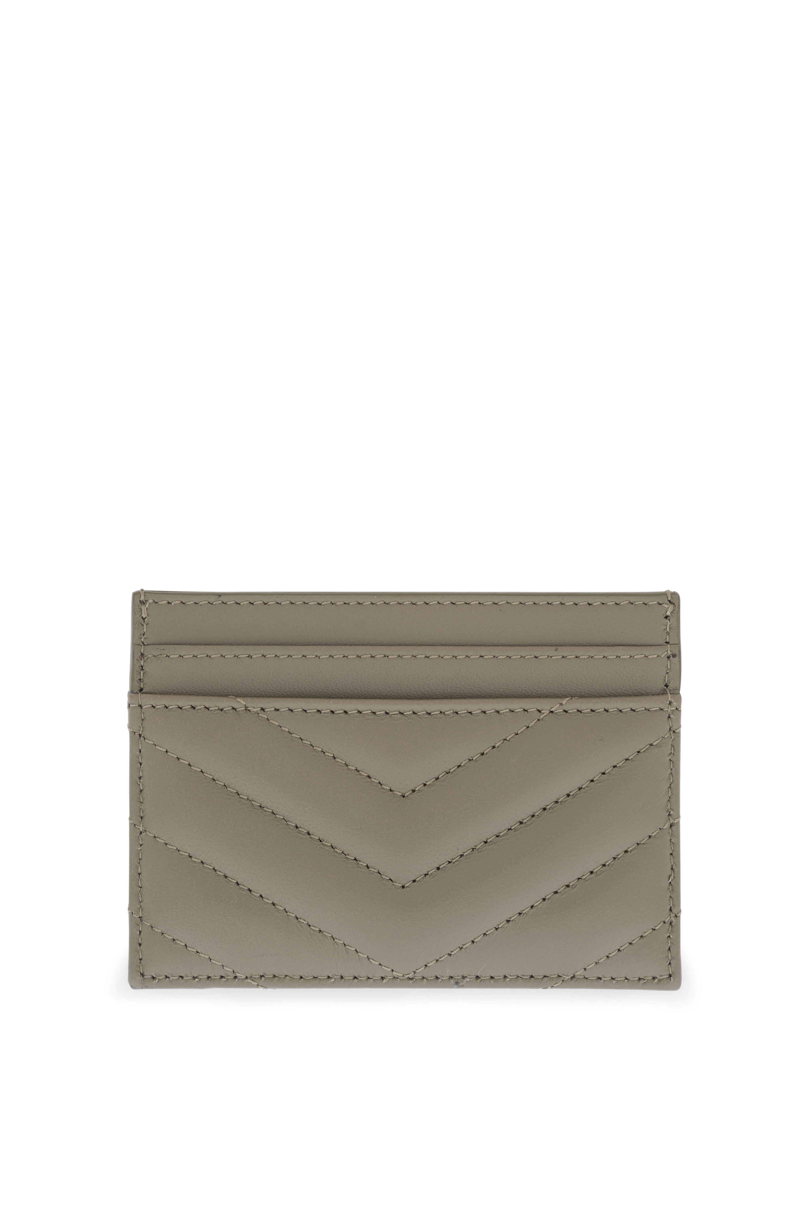 Quilted leather. Four card slots. Center top compartment. Gold-tone logo detail. Made in Italy. 4.25" width. approx. 3" height.