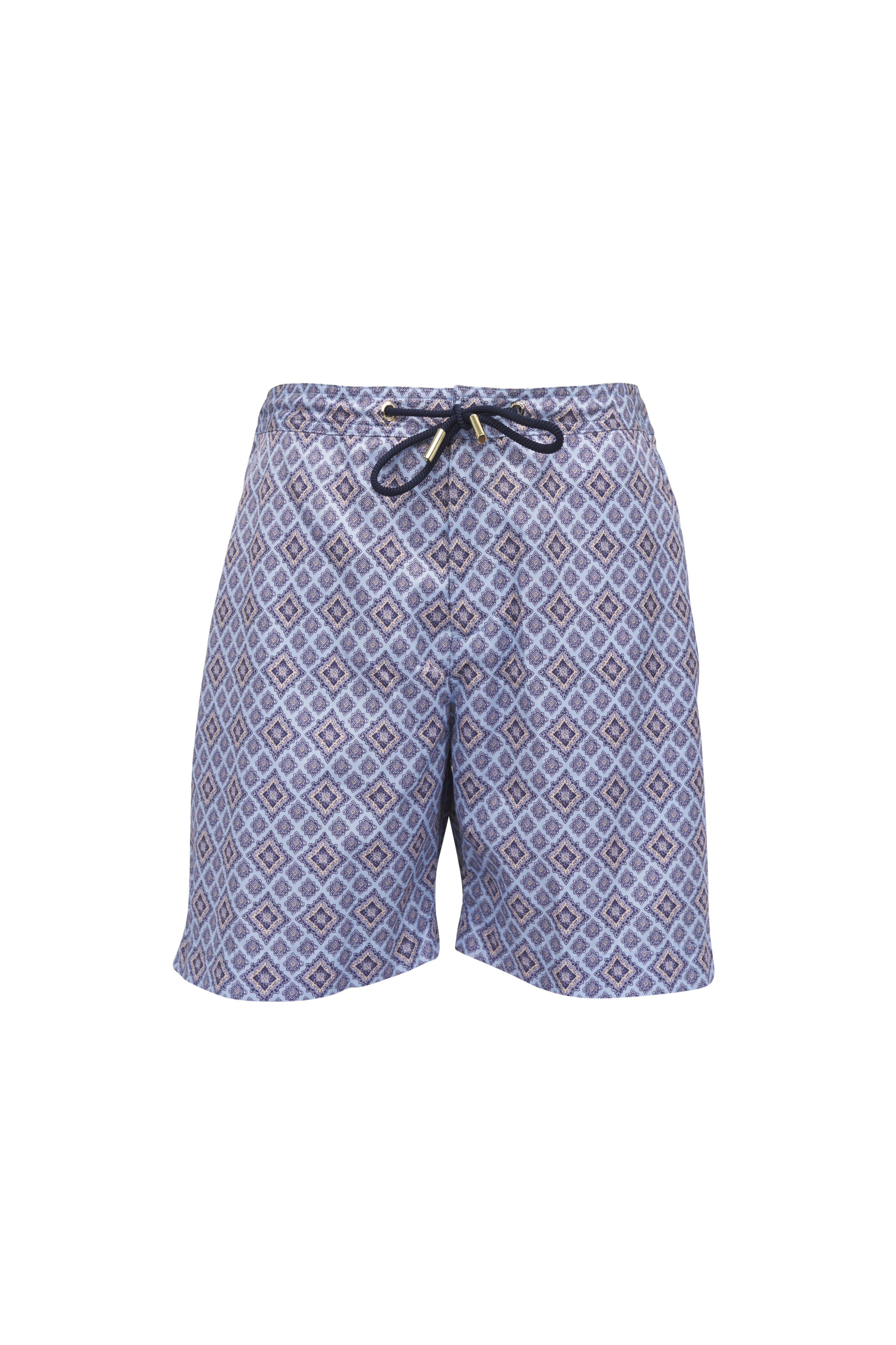 Bulldog Wave Blue Paisley Print Swim Trunks