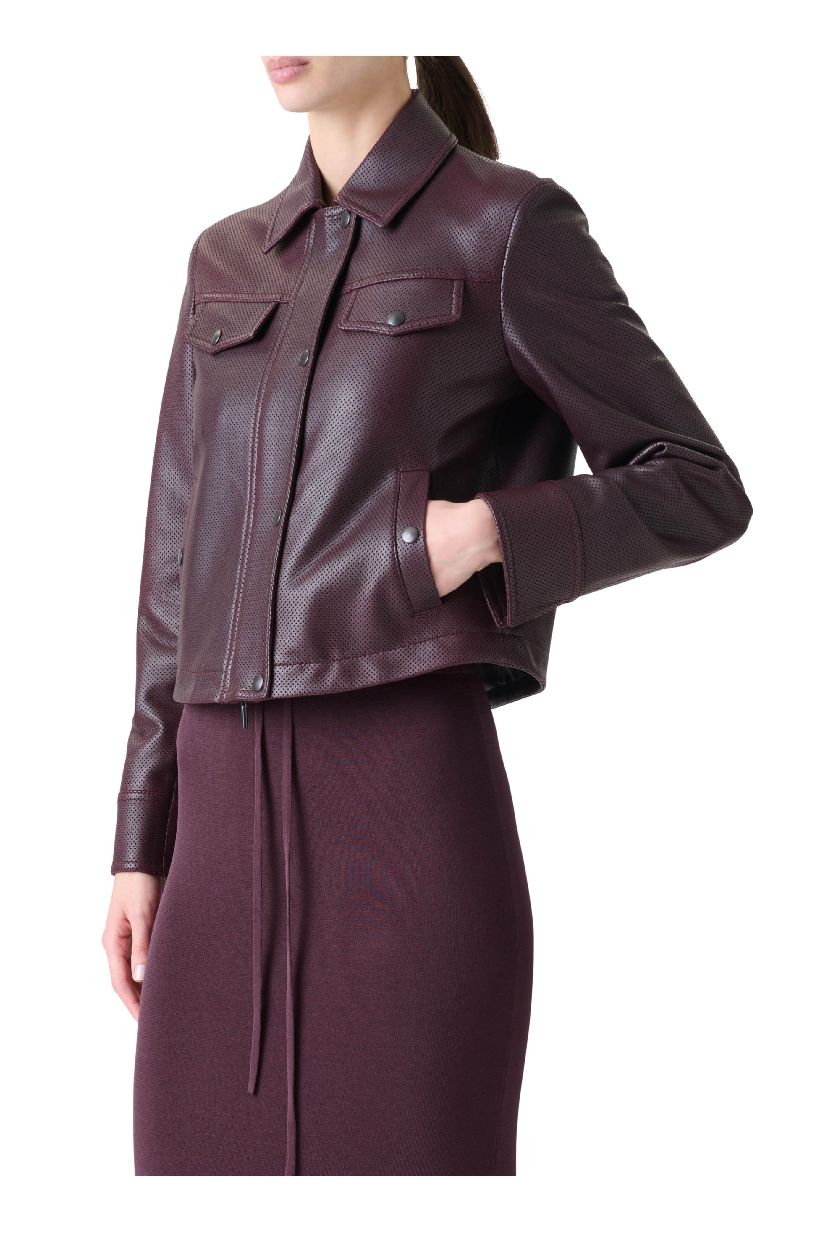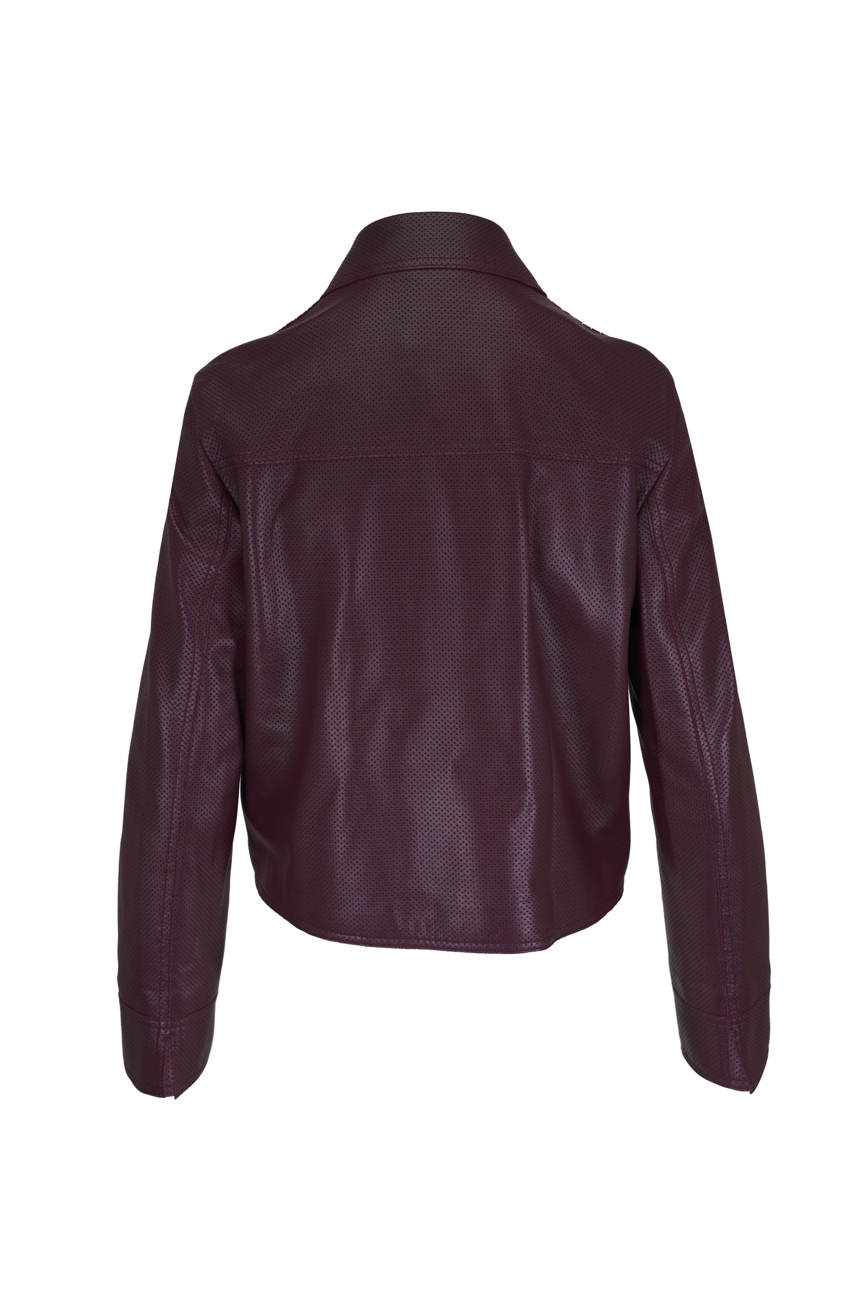 Specialist clean. Fully lined. Spread collar. Front button placket. Three-quarter length sleeves. Single button cuffs. Imported. 100% lamb nappa leather.