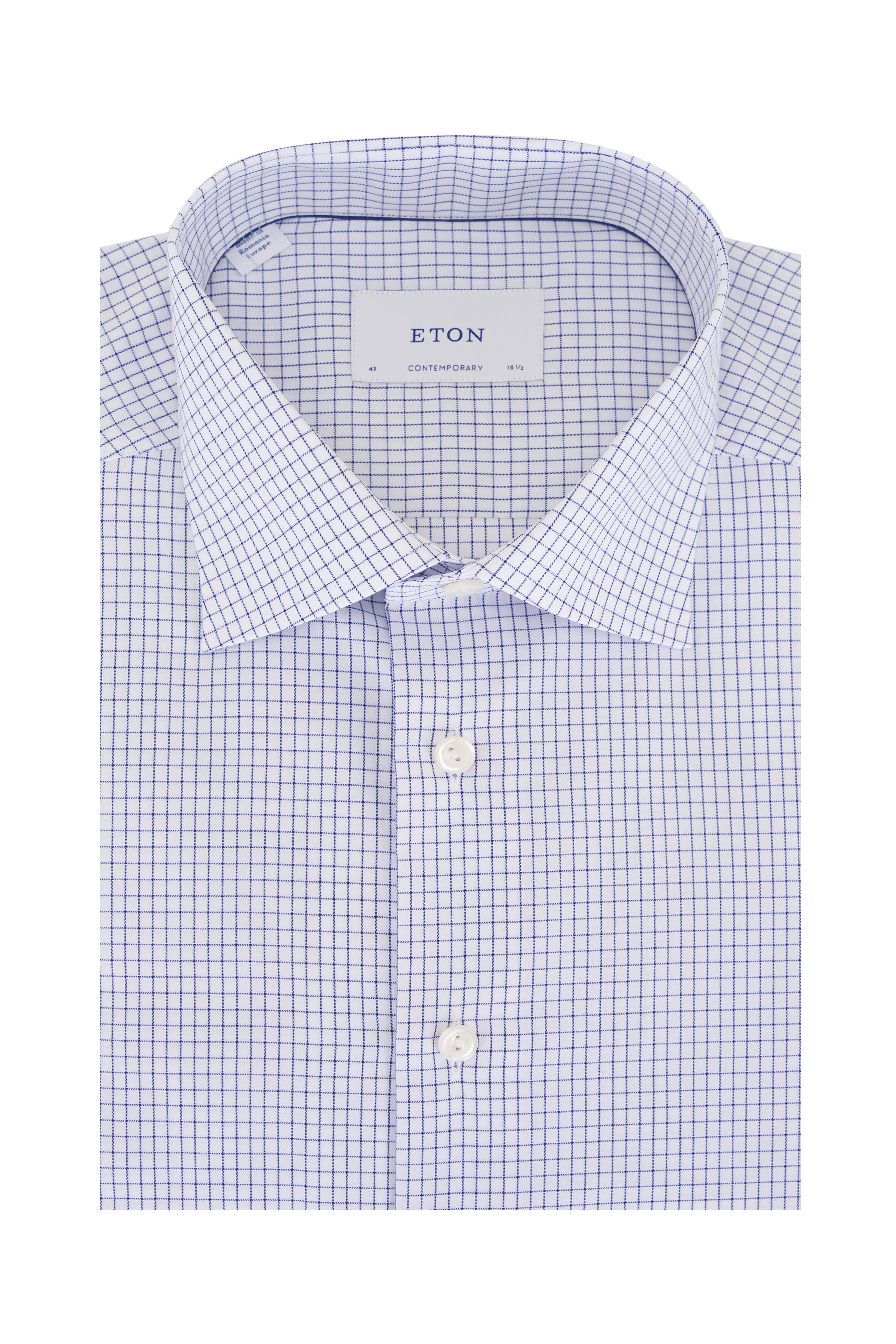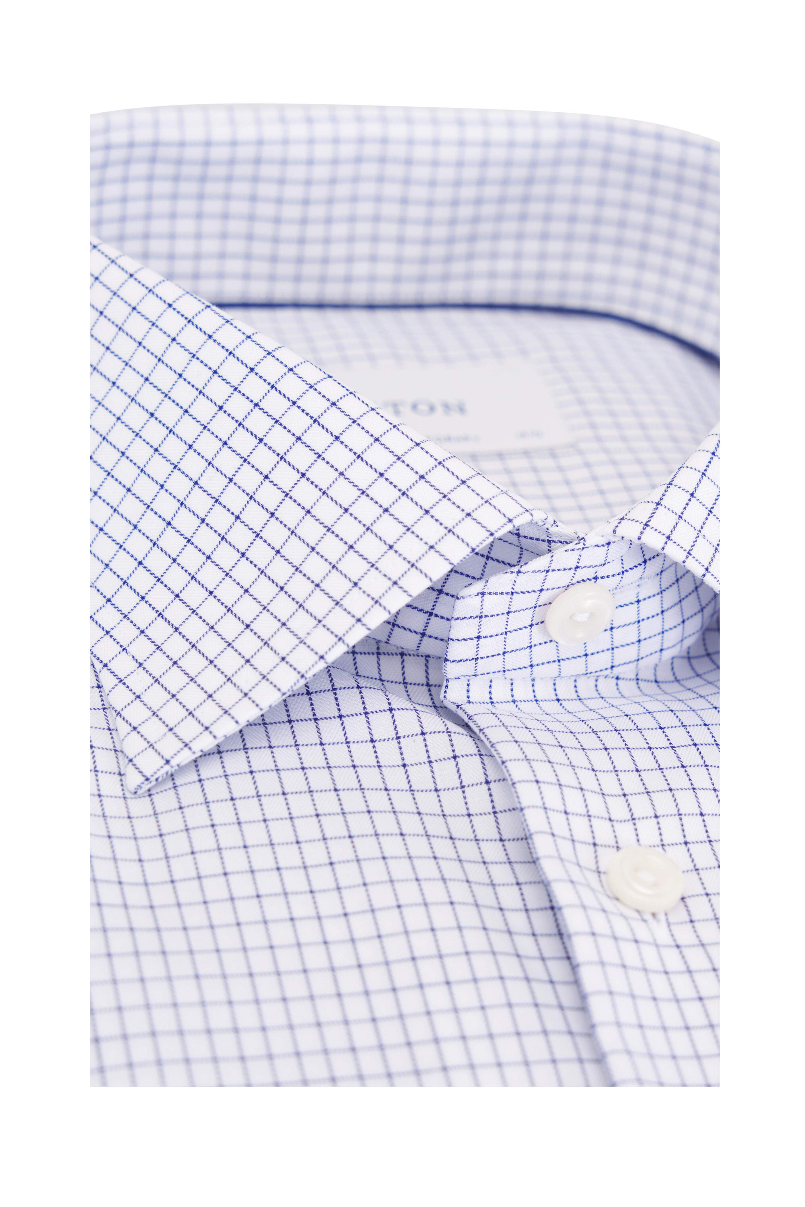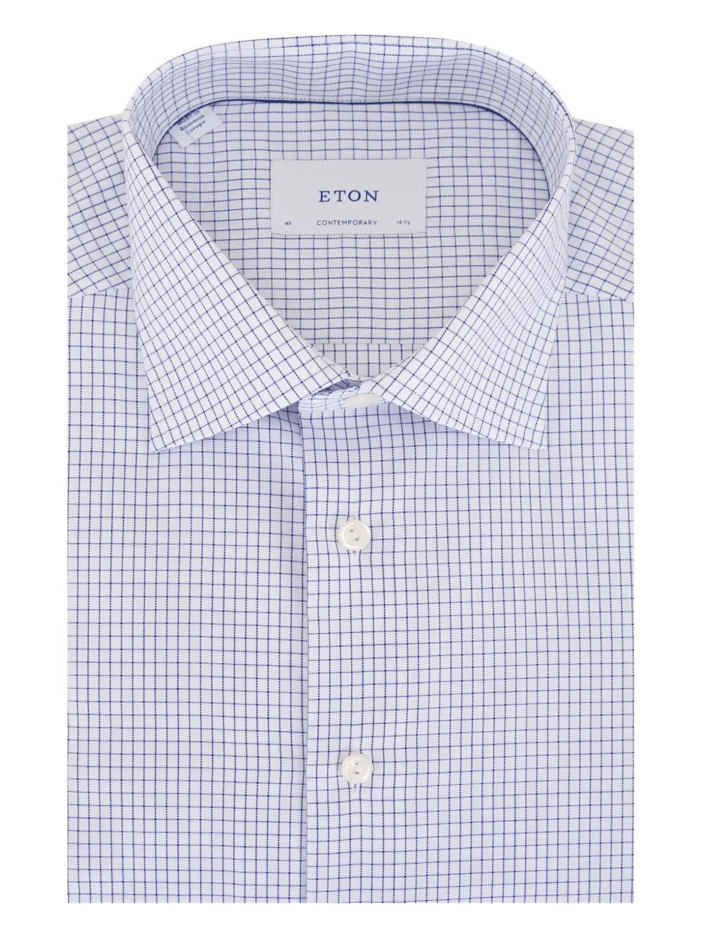 Spread collar. French front button placket. Single button mitered cuffs. Imported. Contemporary fit. 100% cotton. Machine wash.