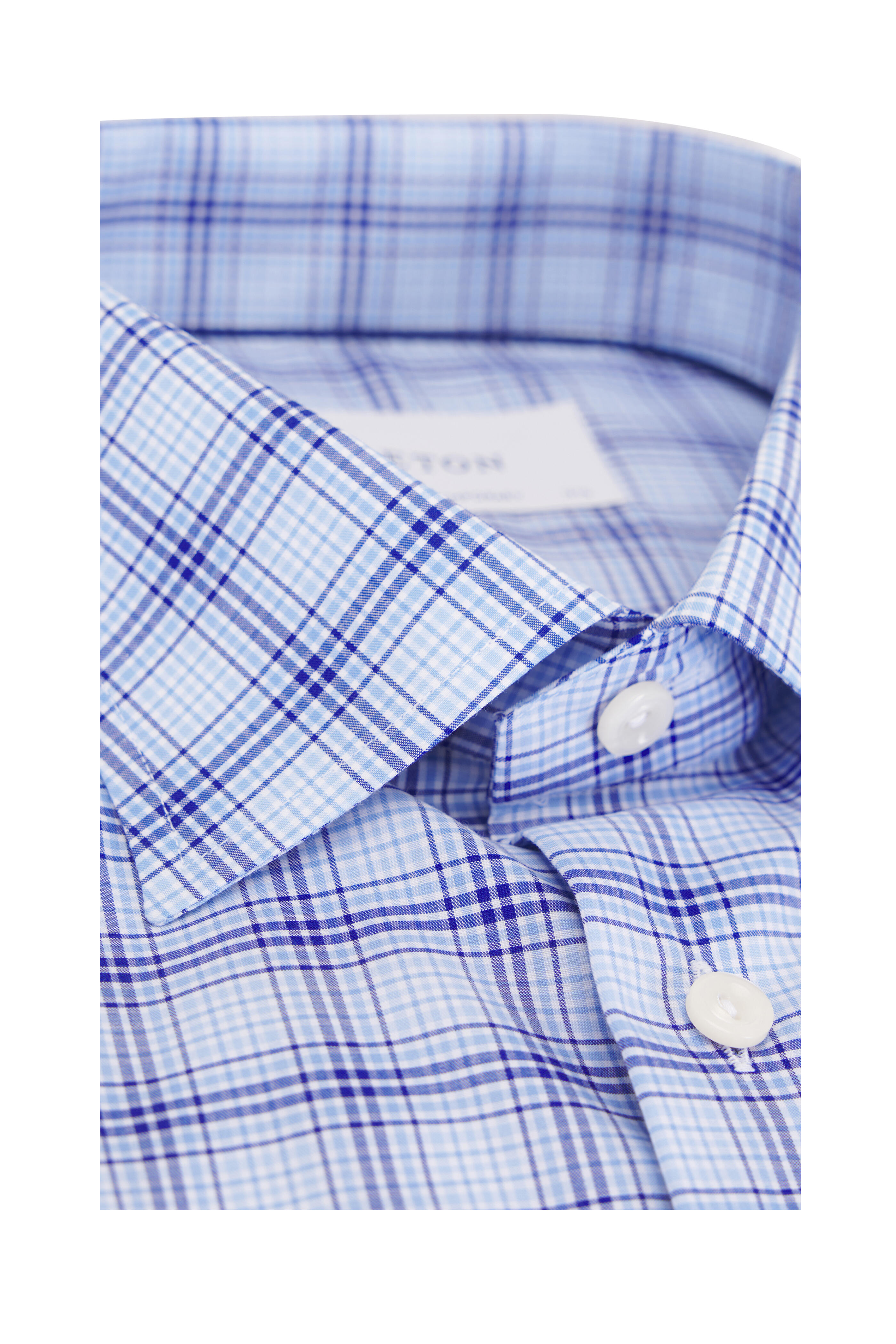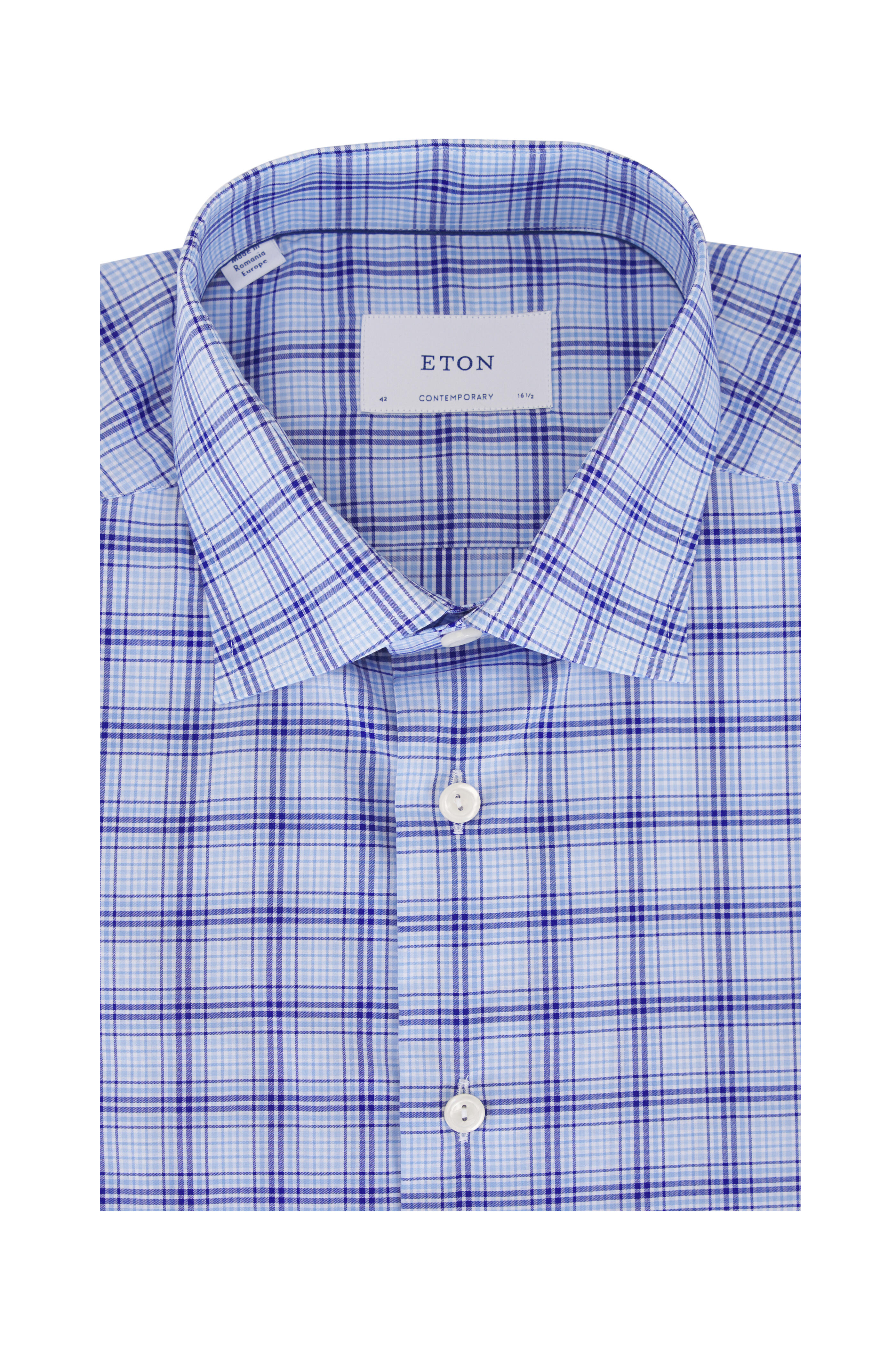 Spread collar. French front button placket. Single button mitered cuffs. Imported. Contemporary fit. 100% cotton. Machine wash.