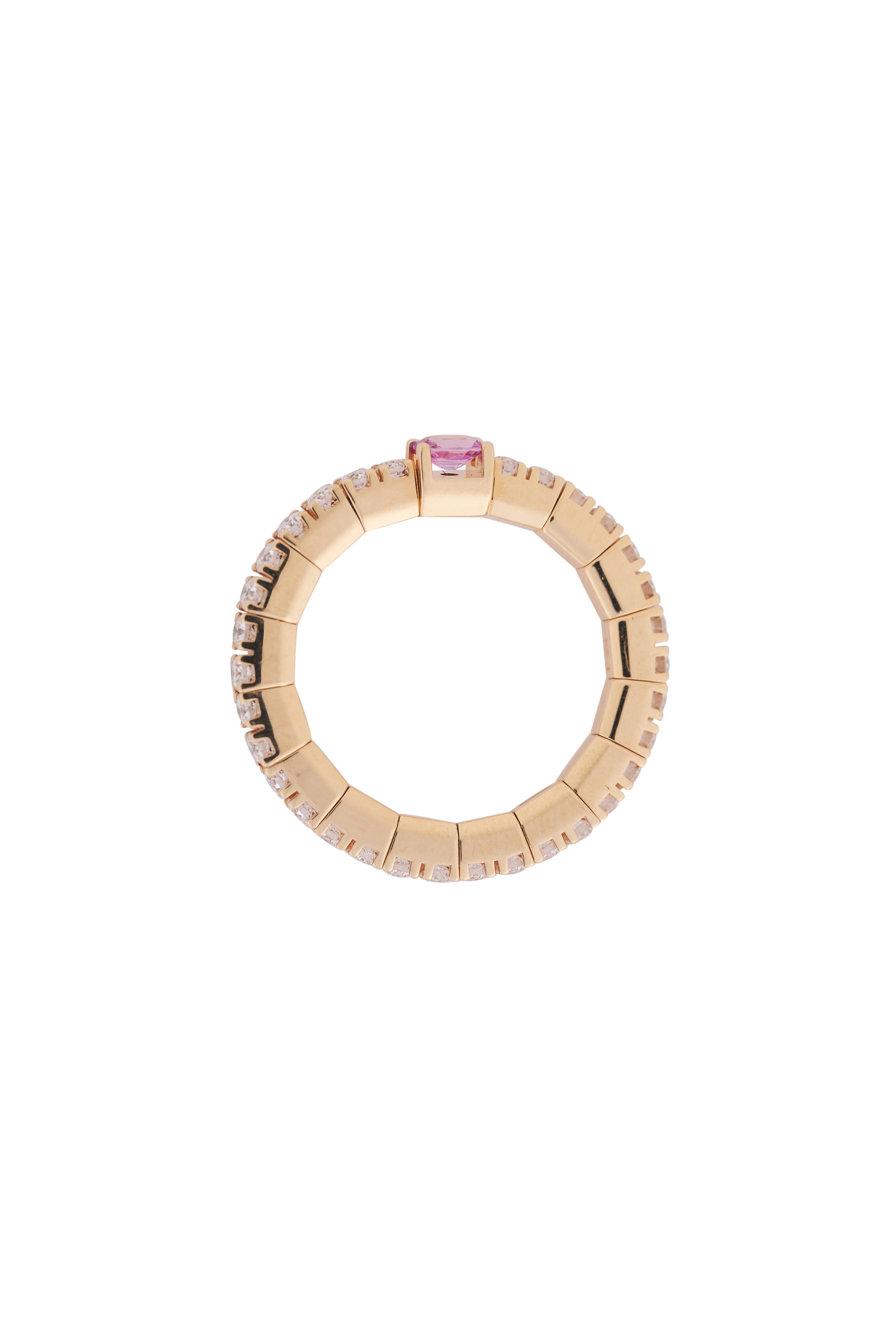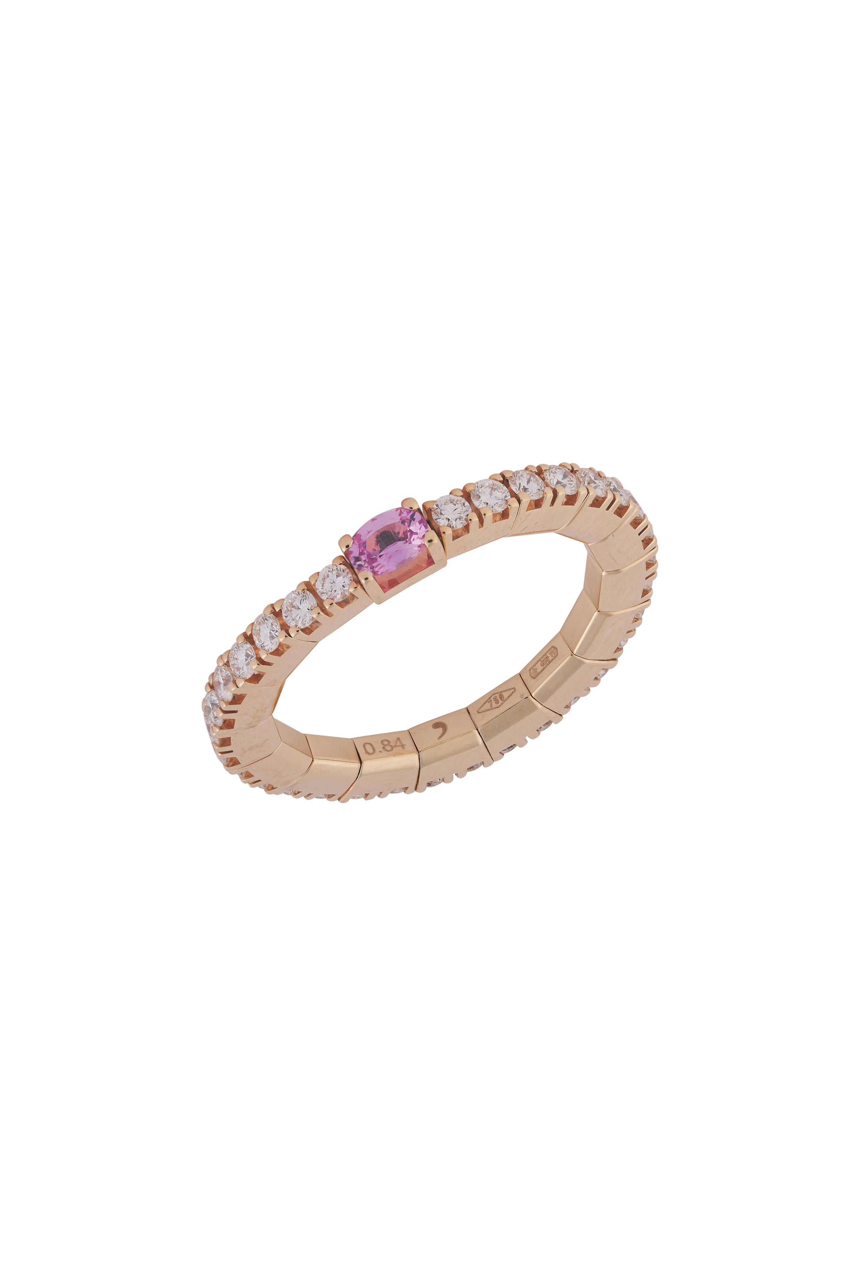 18k Rose Gold. 0.84 ct White Diamond. 0.17 ct Pink Sapphire.