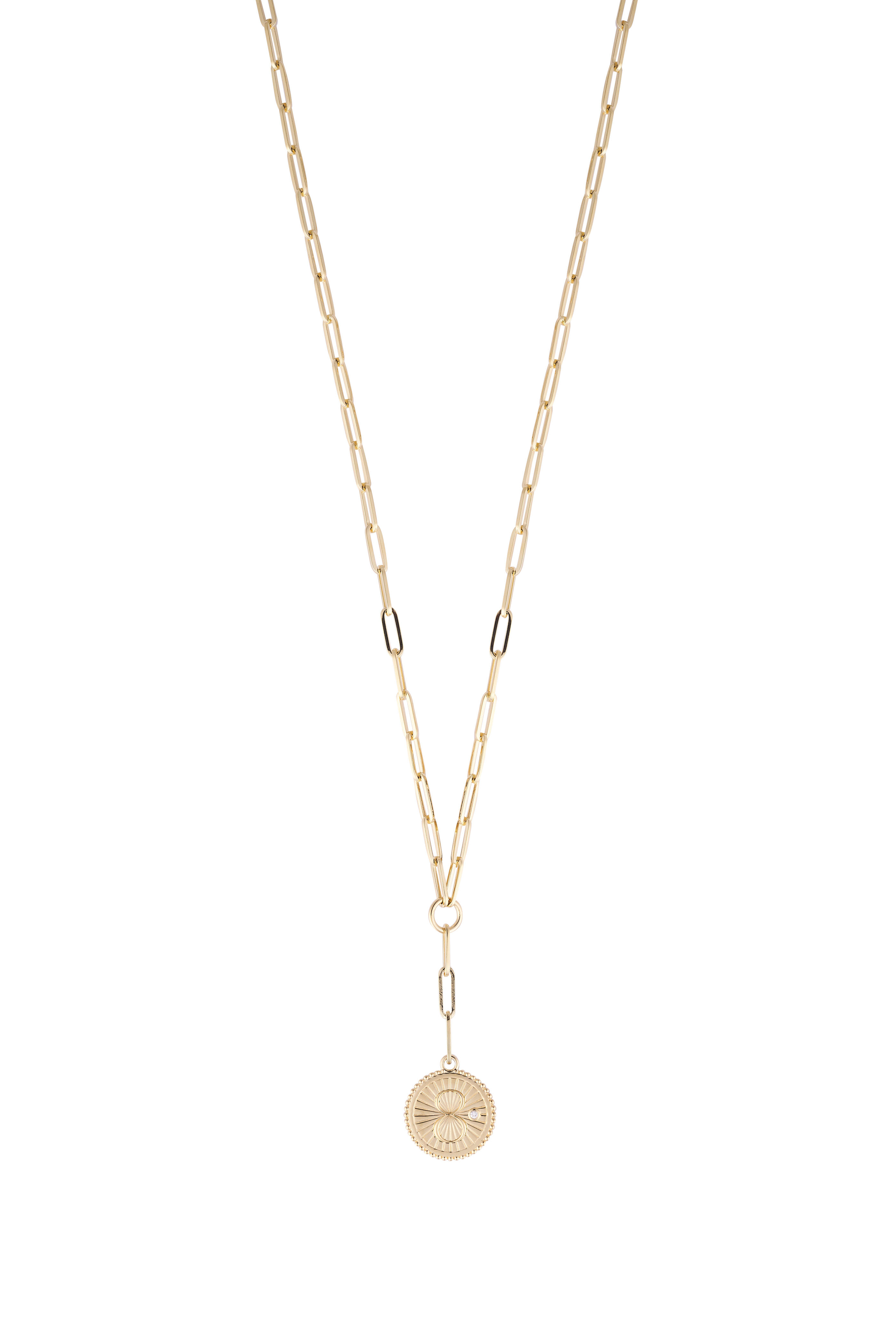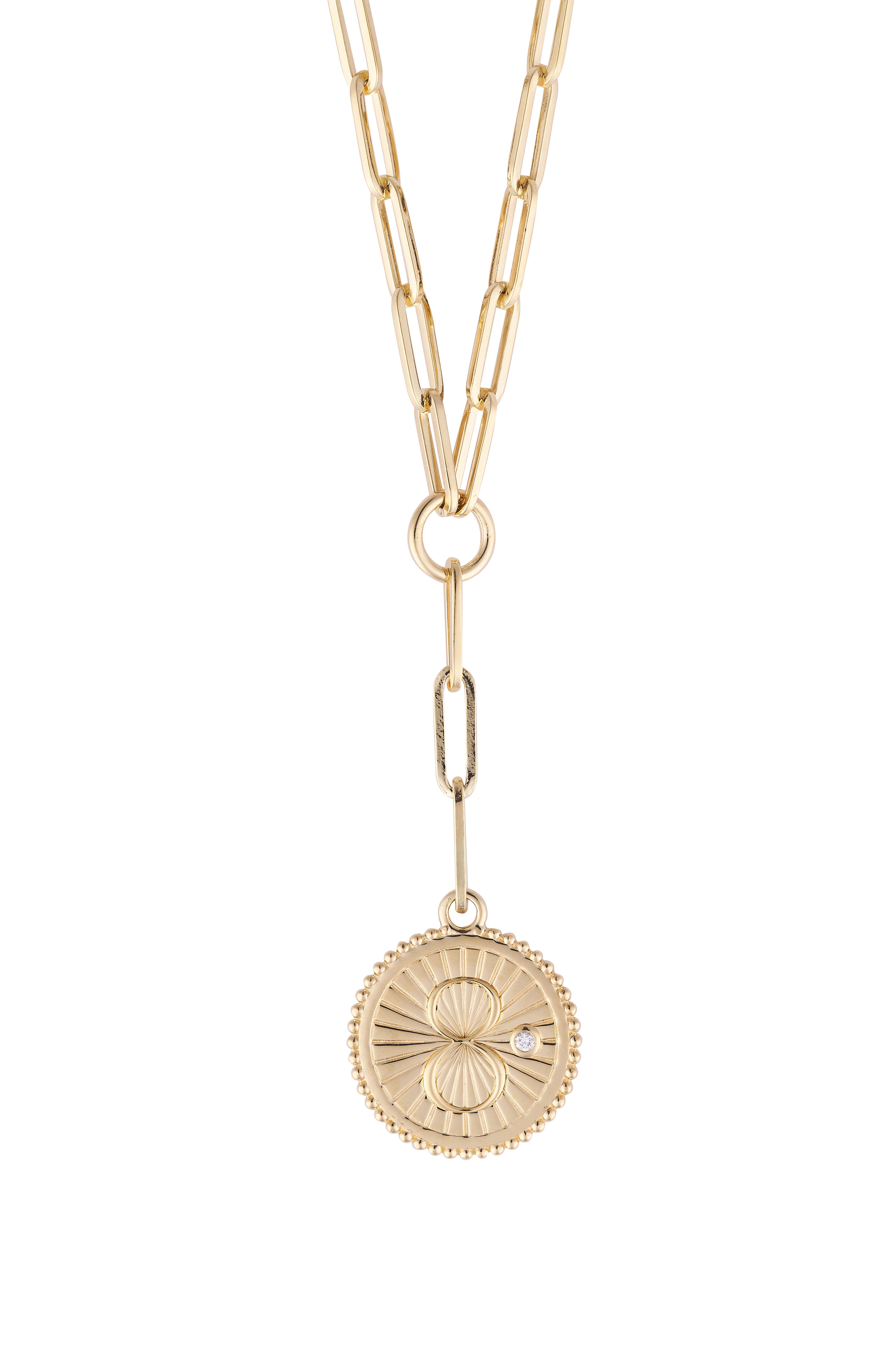 18k yellow gold. Diamond: .02 ct. Lobster clasp. Length: 20". Medallion: 20 mm.