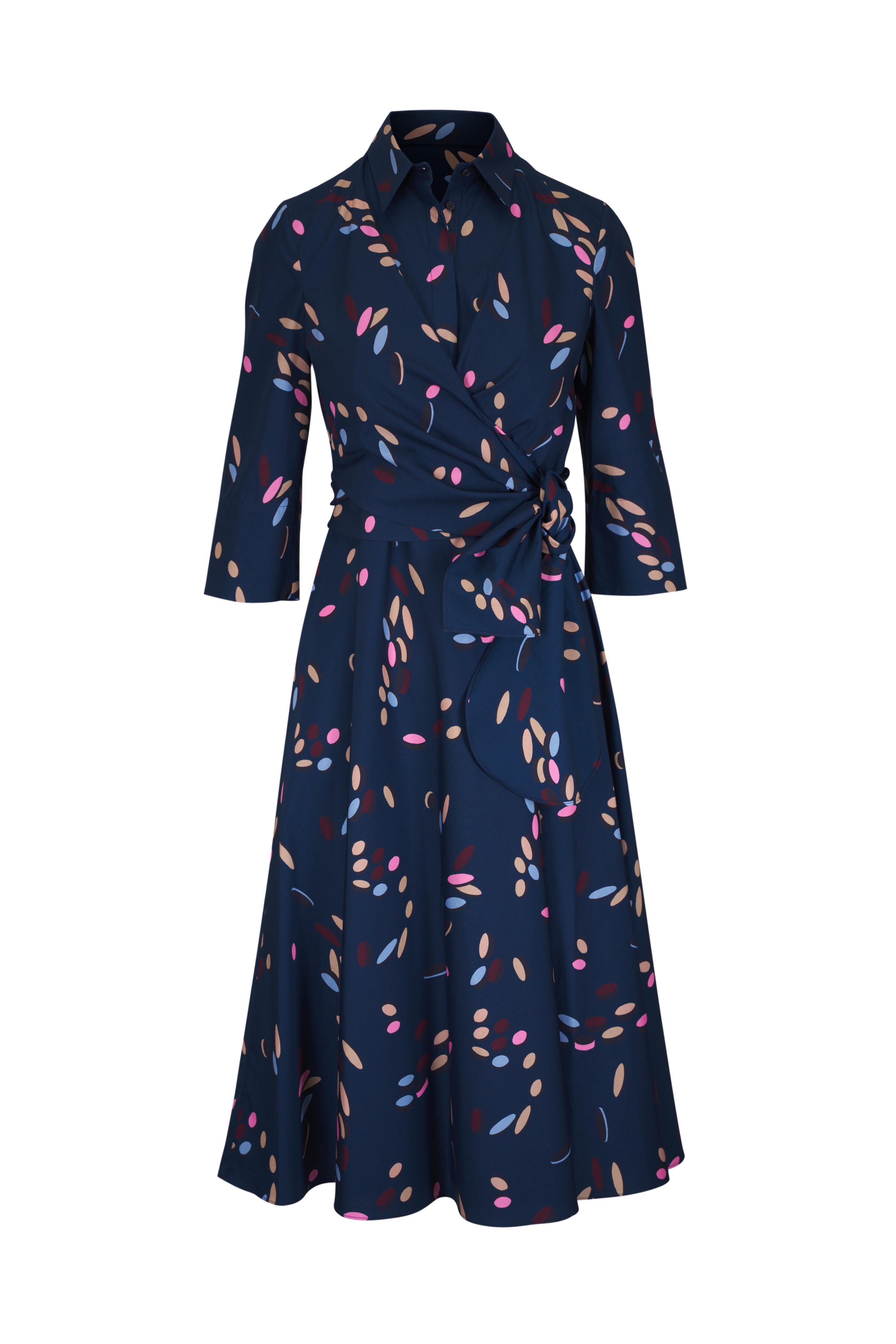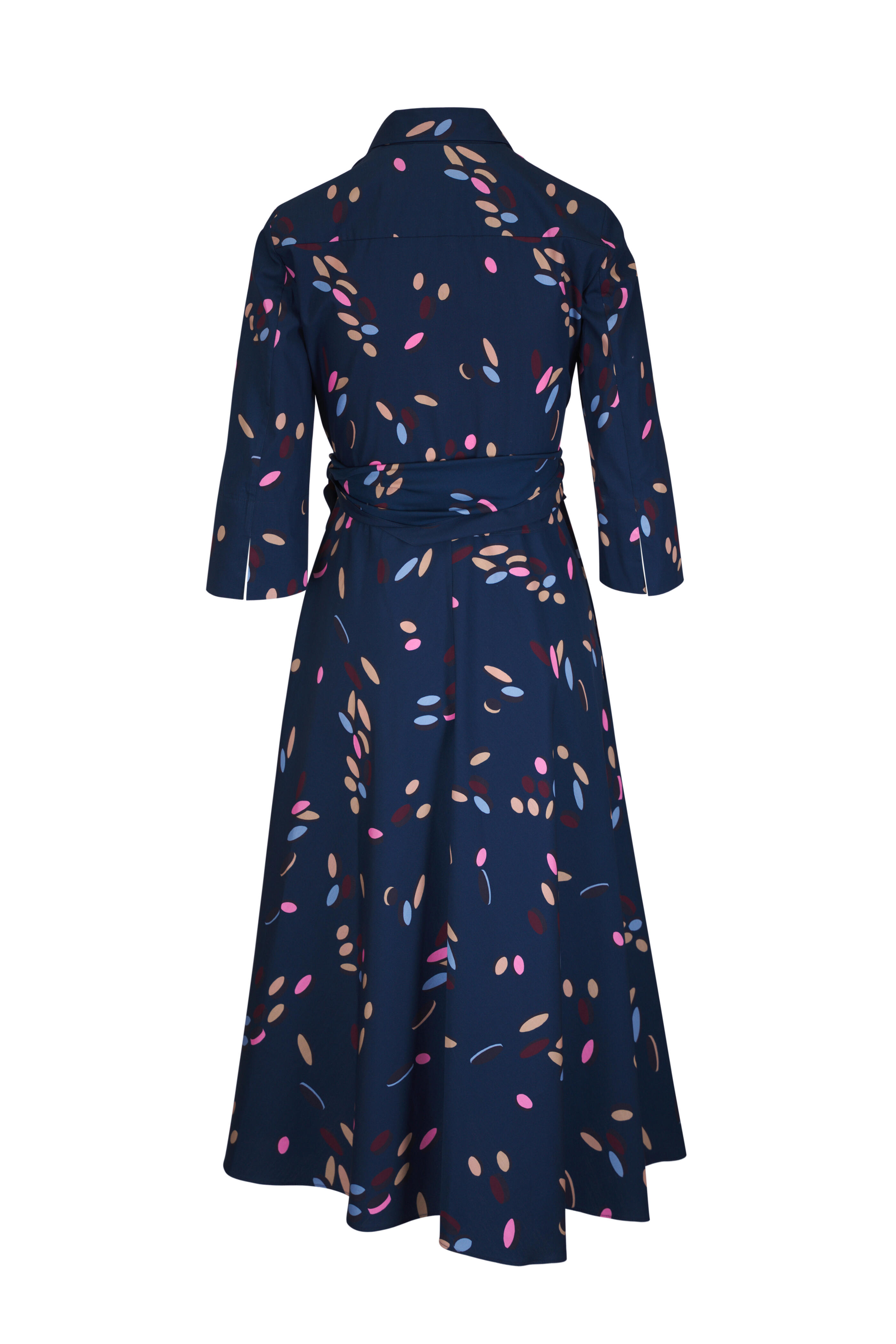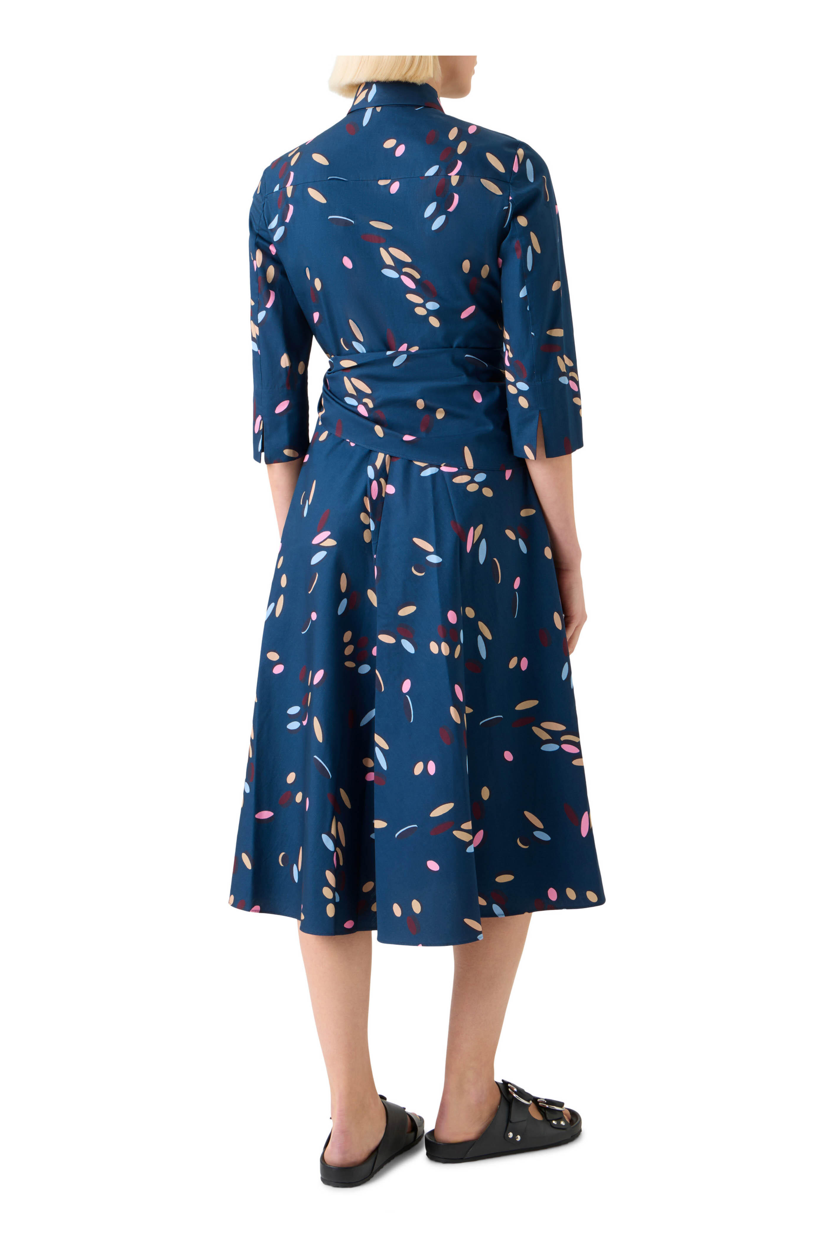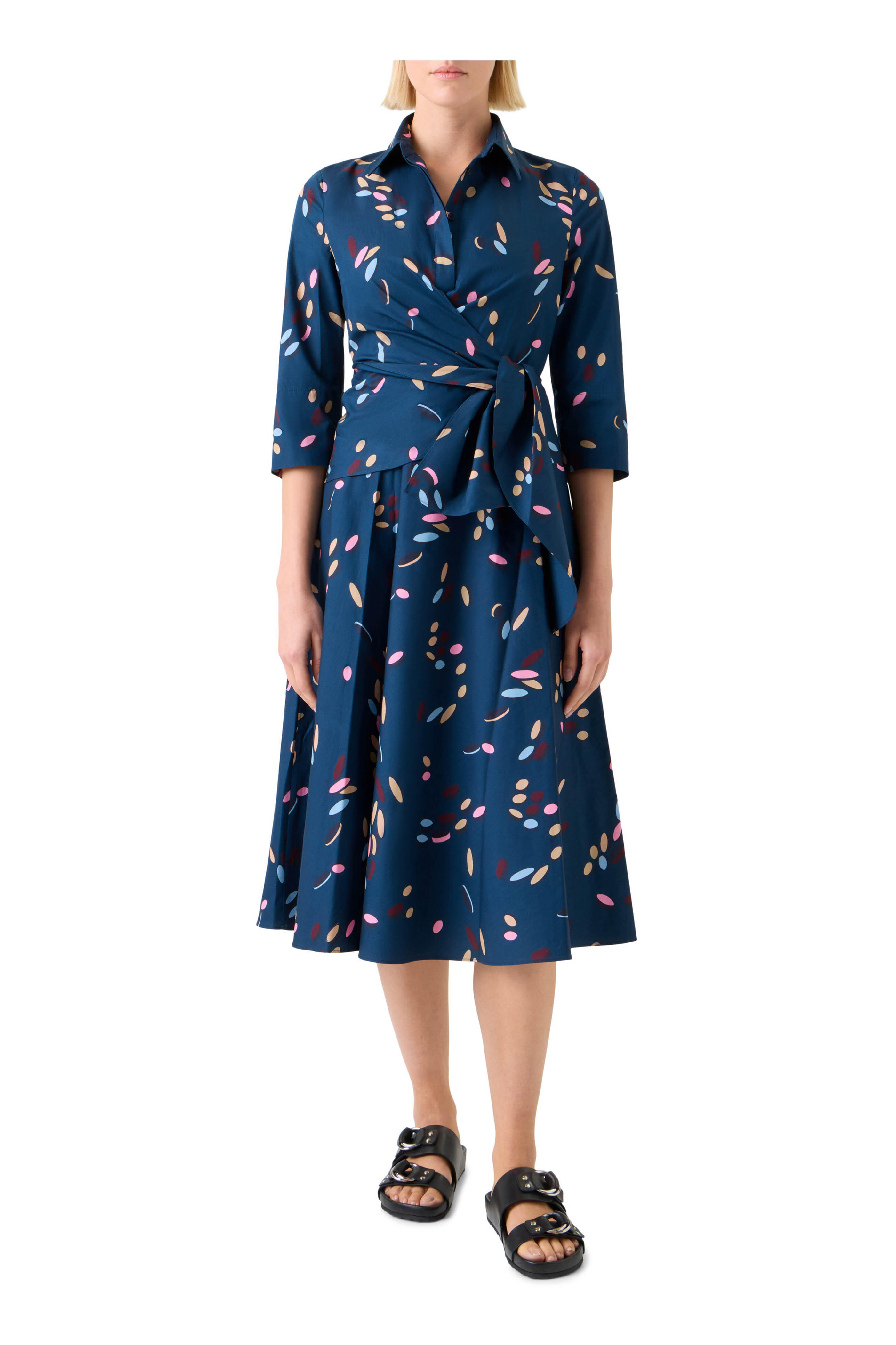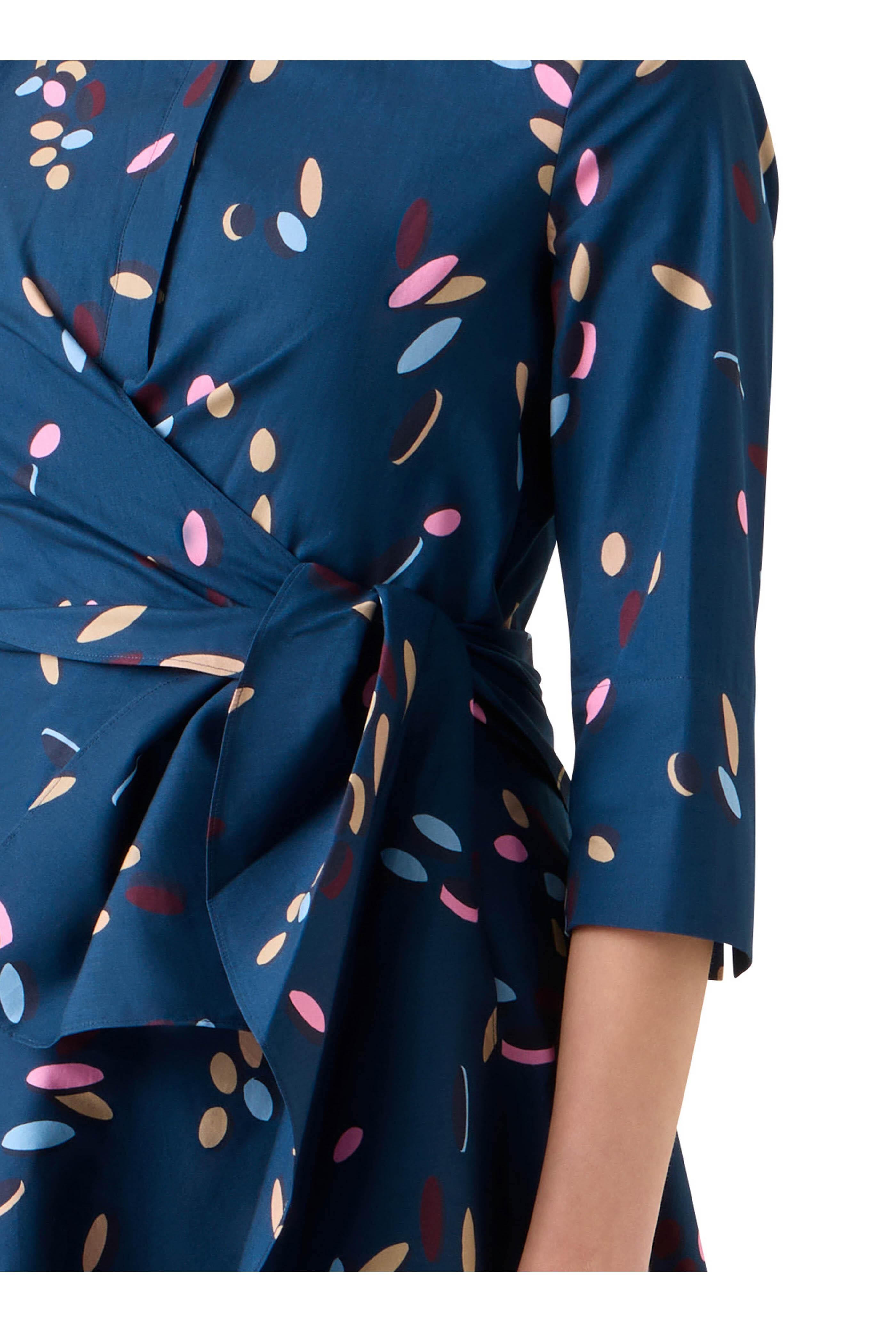 Blue Falling Dots Print Cotton Faux Wrap Dress