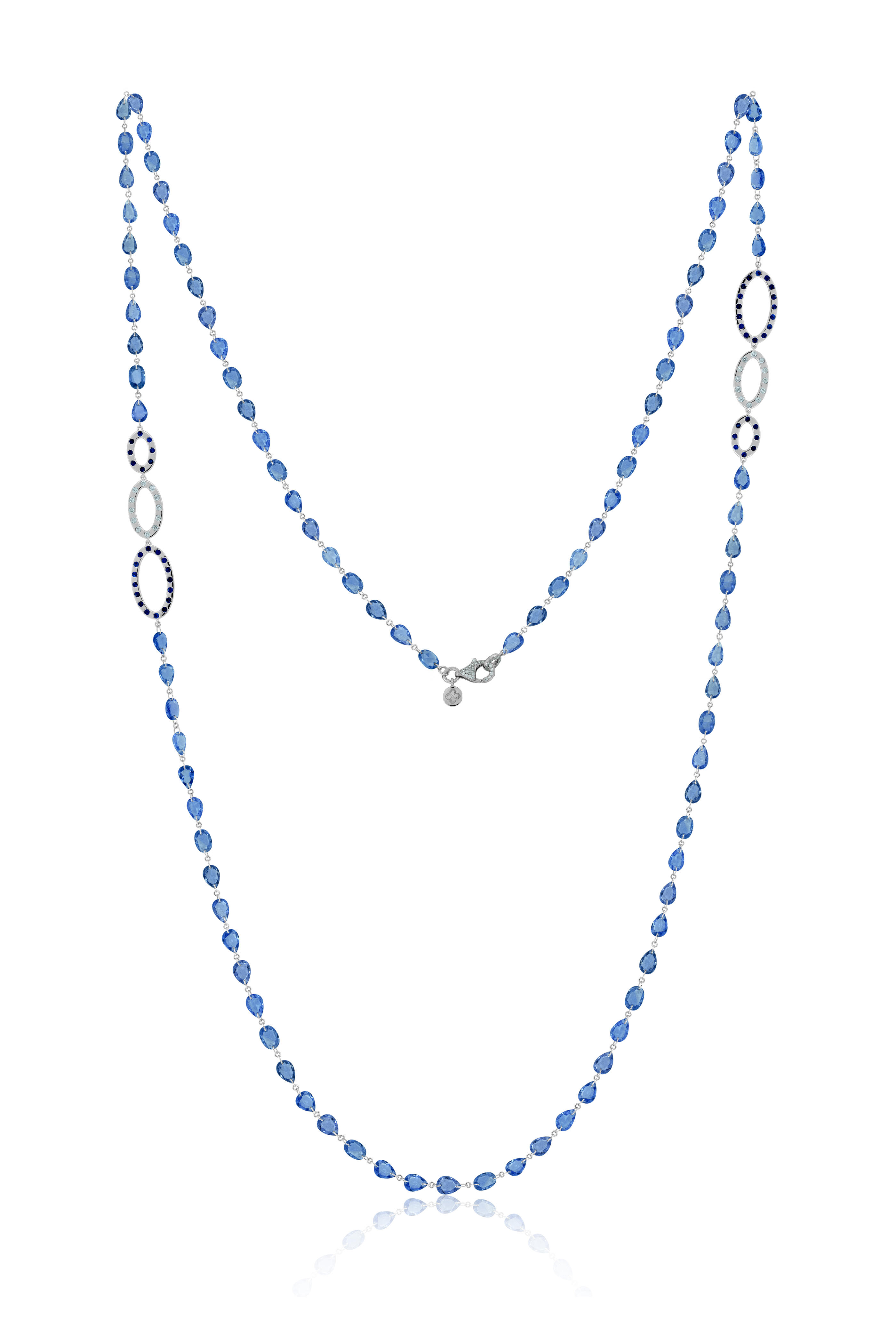 18k White Gold. 38.72 ct Blue Sapphire. 1.02 ct Diamond.