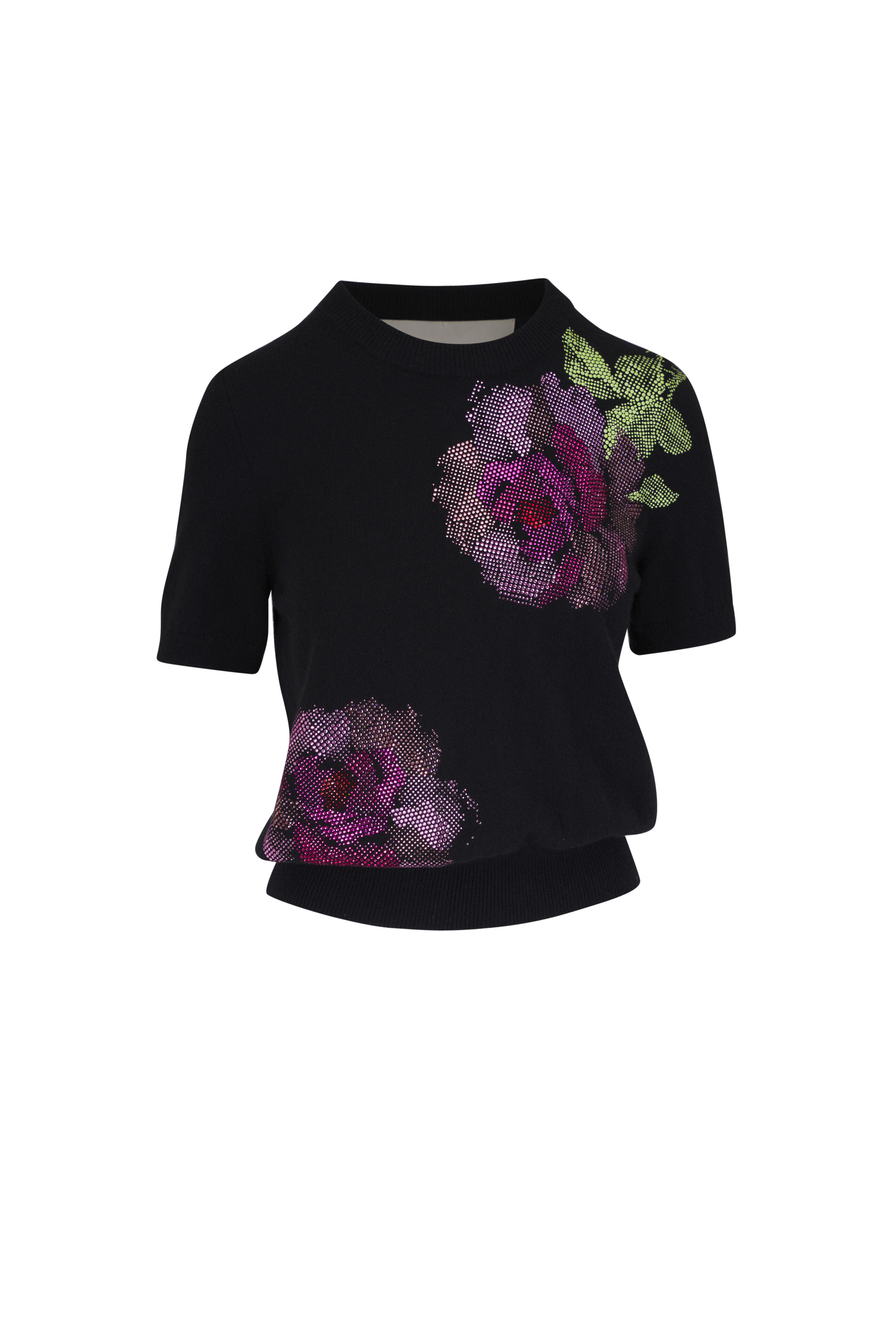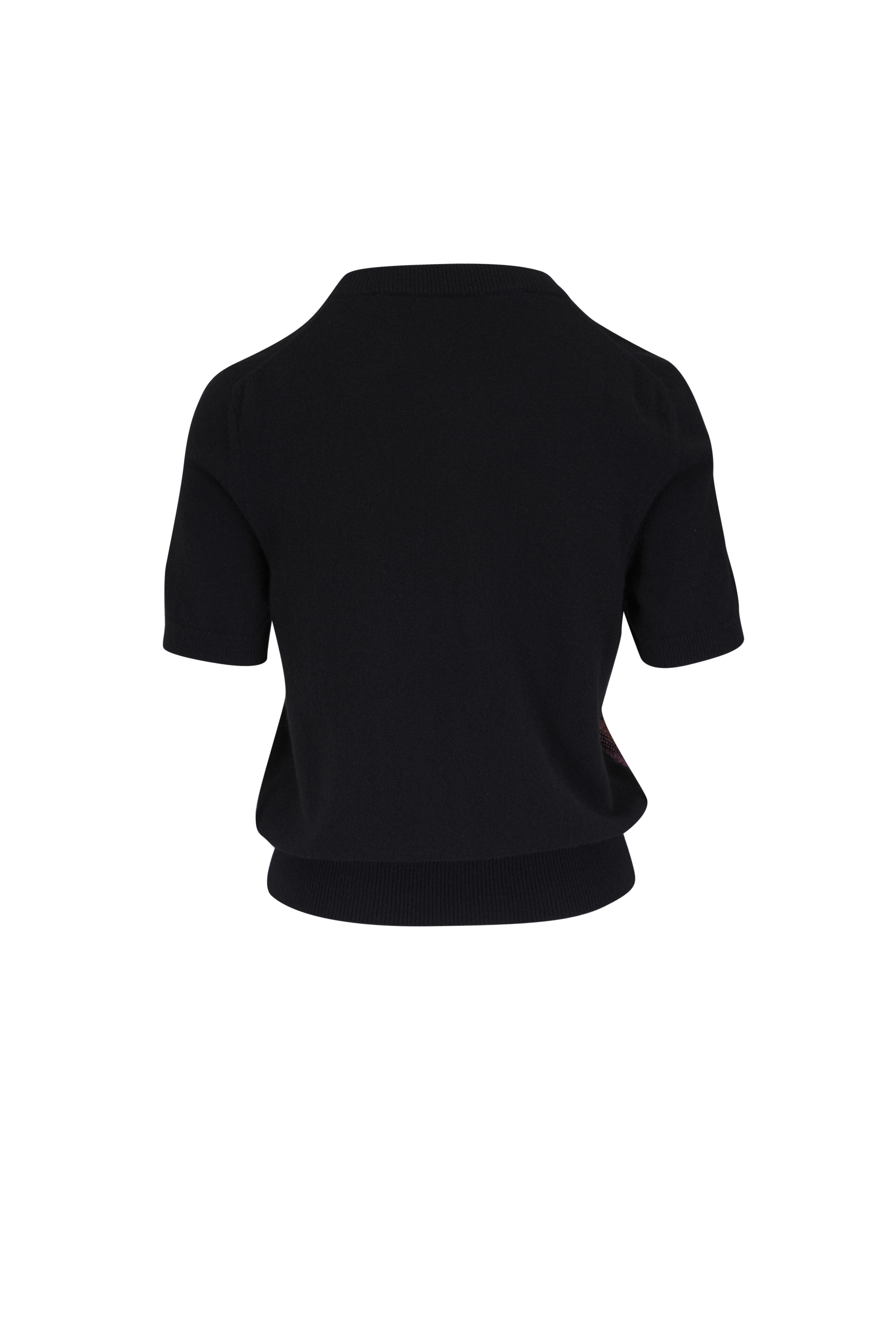 Crew neckline. Ribbed trims. Made in USA. 100% cashmere. Dry clean.