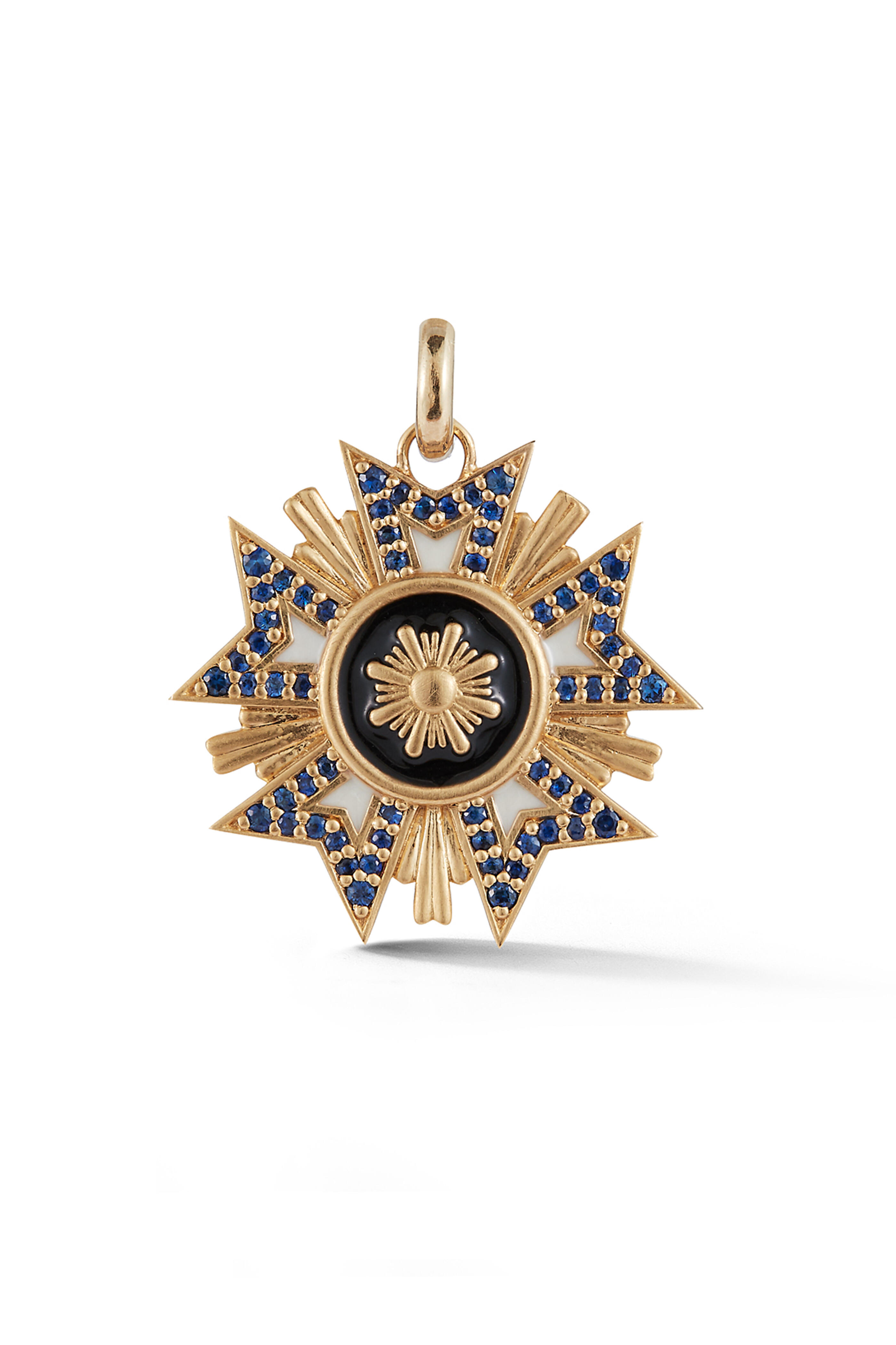 14k Yellow Gold. Blue Sapphire. White/Black Enamel. *Necklace sold separately.