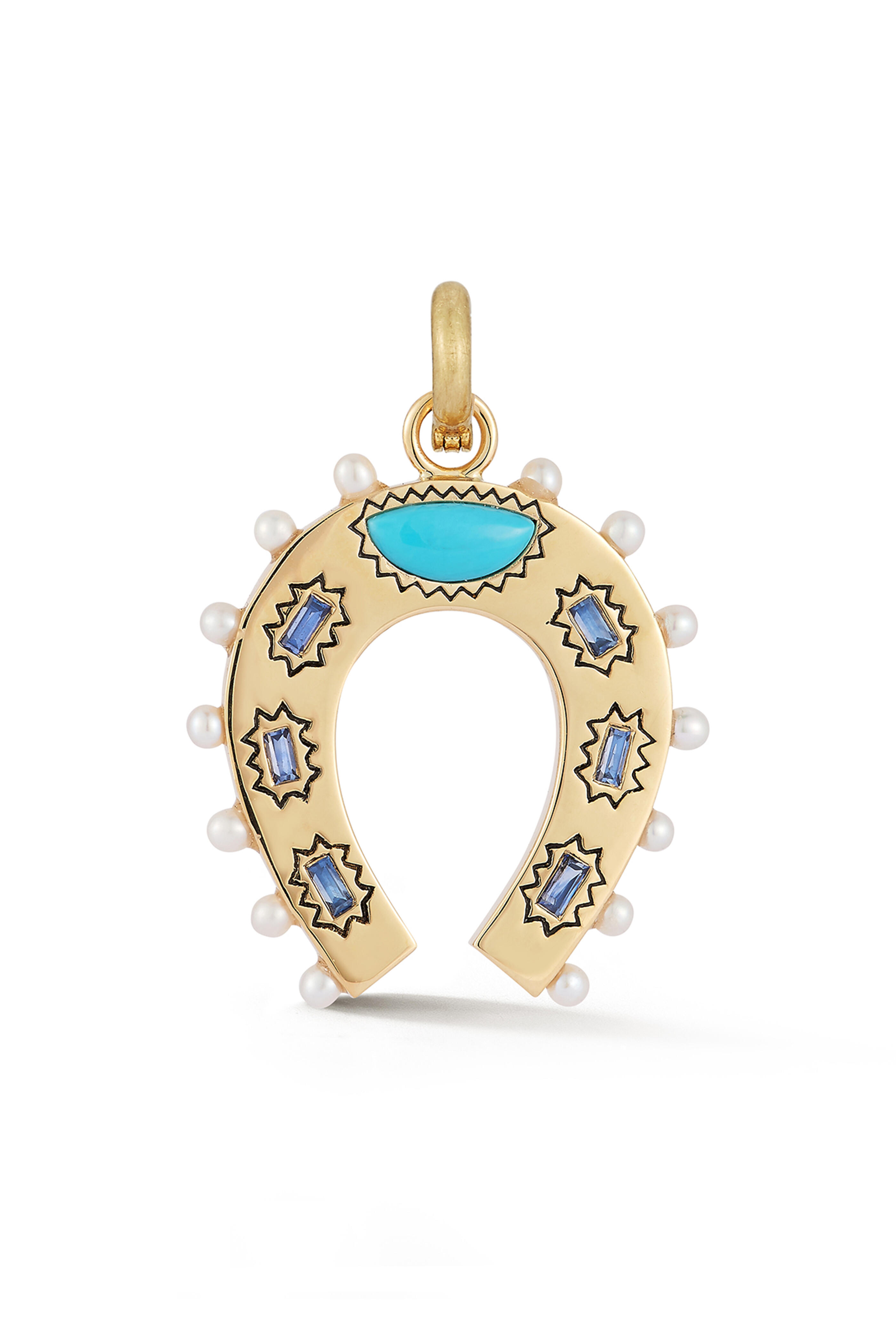 14k Yellow Gold. Turquoise. Blue Sapphire. Pearl. *Necklace sold separately.