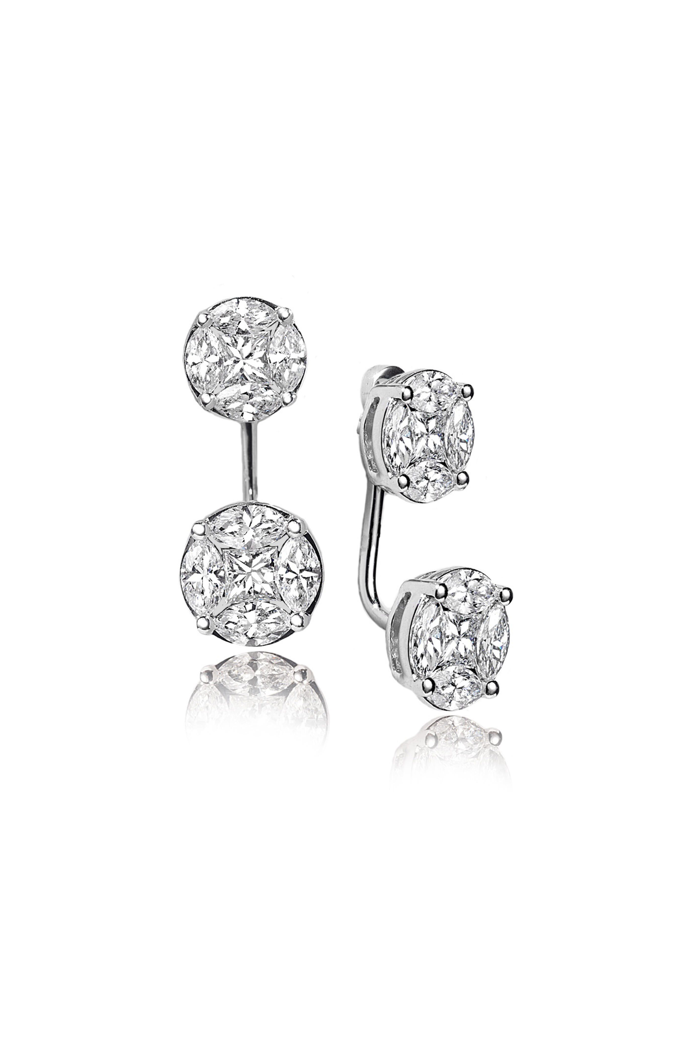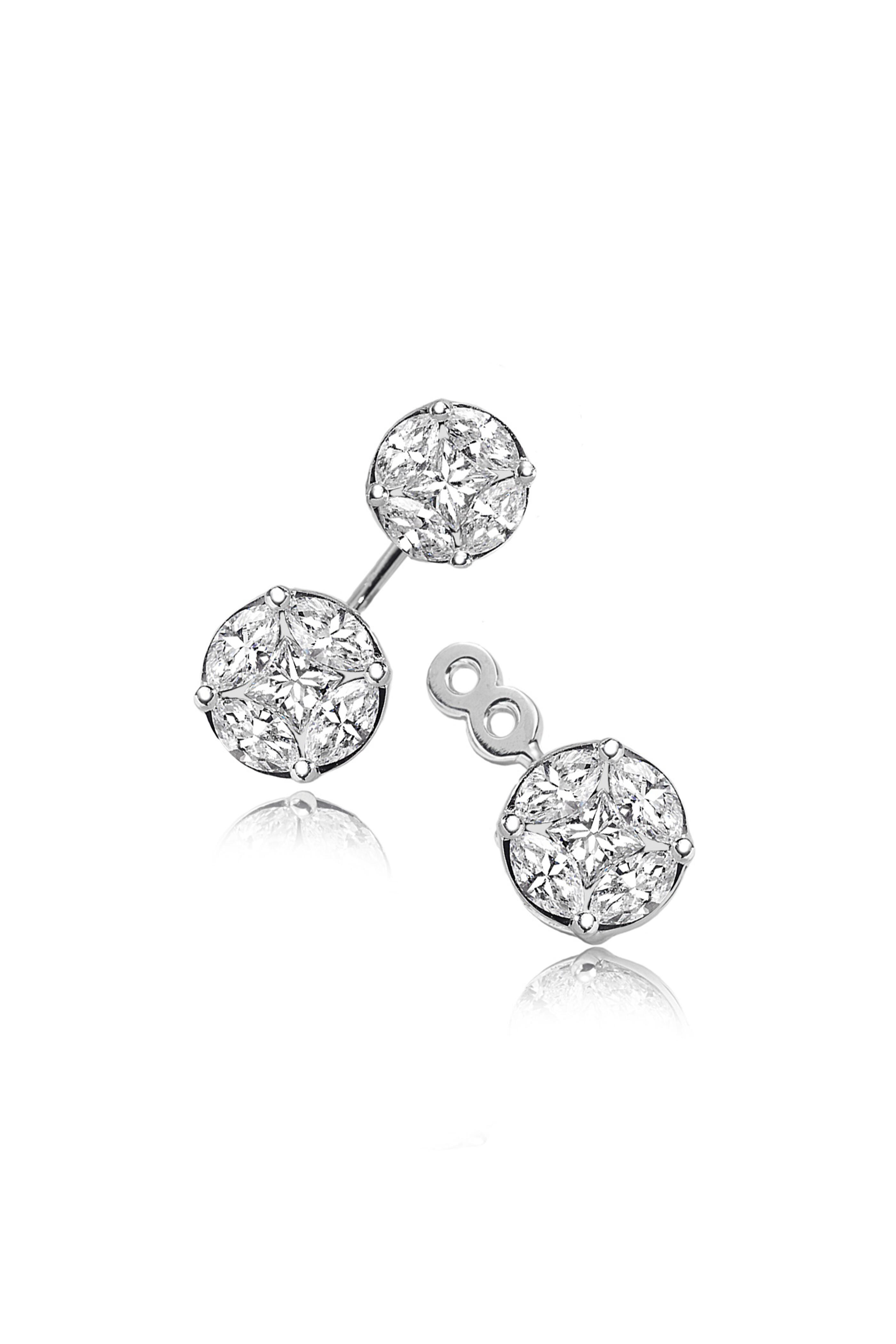 18k White Gold Invisible Round Detach Studs