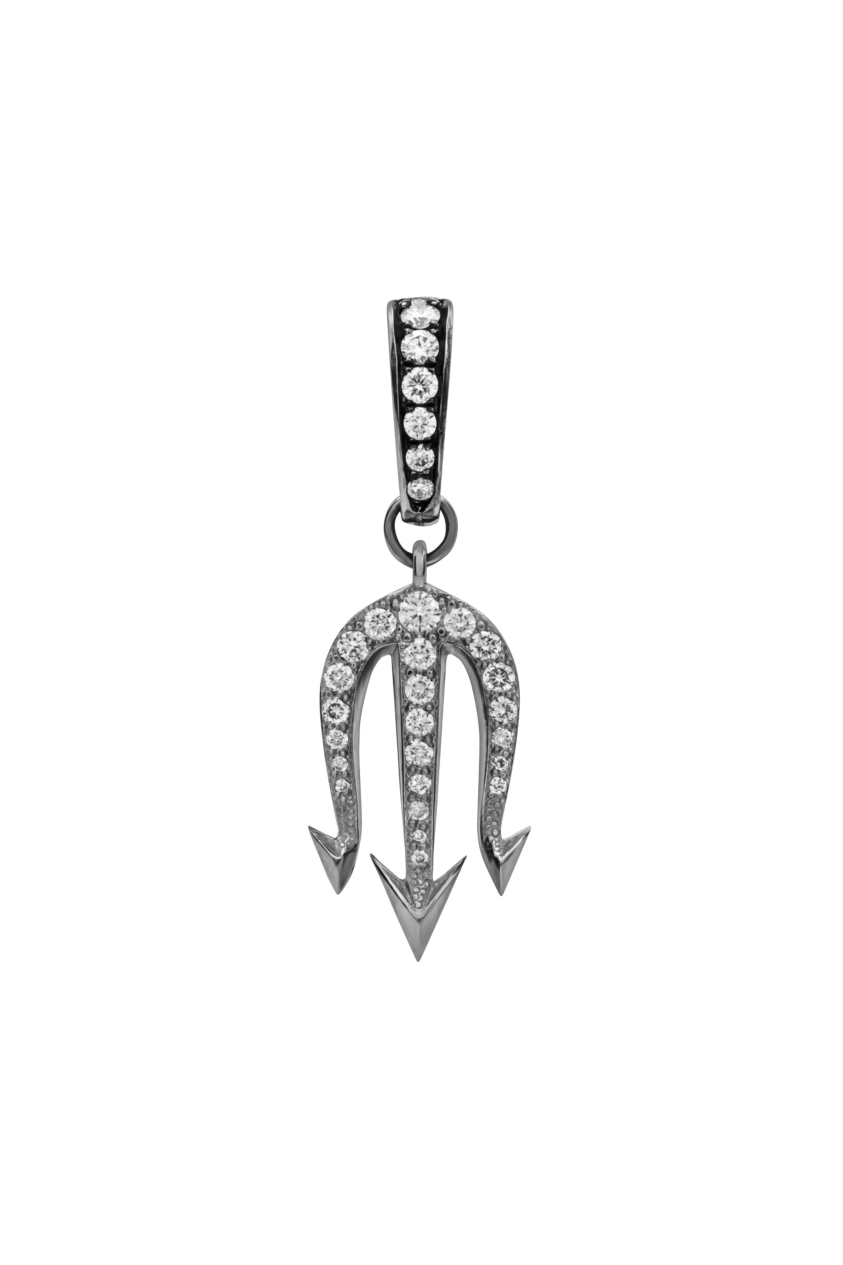 18k White Gold Small Diamond Trident Pendant