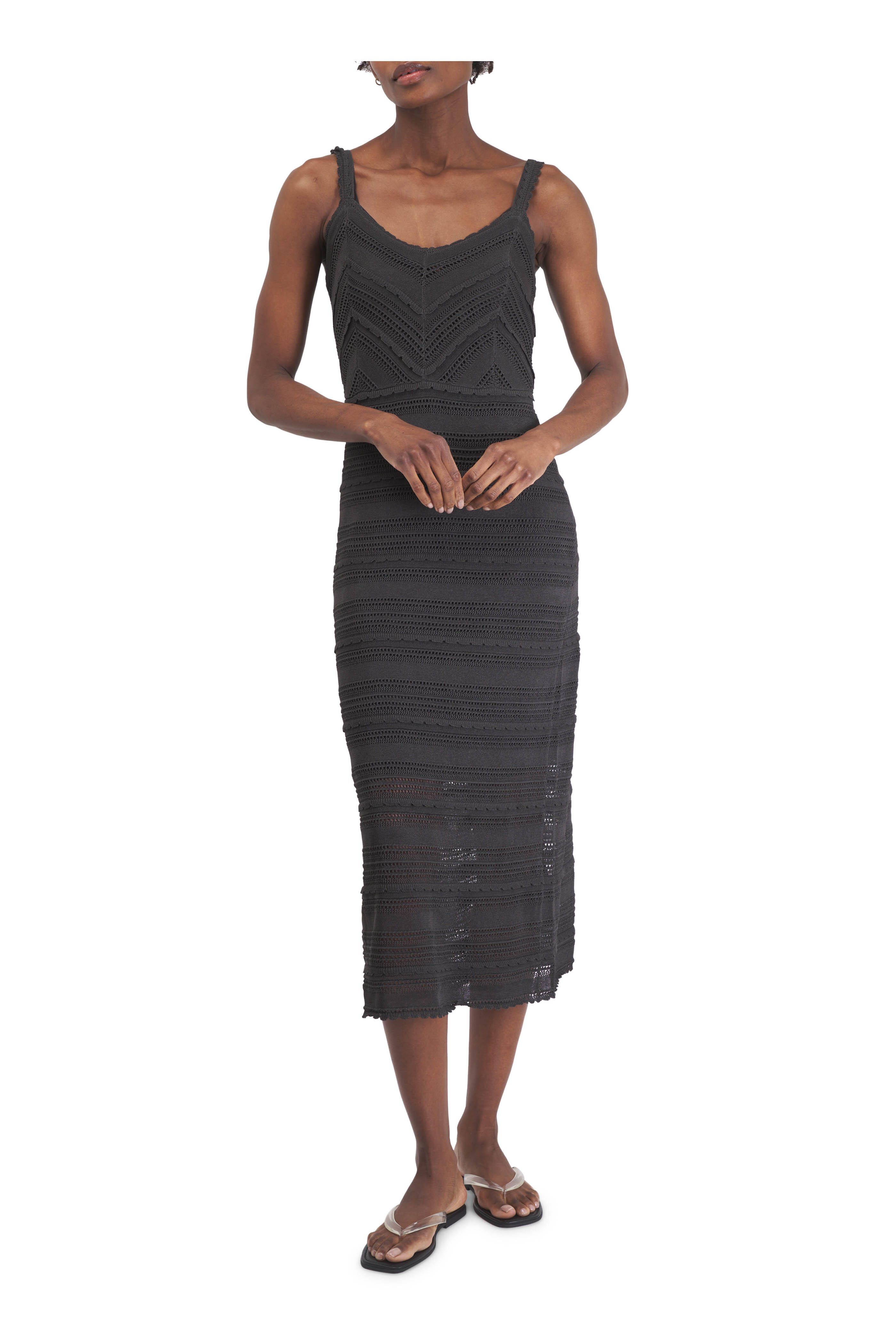 V-neckline with lace trim. Slip on style. Included slip. Tiered scalloped edging throughout. Imported. Approximately 54" shoulder to hem (measurements taken from size XS). 58% paper yarn, 42% polyester; slip: 100% cotton. Dry clean.