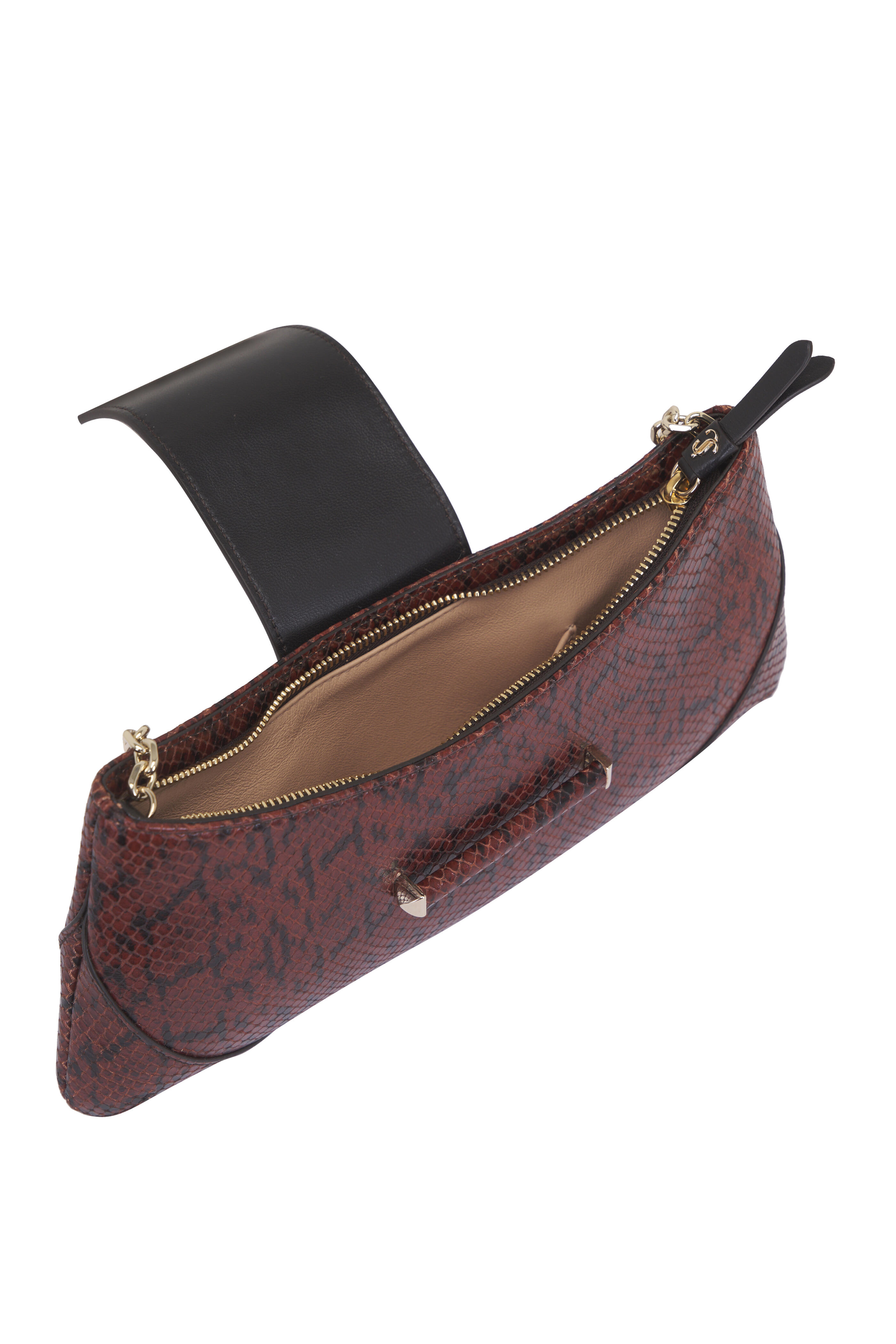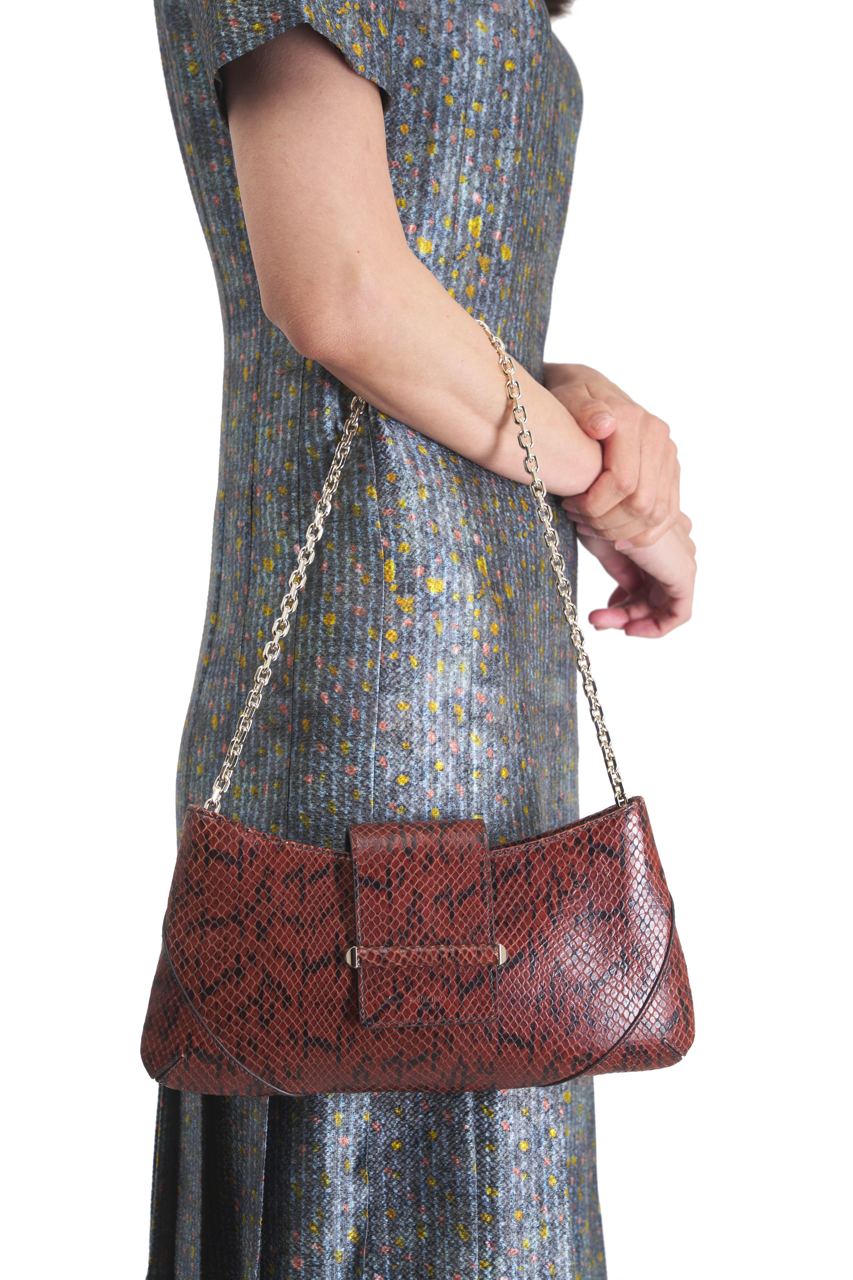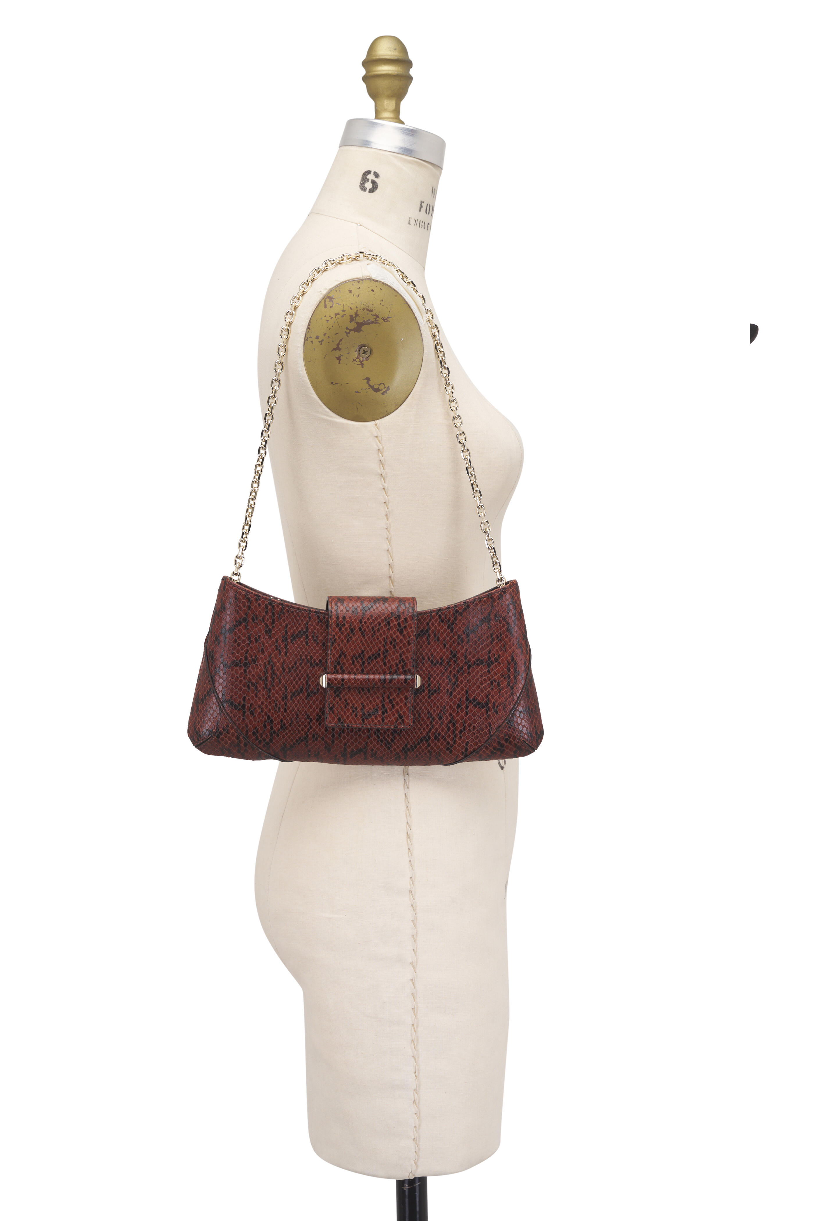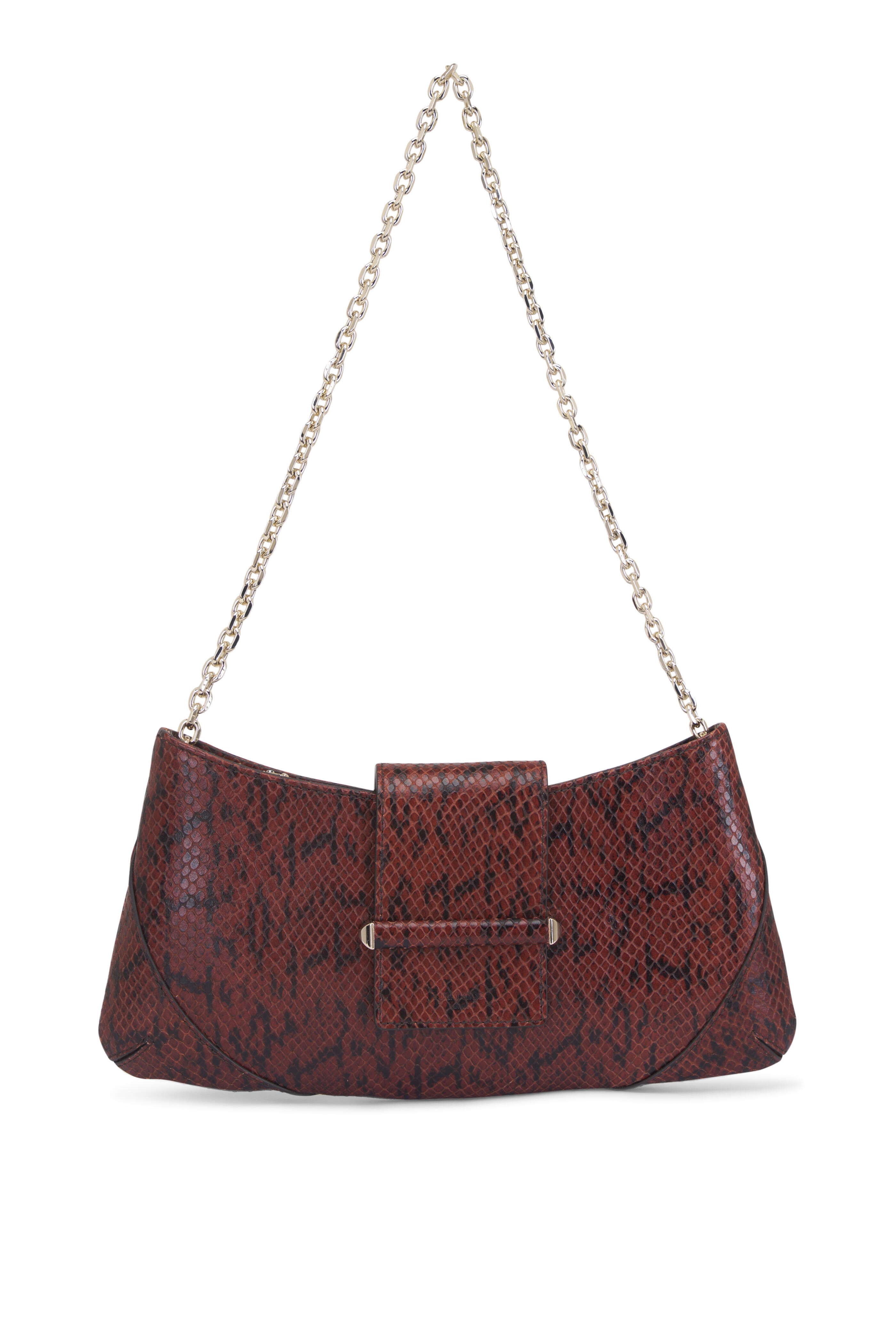 Bar Slim Brown & Gold Leather Chain Clutch