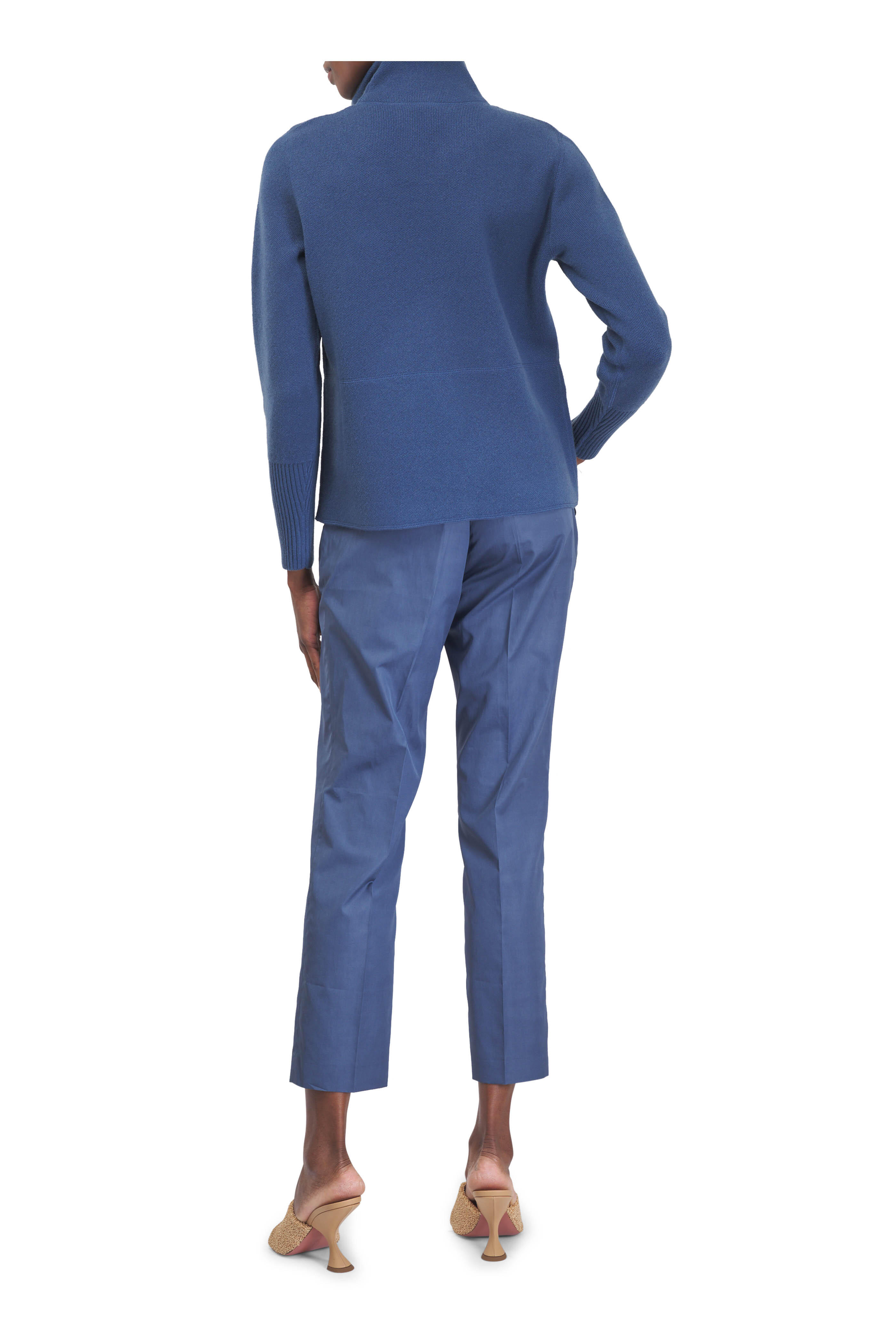 Zip fly with double hook-and-eye closure. Banded waist; belt loops. Side angle pockets; single back welt pocket. Imported. Inseam: 30". Rise: 11". Measurements taken from a size 6.. 100% cotton. Dry clean.