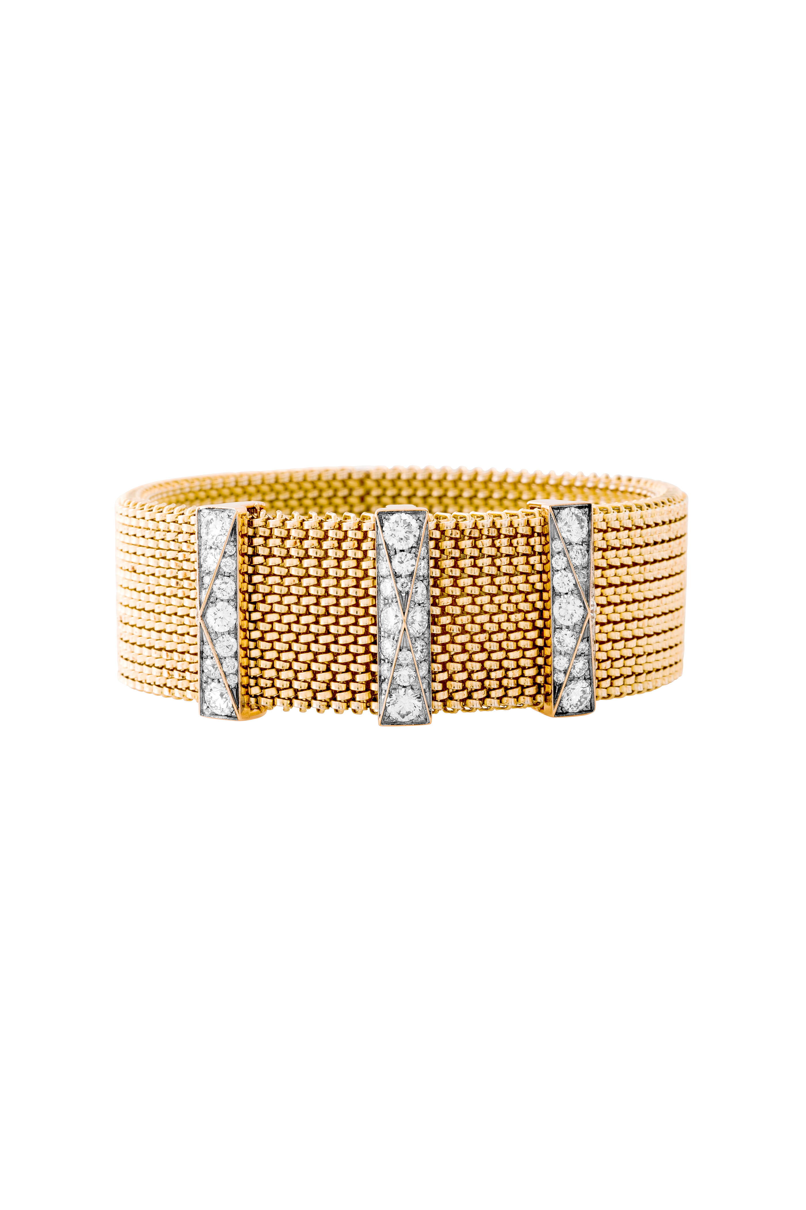 18k Yellow Gold. 2.18 ct Diamond. Steel Mesh.