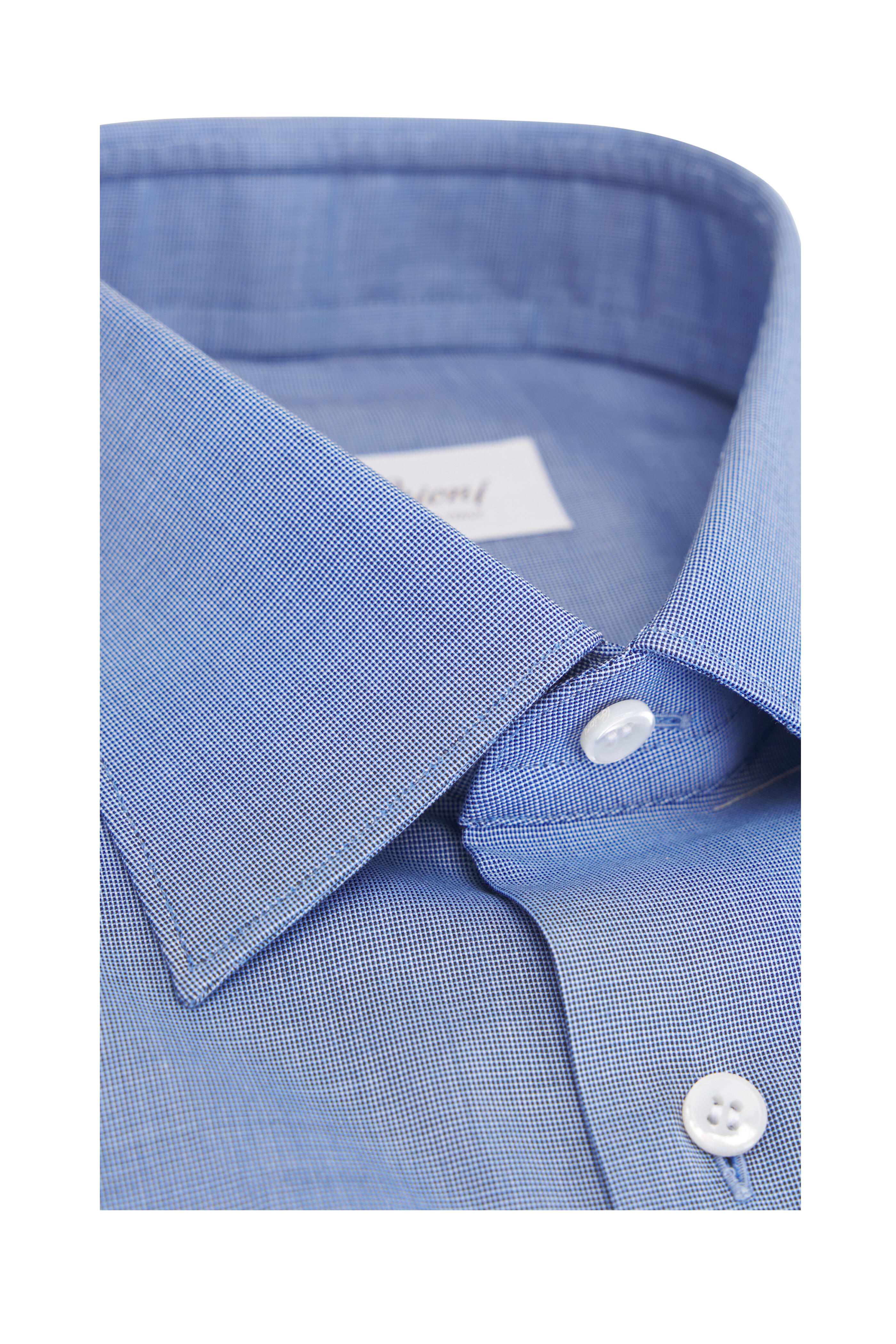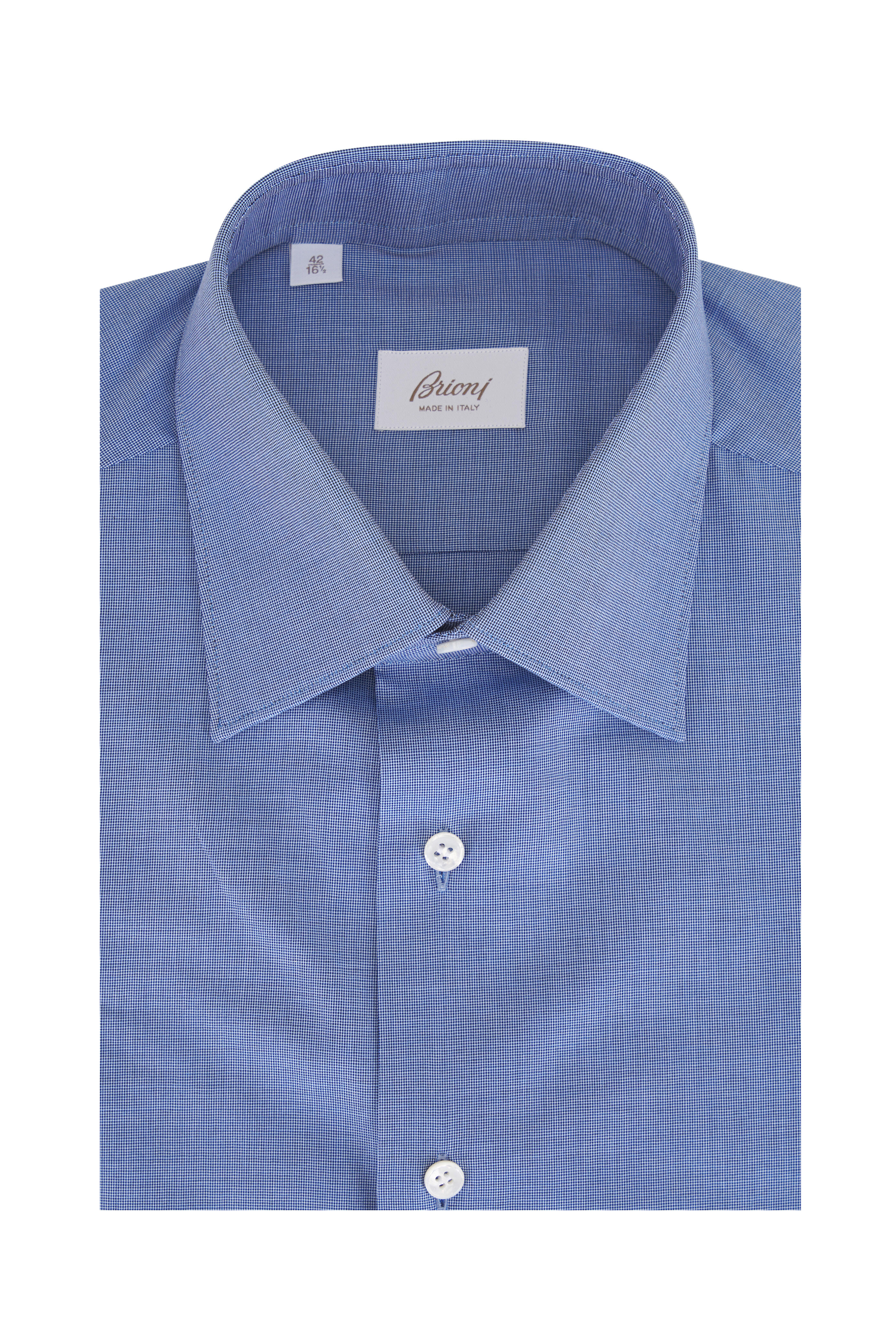 Spread collar. Front button placket. Single button cuffs. Made in Italy. 100% cotton. Machine wash.
