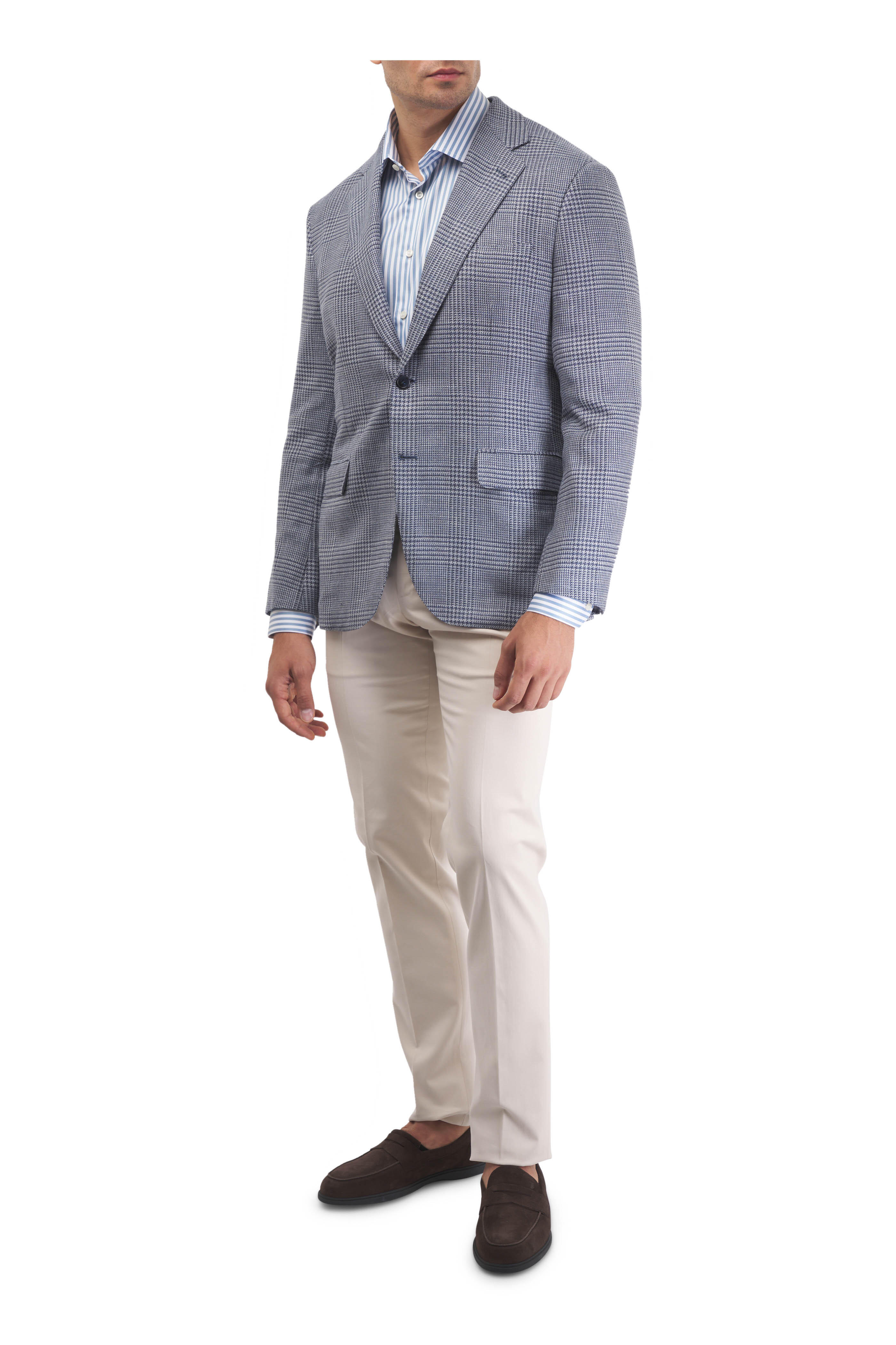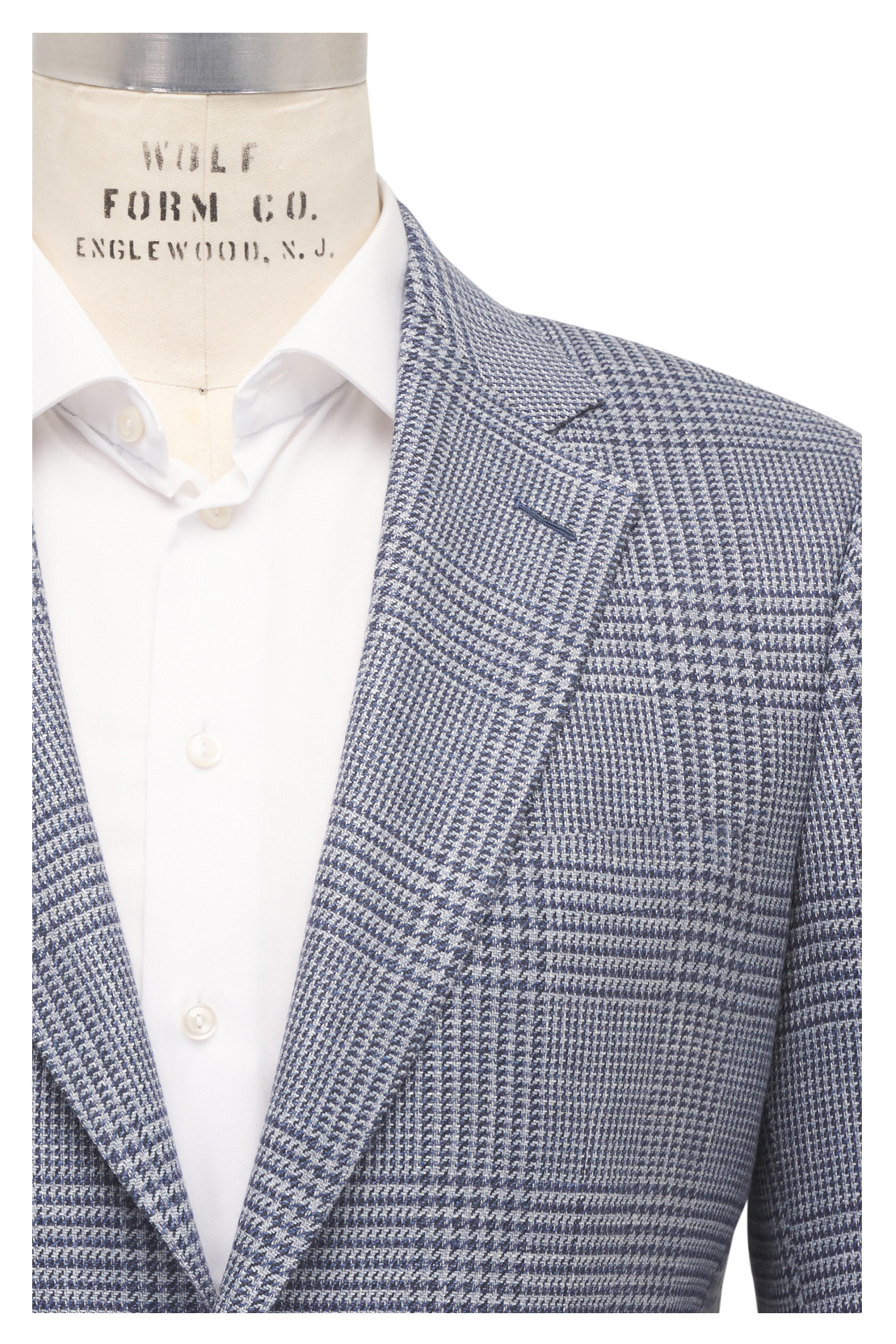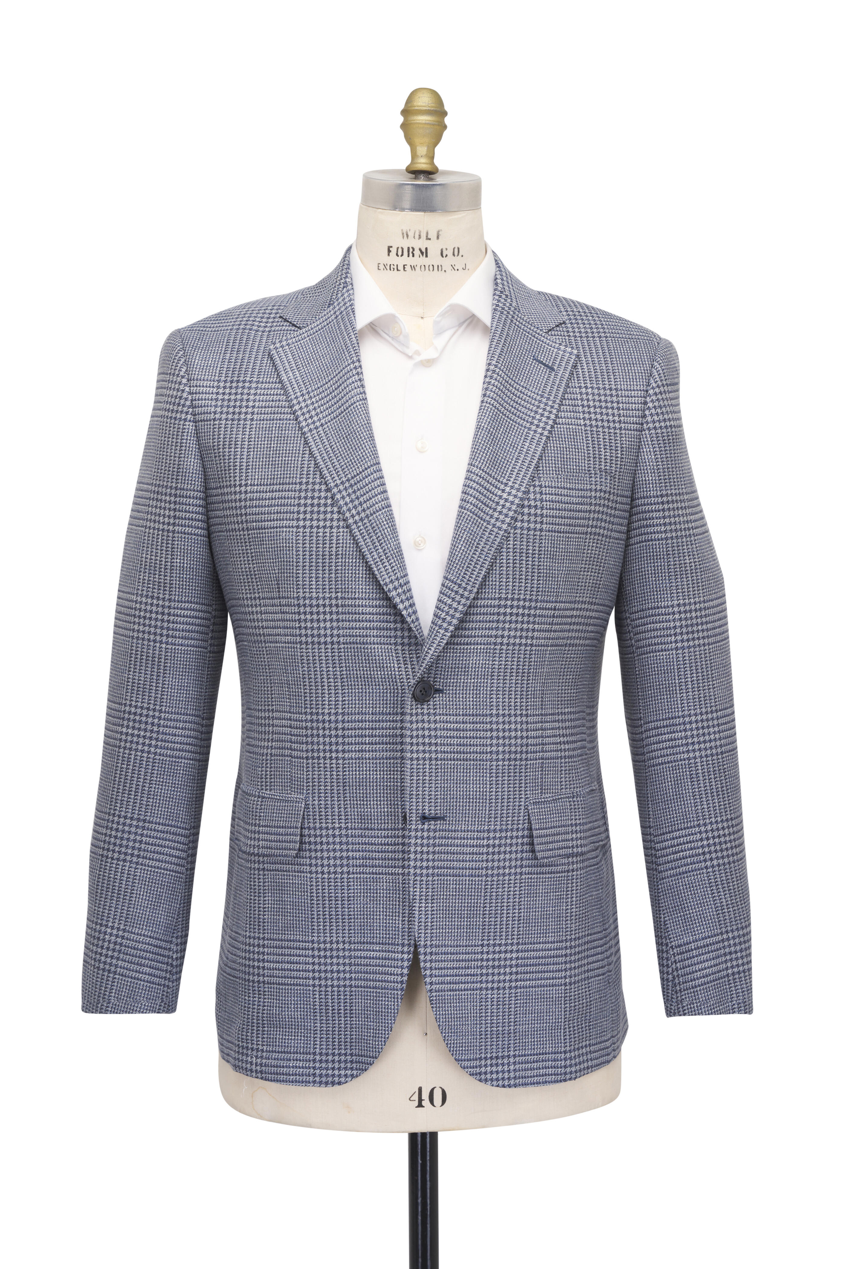 Gray & Blue Plaid Wool, Silk & Linen Sportcoat