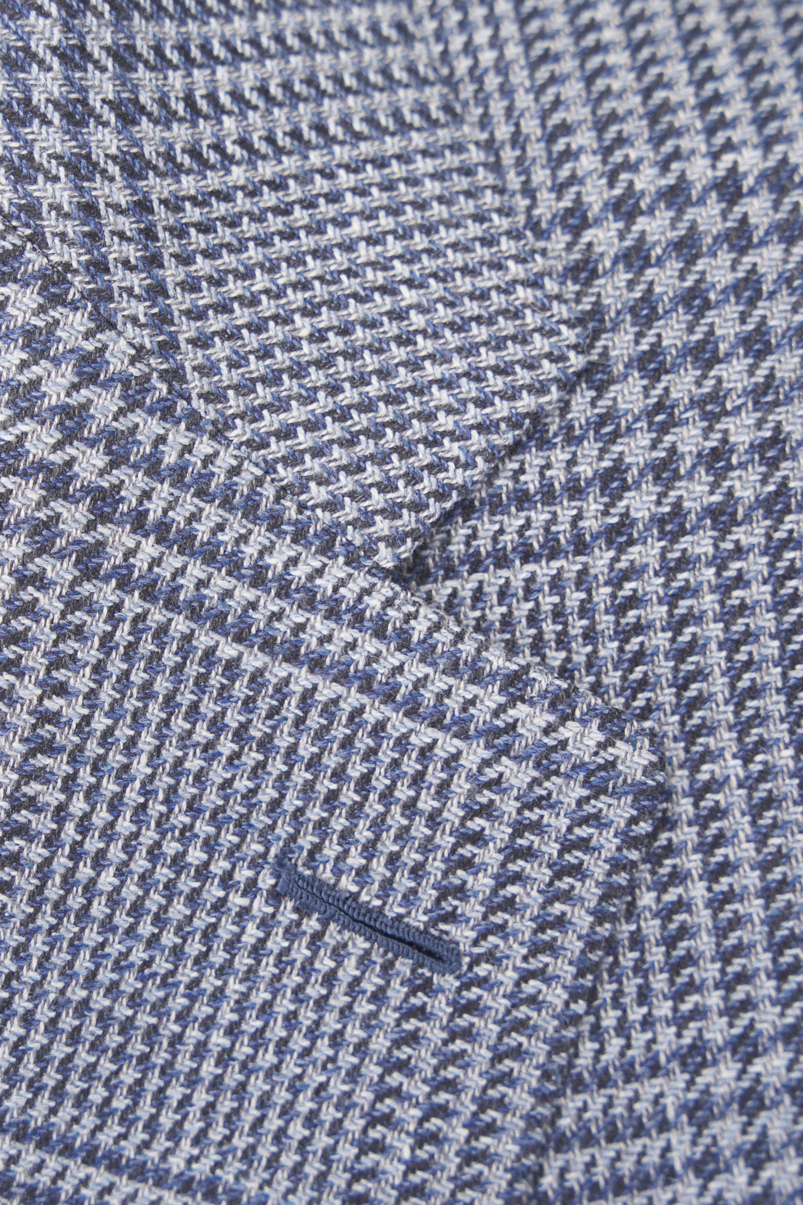 Notched lapels. Two button closure. Chest welt pocket, lower flap pockets, interior slip pockets. Double vent. Made in Italy. Shoulder to hem 29" (size 42 R). 62% wool, 20% silk, 17% linen, 1% elastane; Unlined. Dry clean.