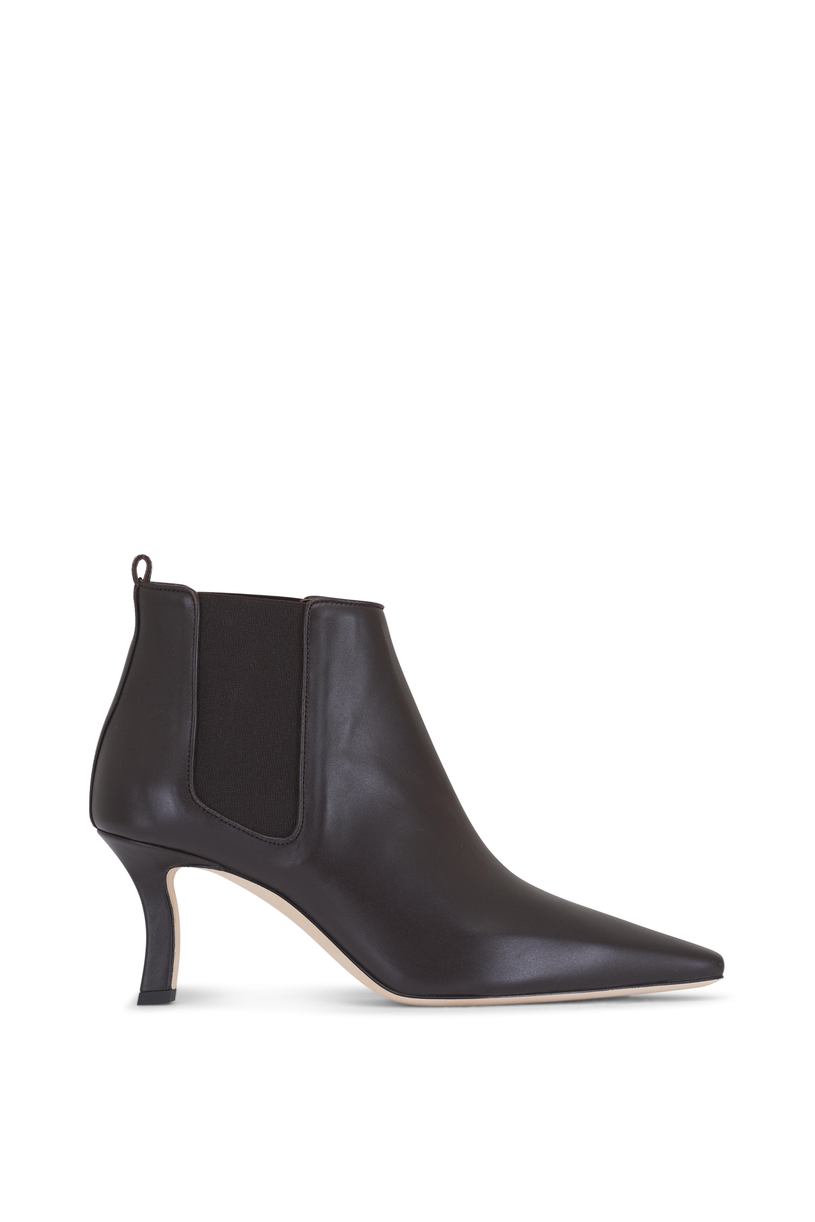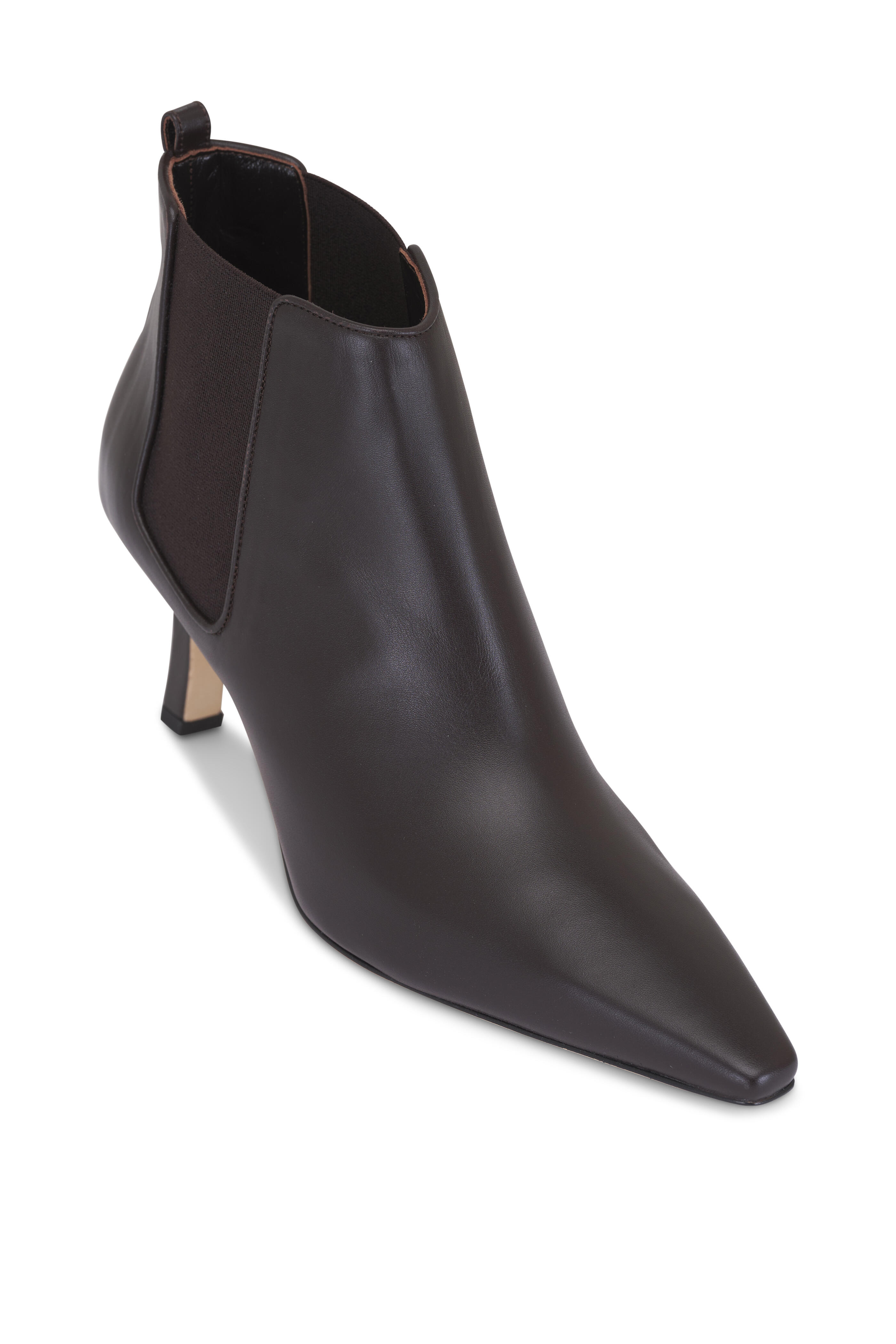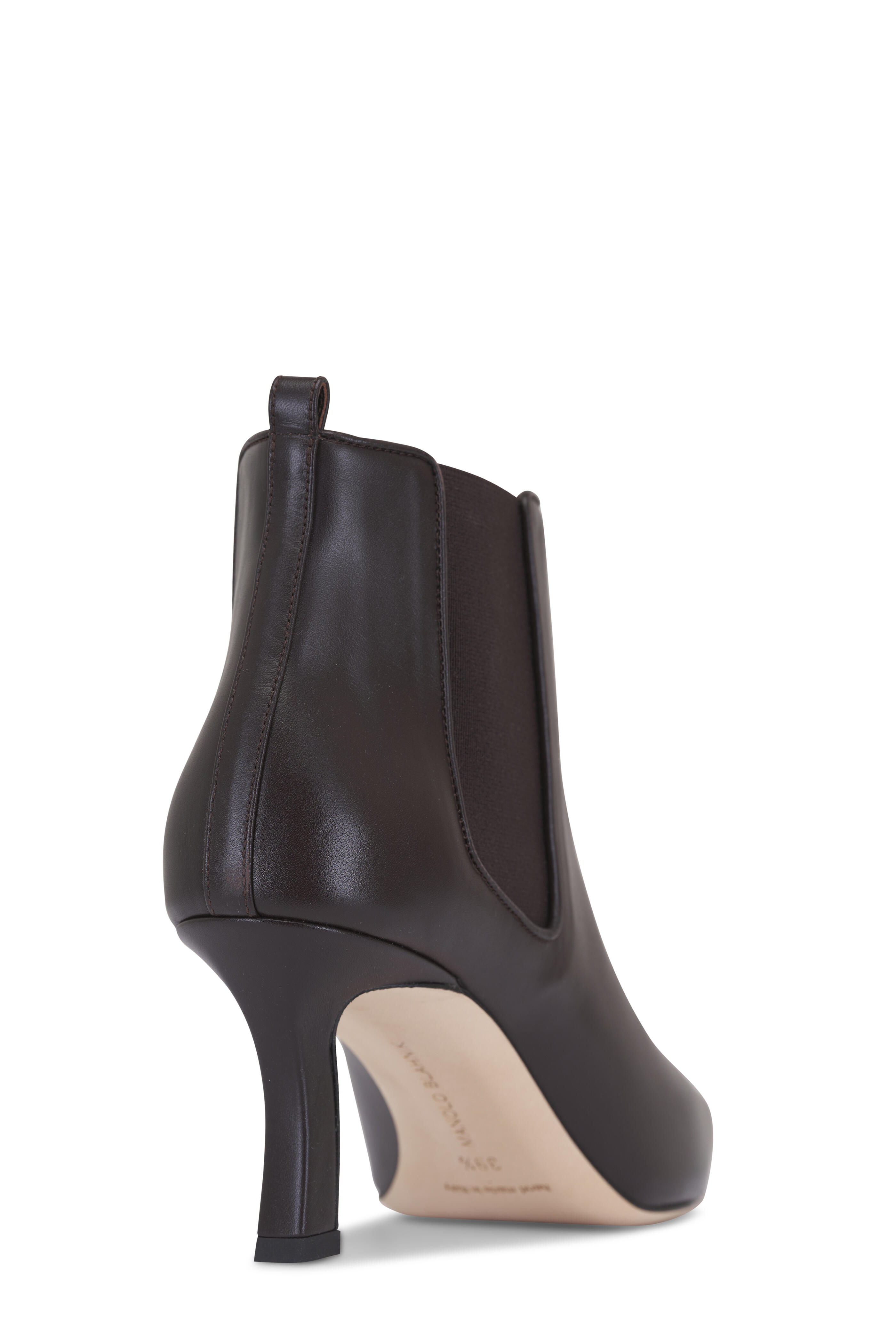 Leather upper. Tapered, square toe. Pull-on style with back pull tab. Elasticized side gores. Self-covered heel. Leather lining and insole. Leather sole. Made in Italy. Heel measurement: 70mm.