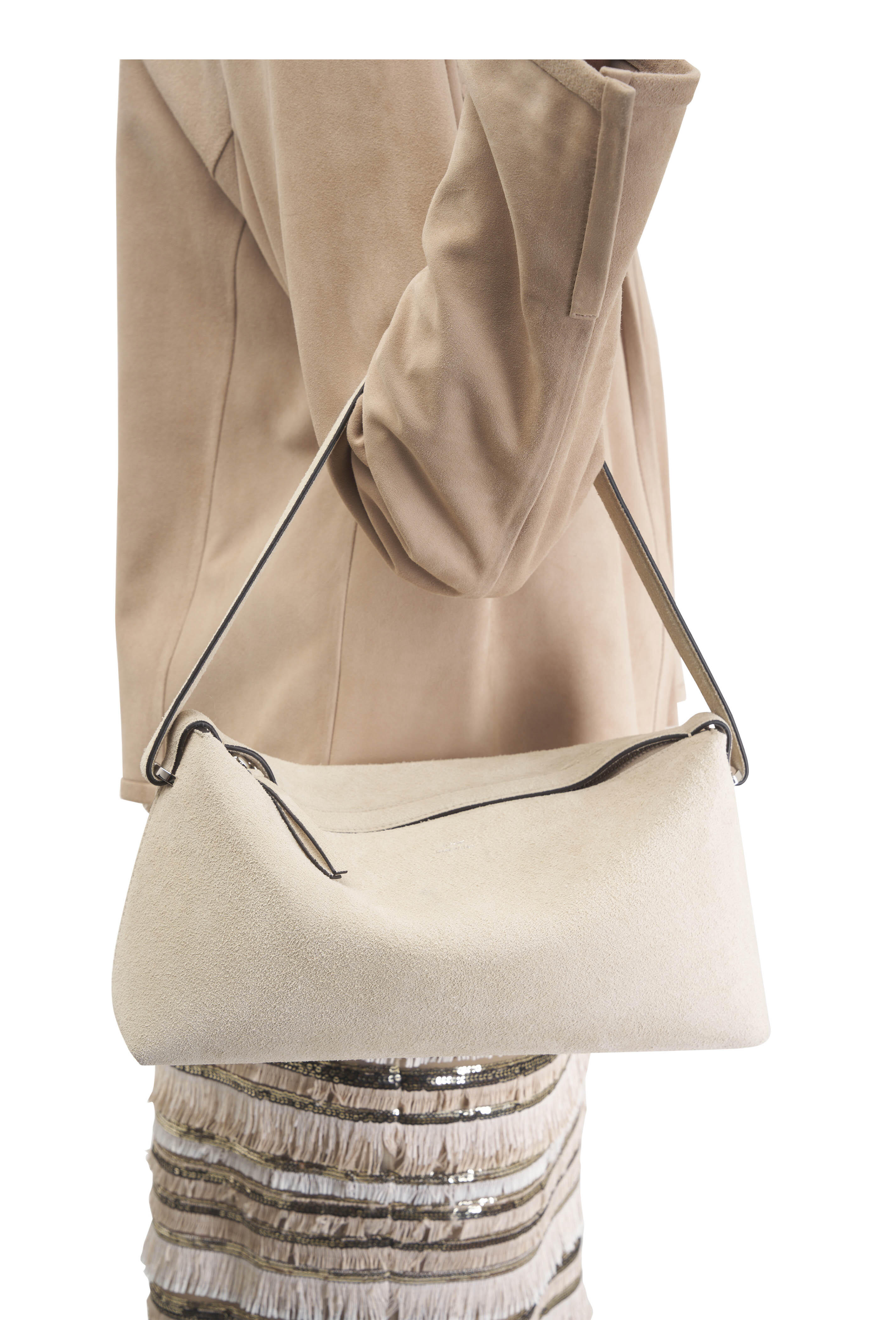 Pearl Belted Suede Clutch