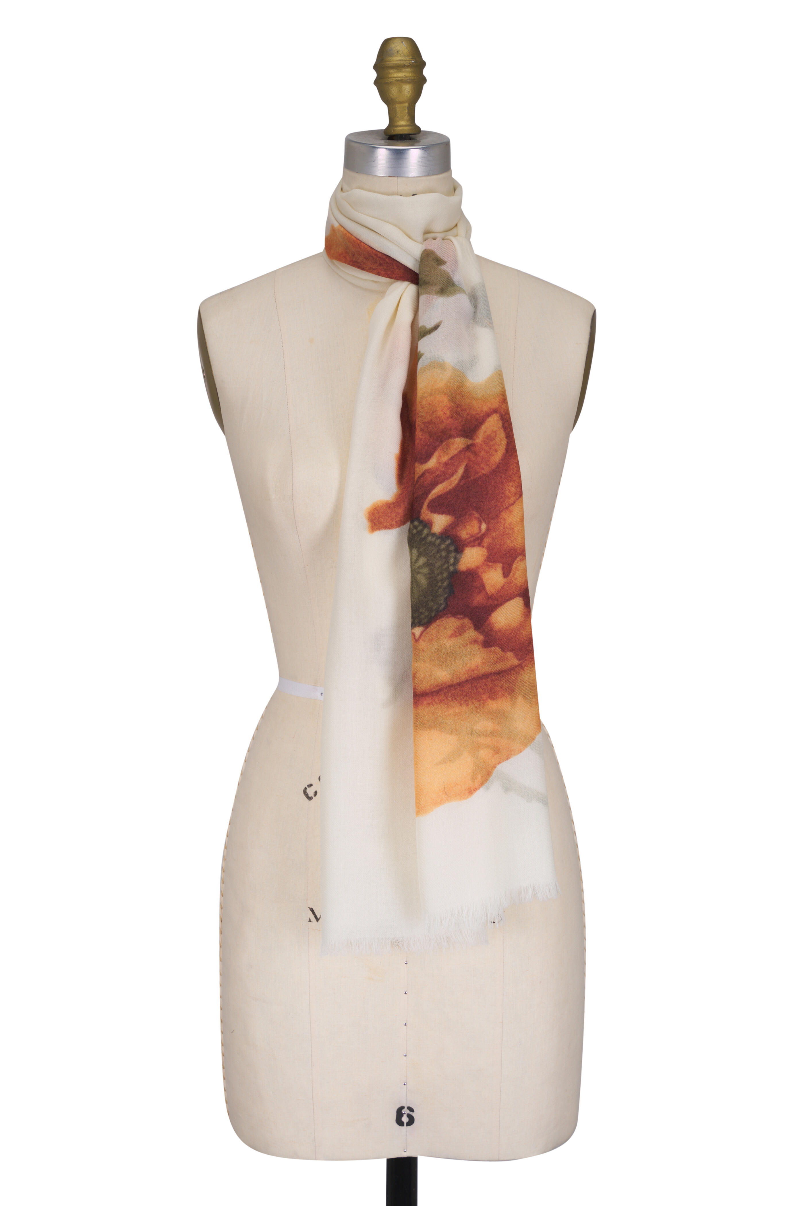 Ecru Large Anemone Print Cashmere Scarf