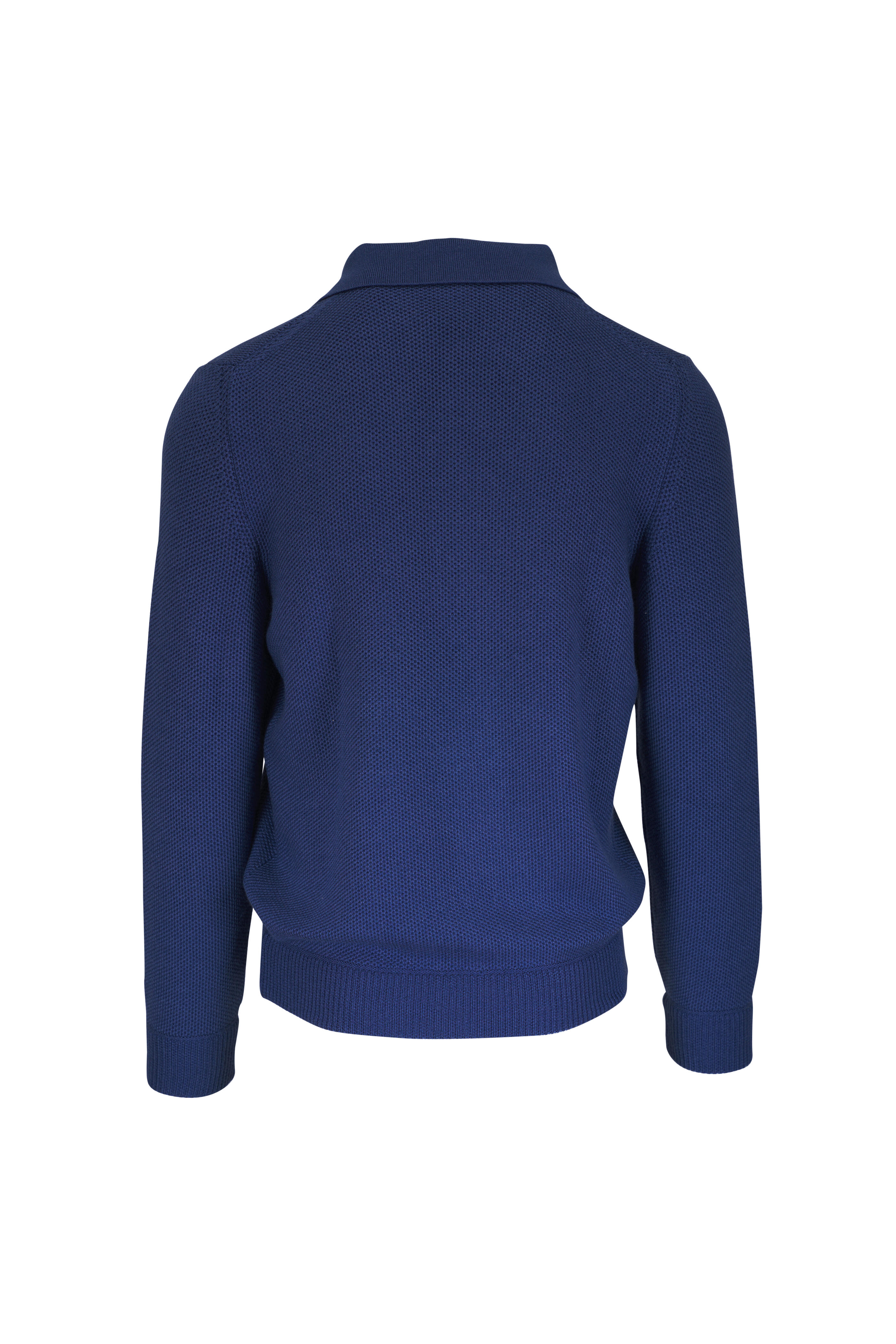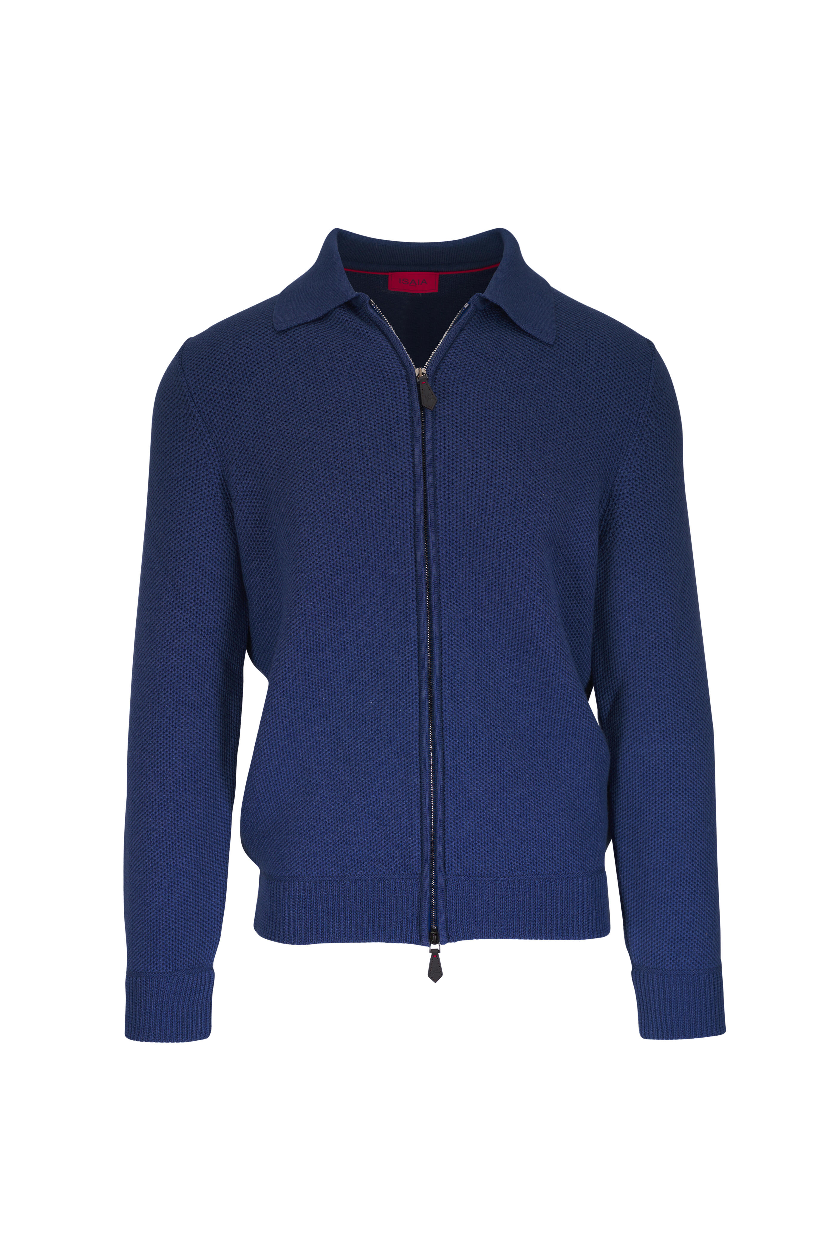 • Isaia - Blue Wool, Silk & Cashmere Full Zip Sweater