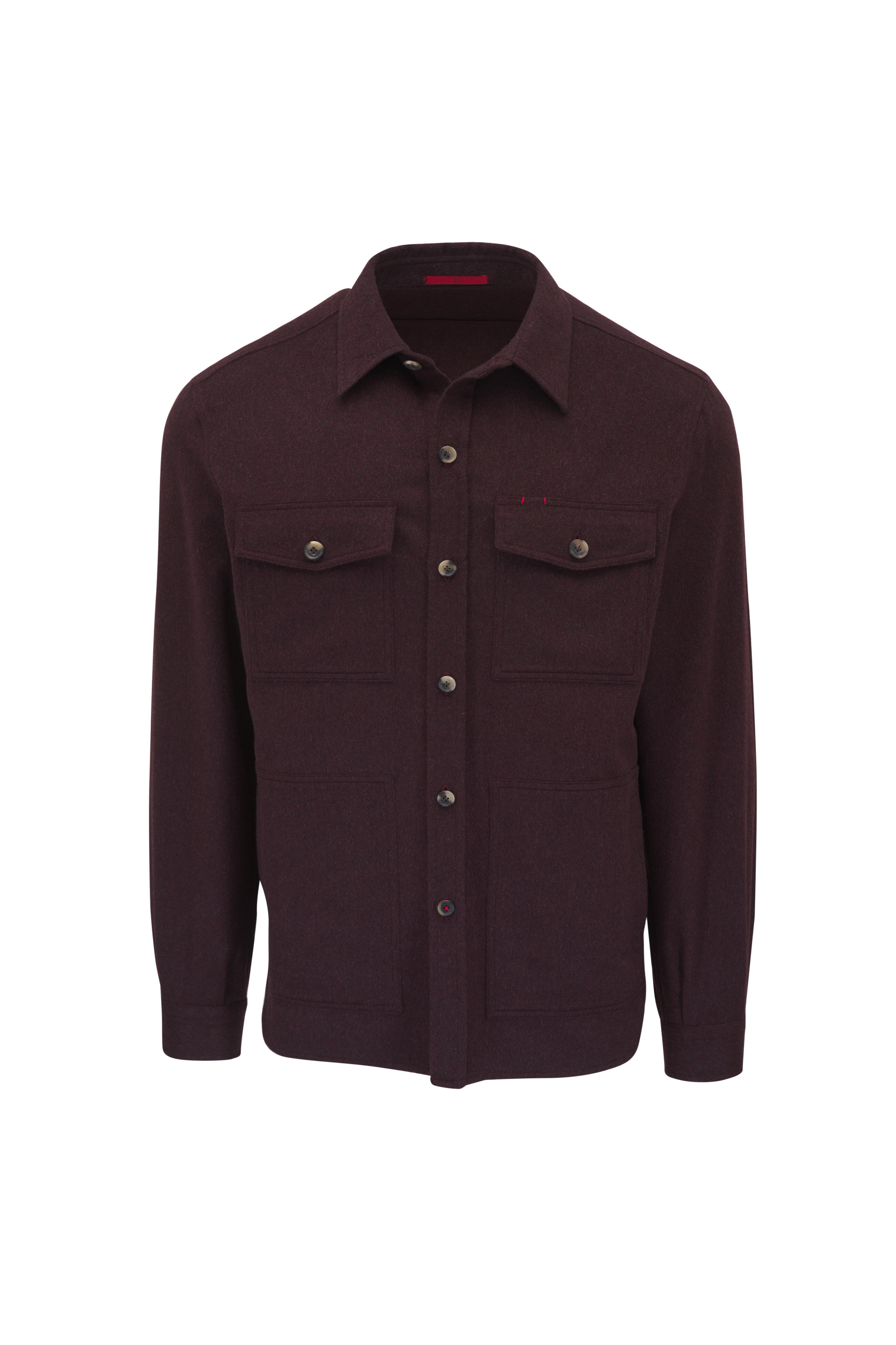 Pointed collar. Front button closure. Chest buttoned patch pockets: side slip pockets. Single button cuffs. Made in Italy. 100% cashmere. Dry clean.