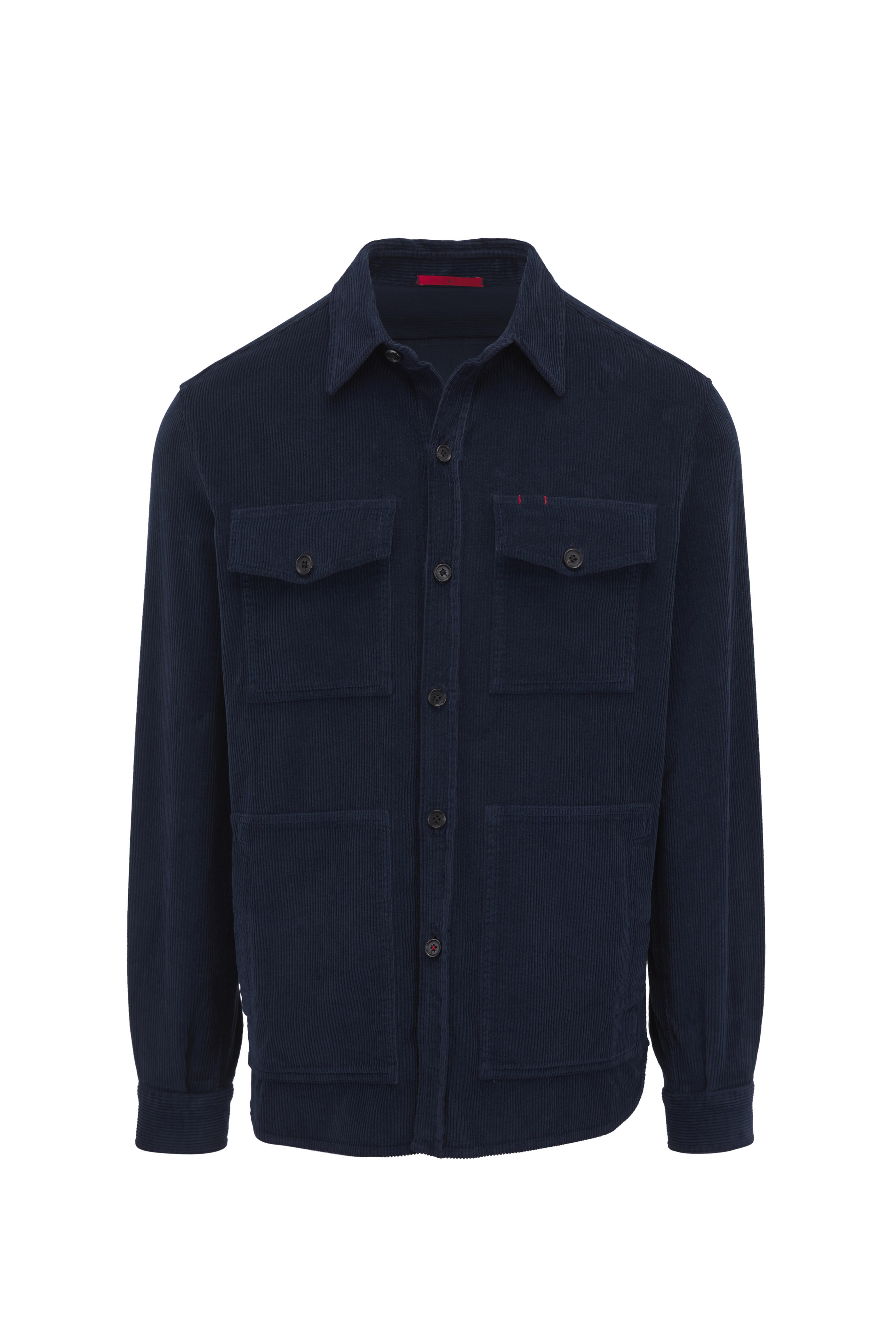 Spread collar. Front button placket. Chest flap pockets; lower waist slip pockets. Single button cuffs. Made in Italy. 99% cotton, 1% elastane. Dry clean.