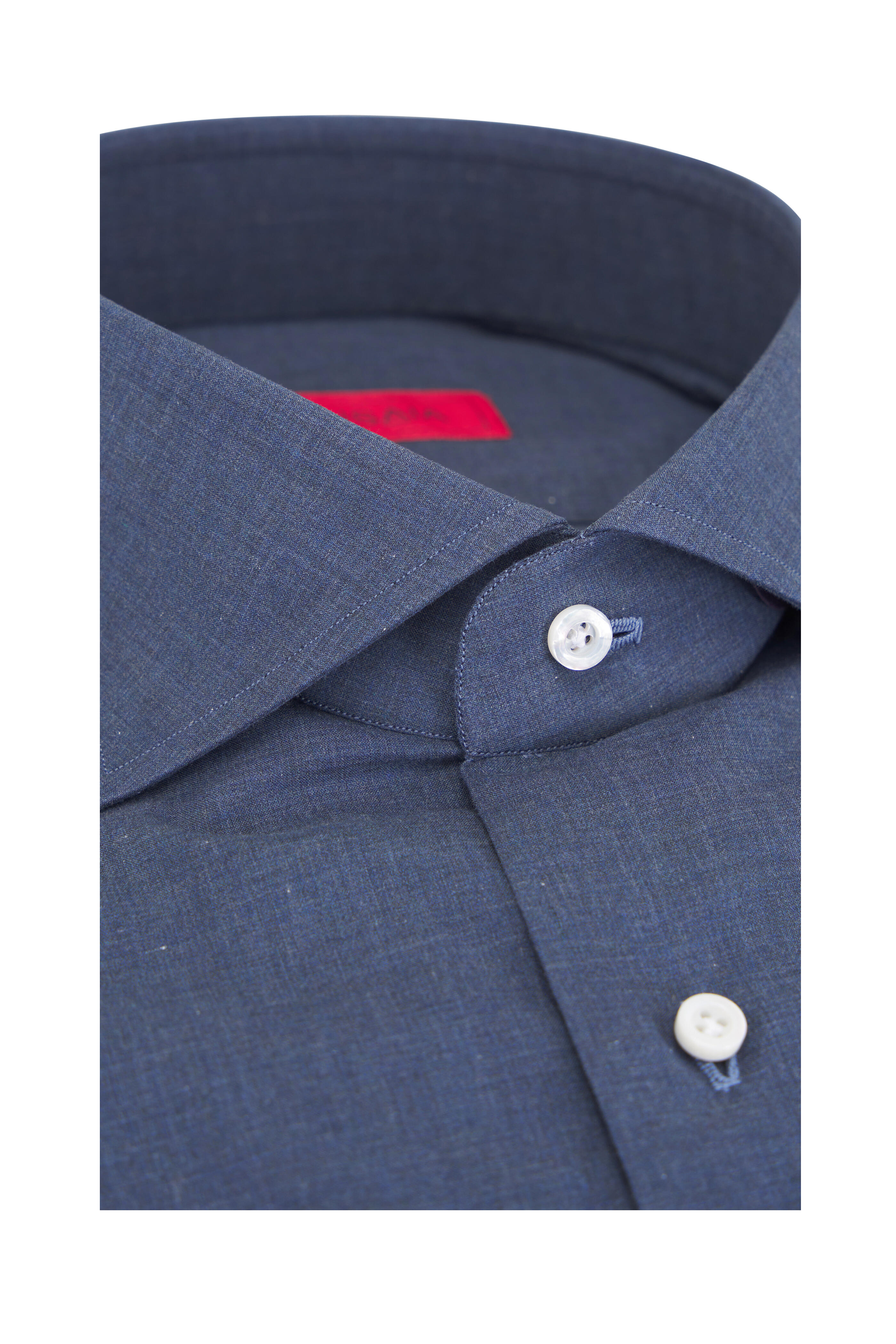 Spread collar. French placket. Singe button mitered cuffs. Made in Italy. 100% cotton. Machine wash.
