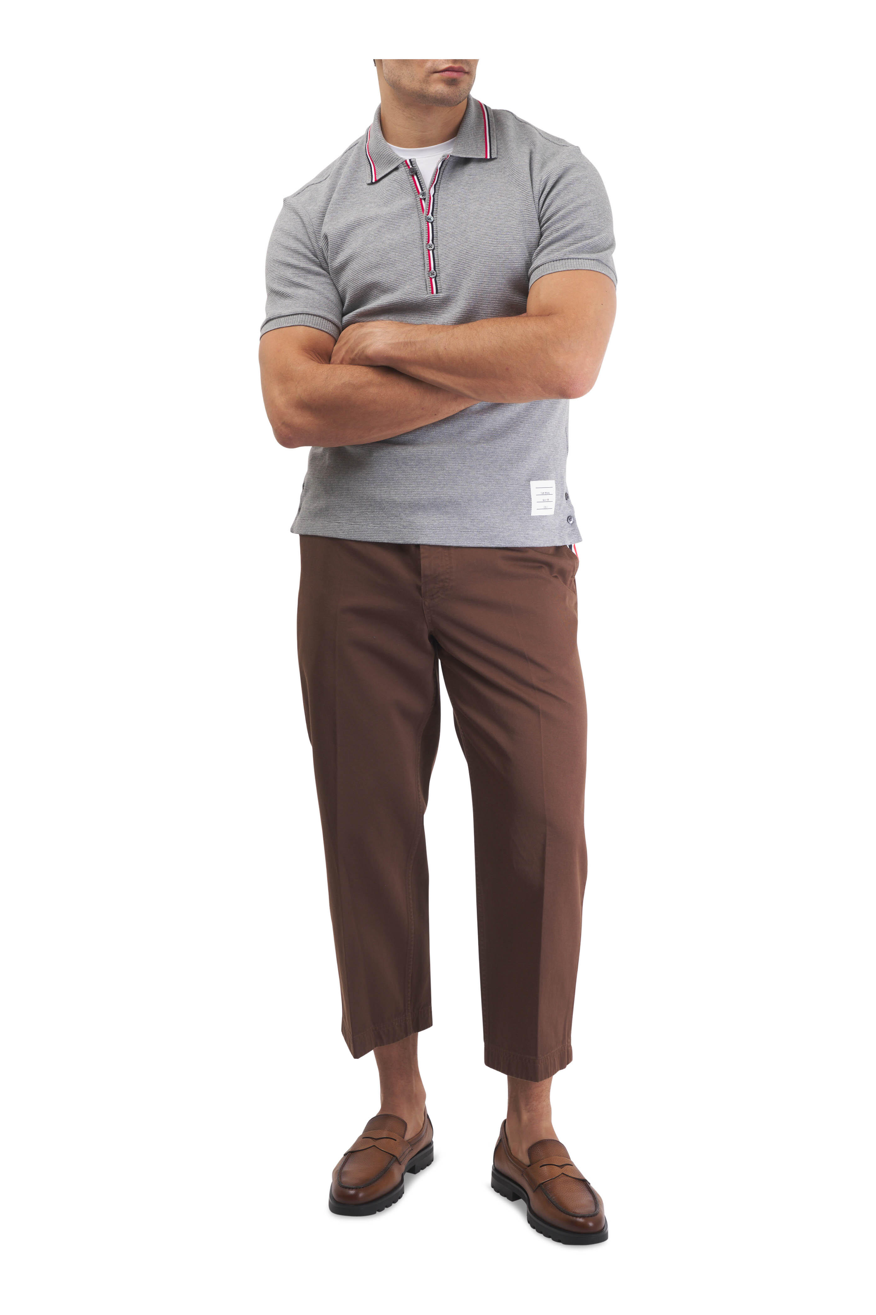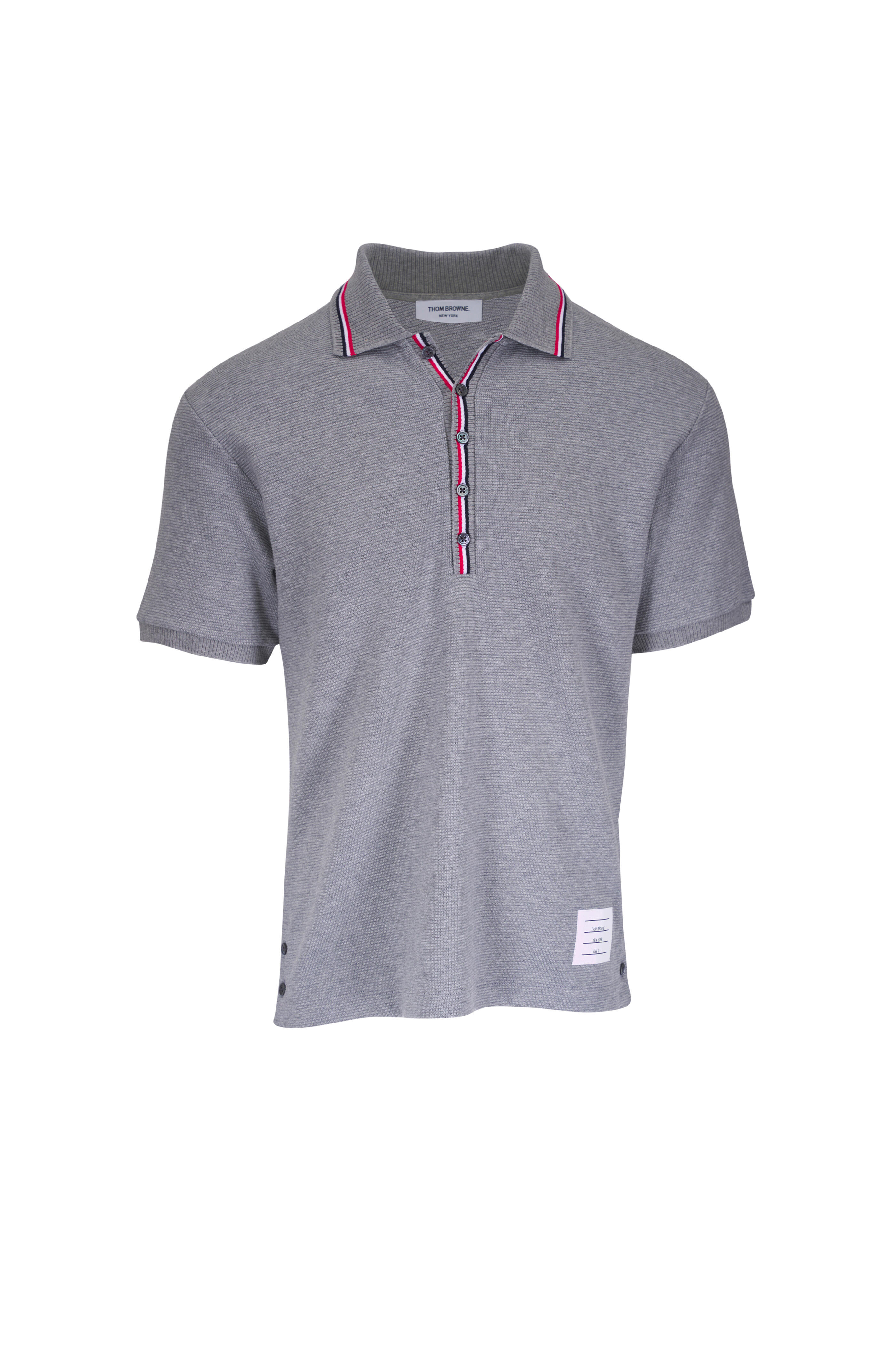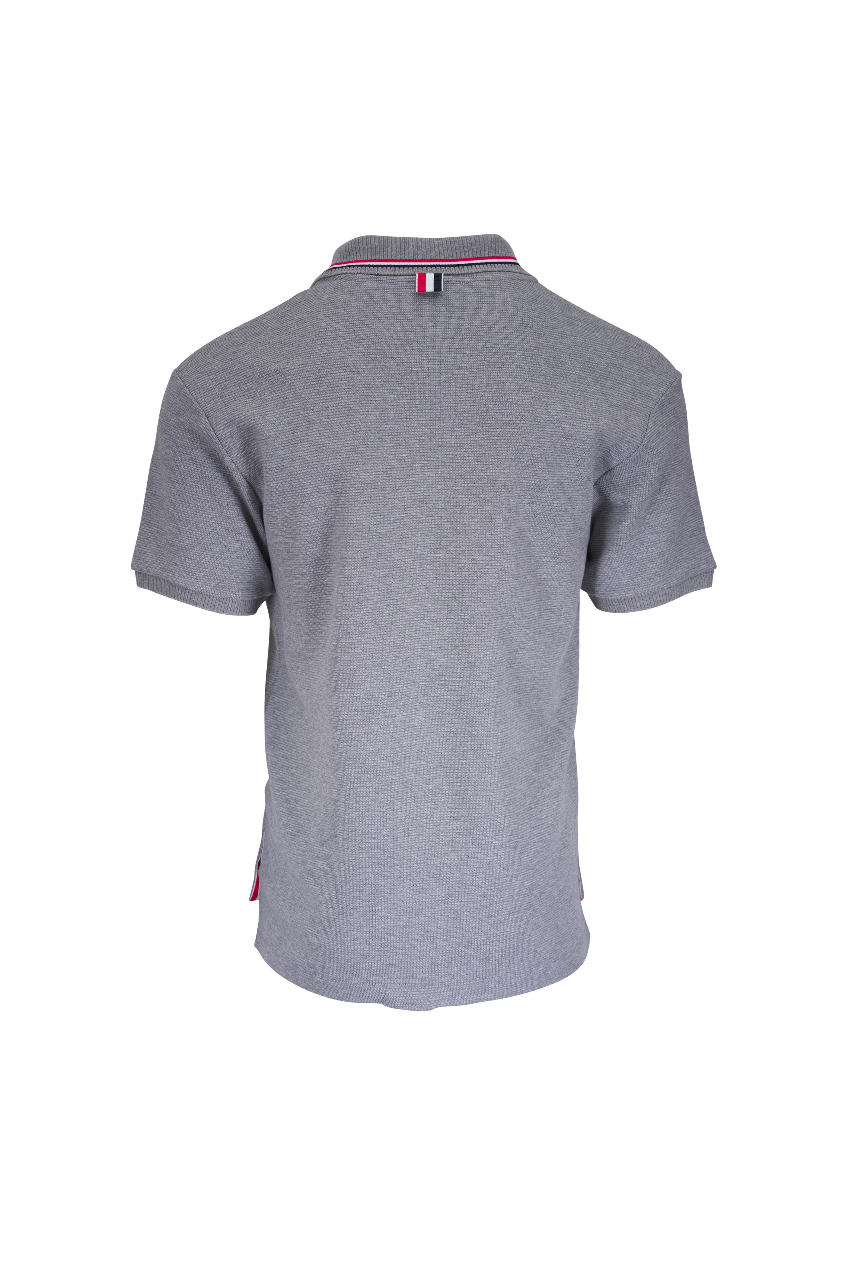 Gray RWB Stripe Waffle-Knit Cotton Polo Shirt